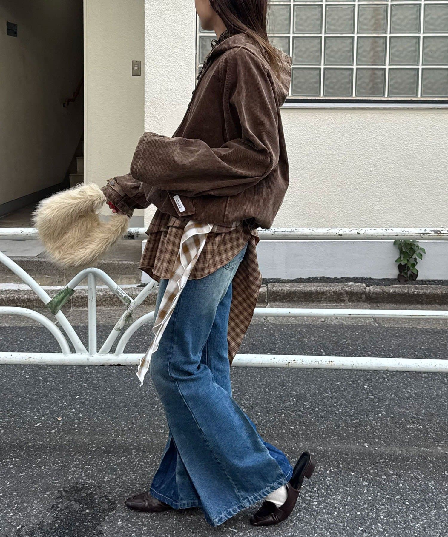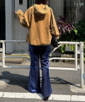 ゆるっとしたシルエットと、古着ライクな風合いが旬のムードを演出。