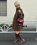 ロングブーツ×ミニスカートで合わせれば、ゆるさの中にメリハリのあるスタイルに。