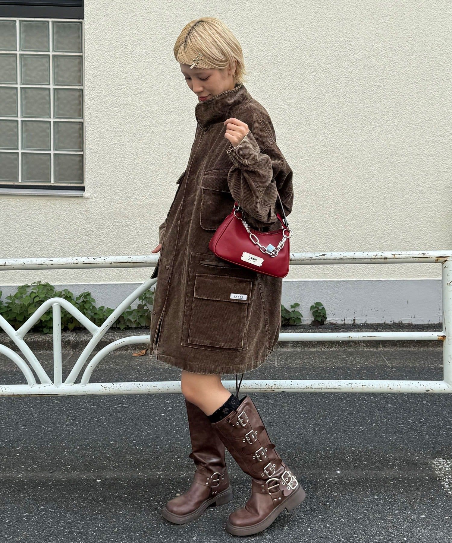 開けてきた時の前の形が本当に綺麗で、メンズライクなコーデにドンピシャすぎる。