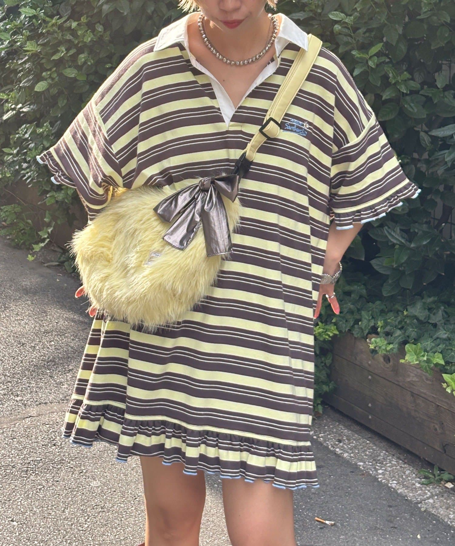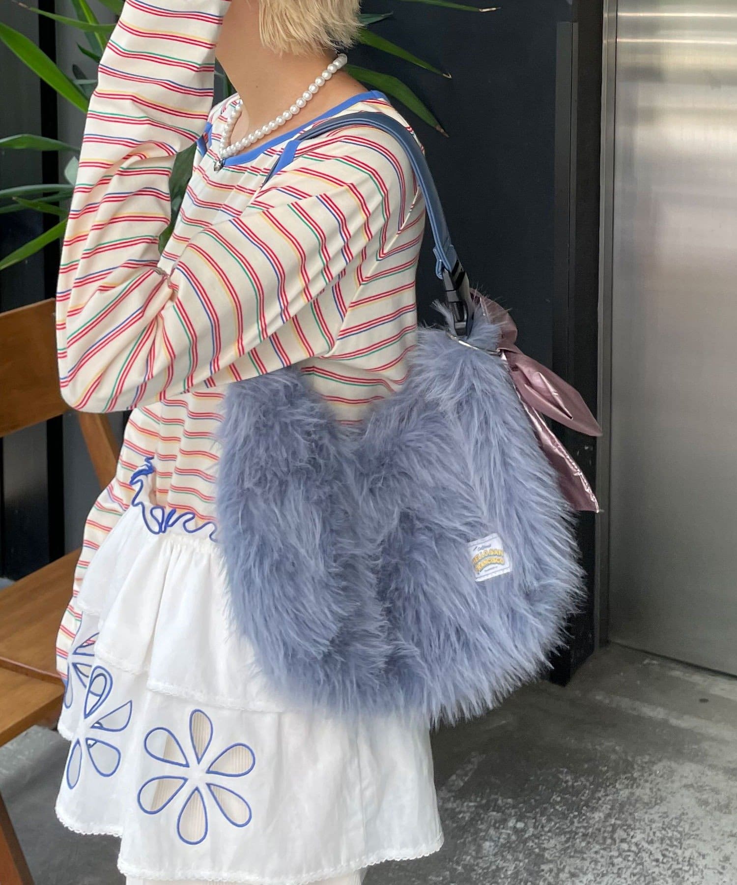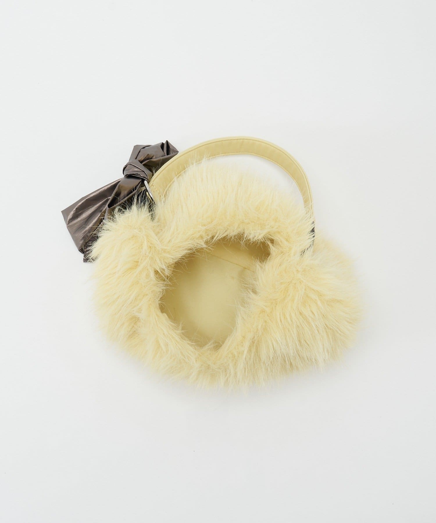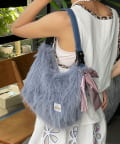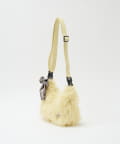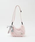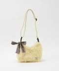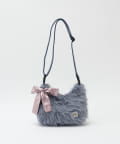 柔らかなファー素材にメタリックリボンのチャームが映えるマルチWAYバッグ。