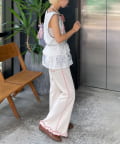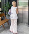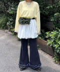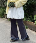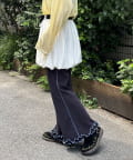 ほどよく広がるフレアシルエットが脚のラインをきれいに見せつつ、裾のメロウフリルがアクセントに。
