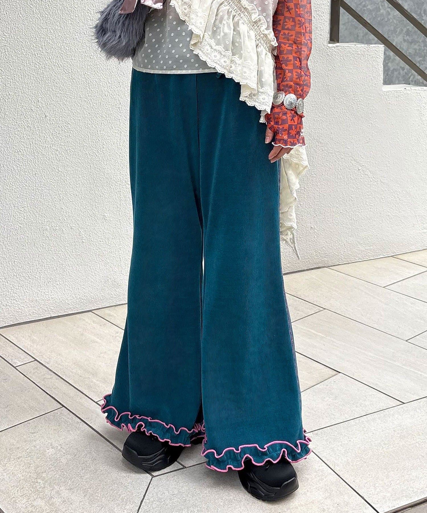 【HELLO.SANFRANCISCO/ハローサンフランシスコ】コーデュロイ裾フリルフレアパンツ