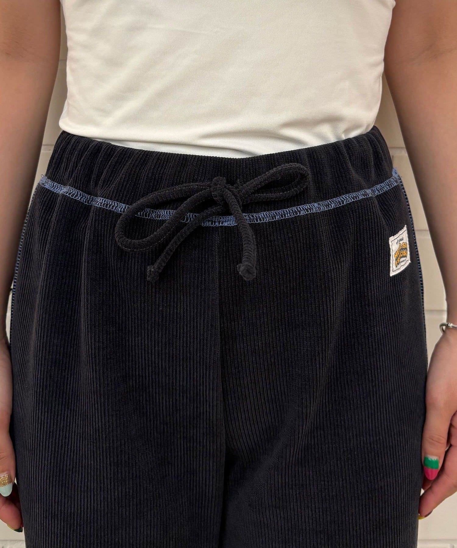 秋冬ムードたっぷりのコーデュロイ素材で仕上げたフレアシルエットのイージーパンツ。