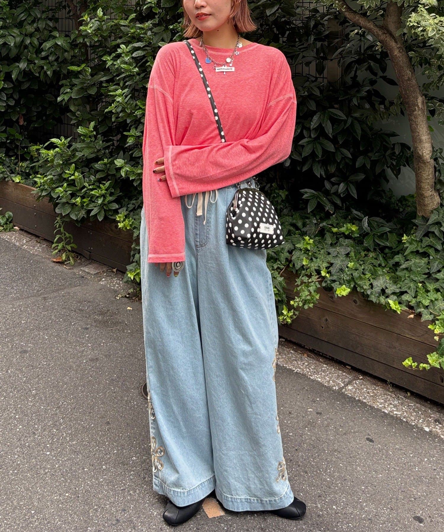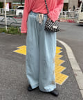ゆるっと穿けるウエストゴム&ひも仕様で、リラックス感とトレンド感を両立。
