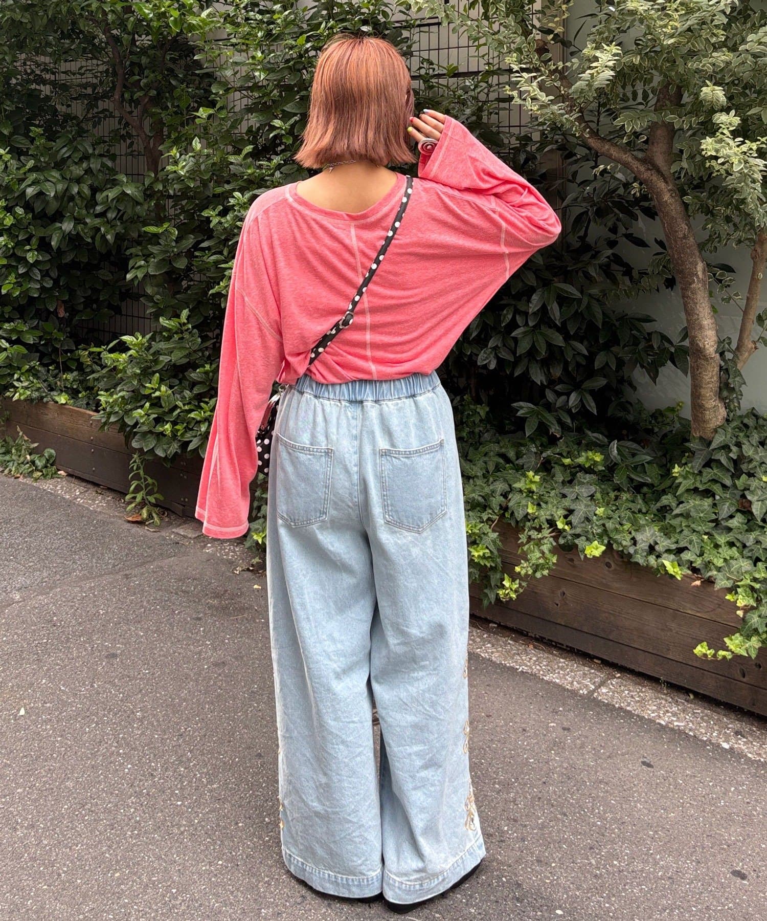 【HELLO.SANFRANCISCO/ハローサンフランシスコ】レースフラワーカットワイドデニム