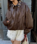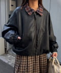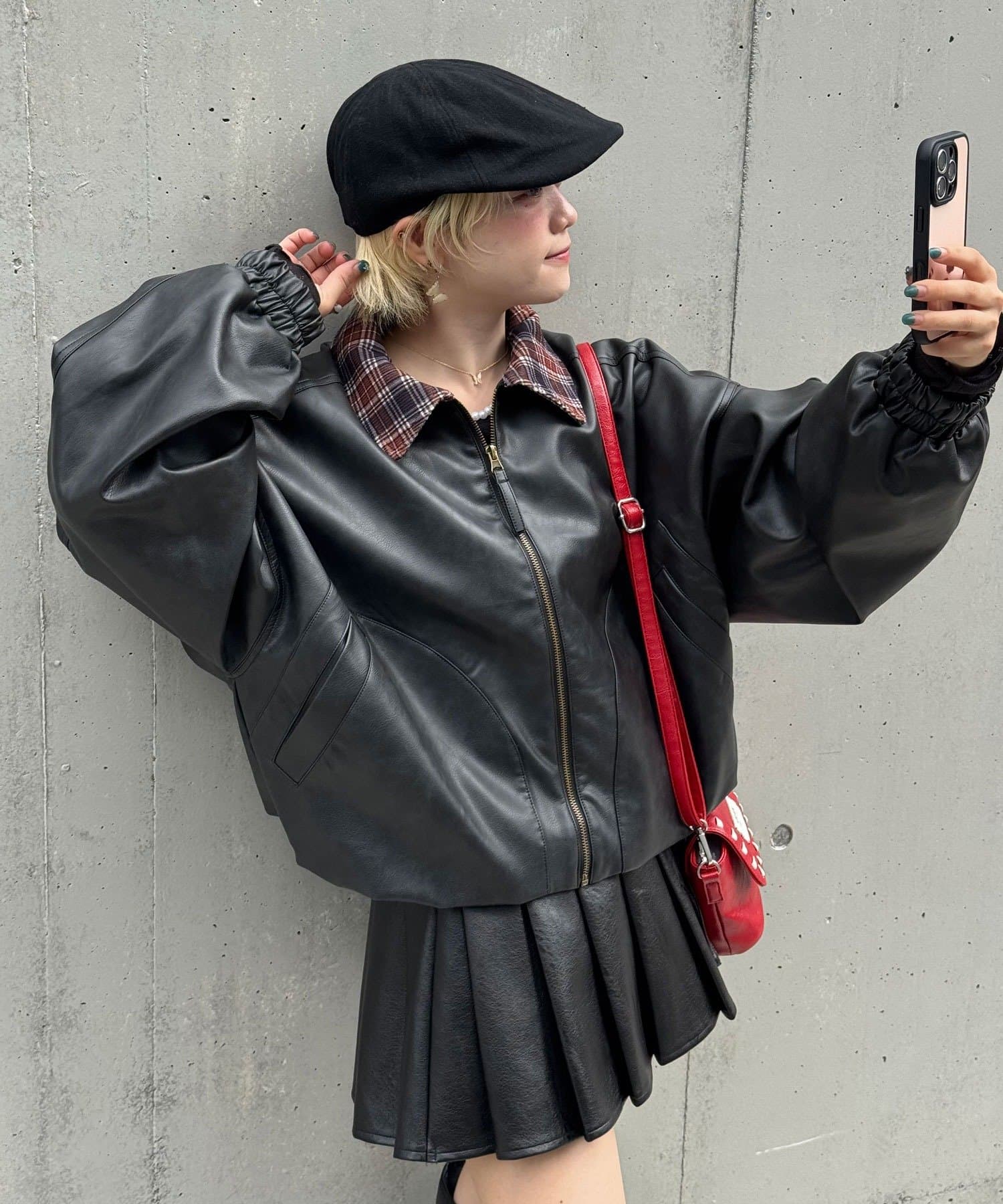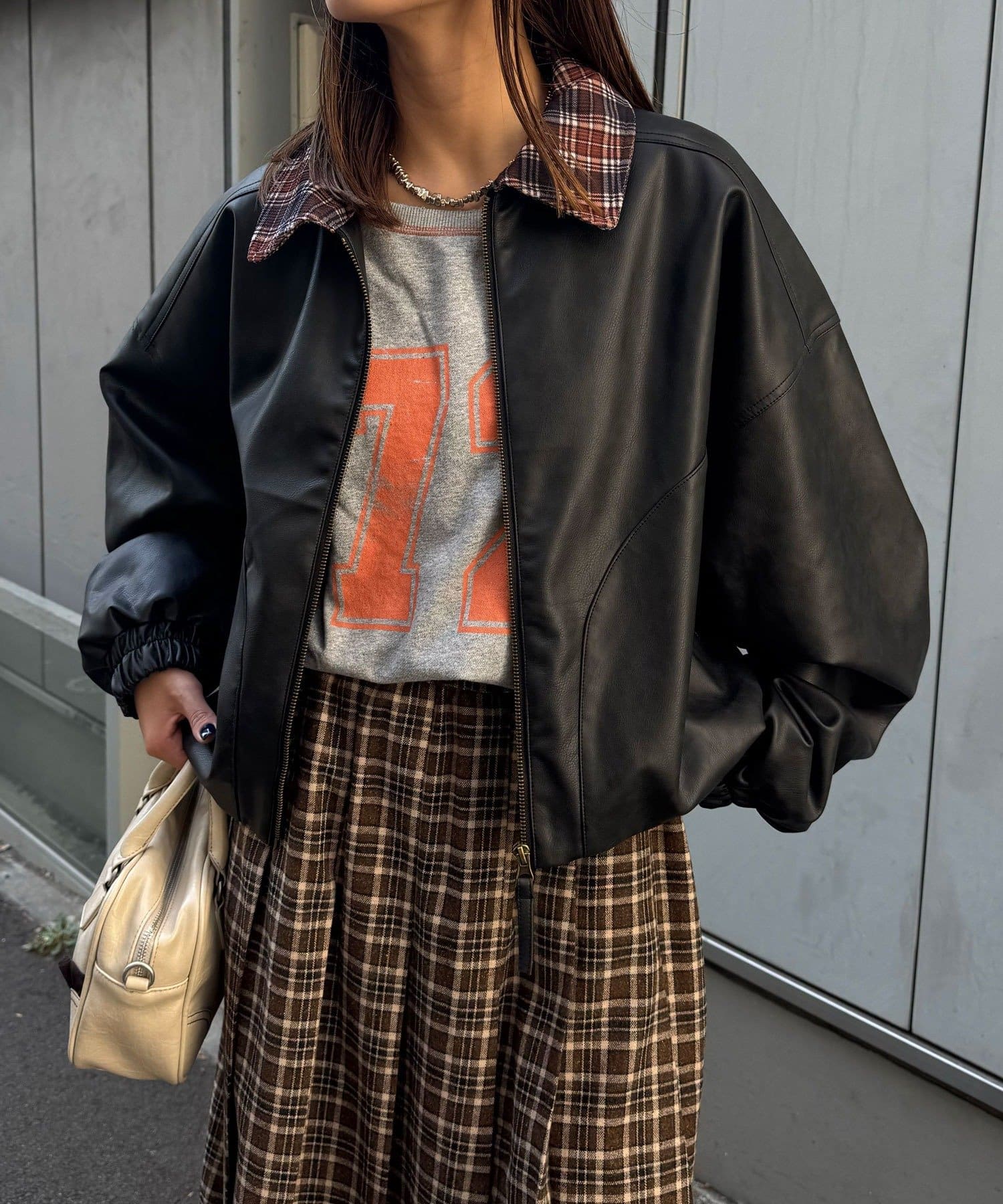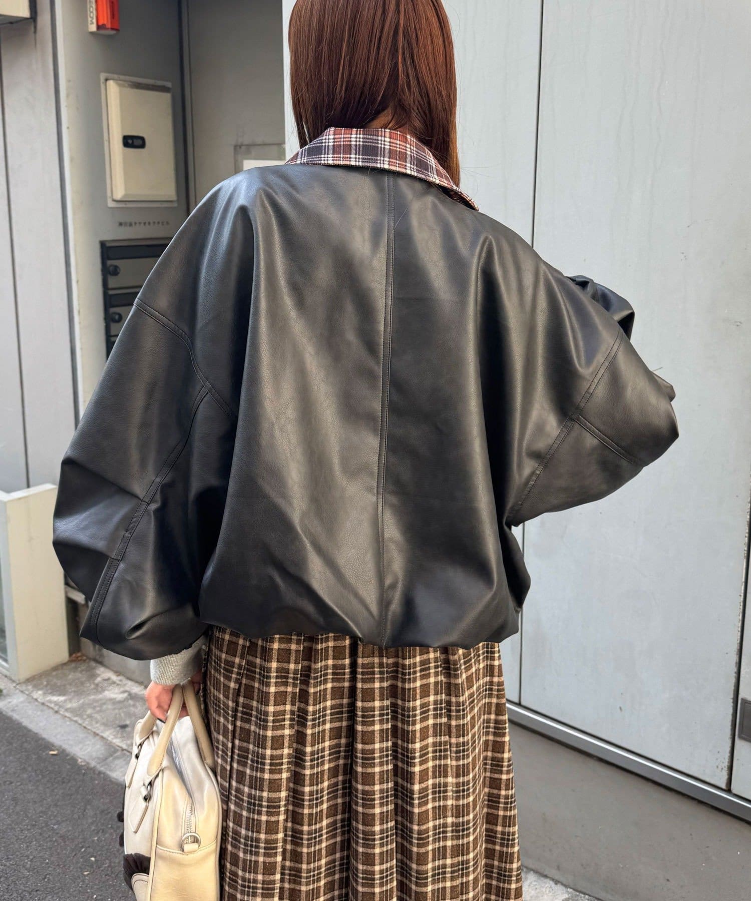 TOP > CIAOPANIC > レディース > ジャケット/アウター > その他ジャケット/ブルゾン > チェック襟フェイクレザーバルーンショートブルゾン