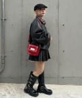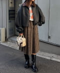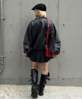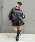 ミニスカートと合わせれば、バルーン裾が可愛く映える甘辛コーデに。