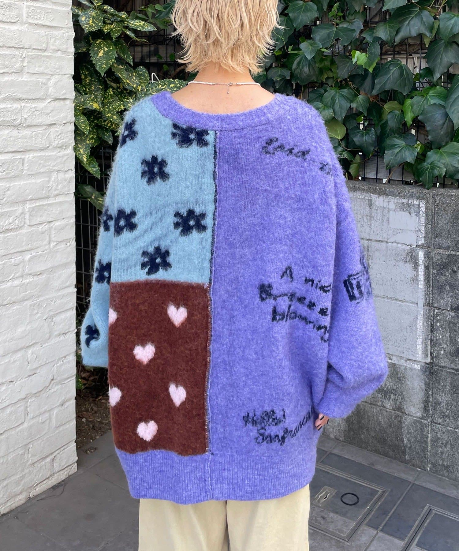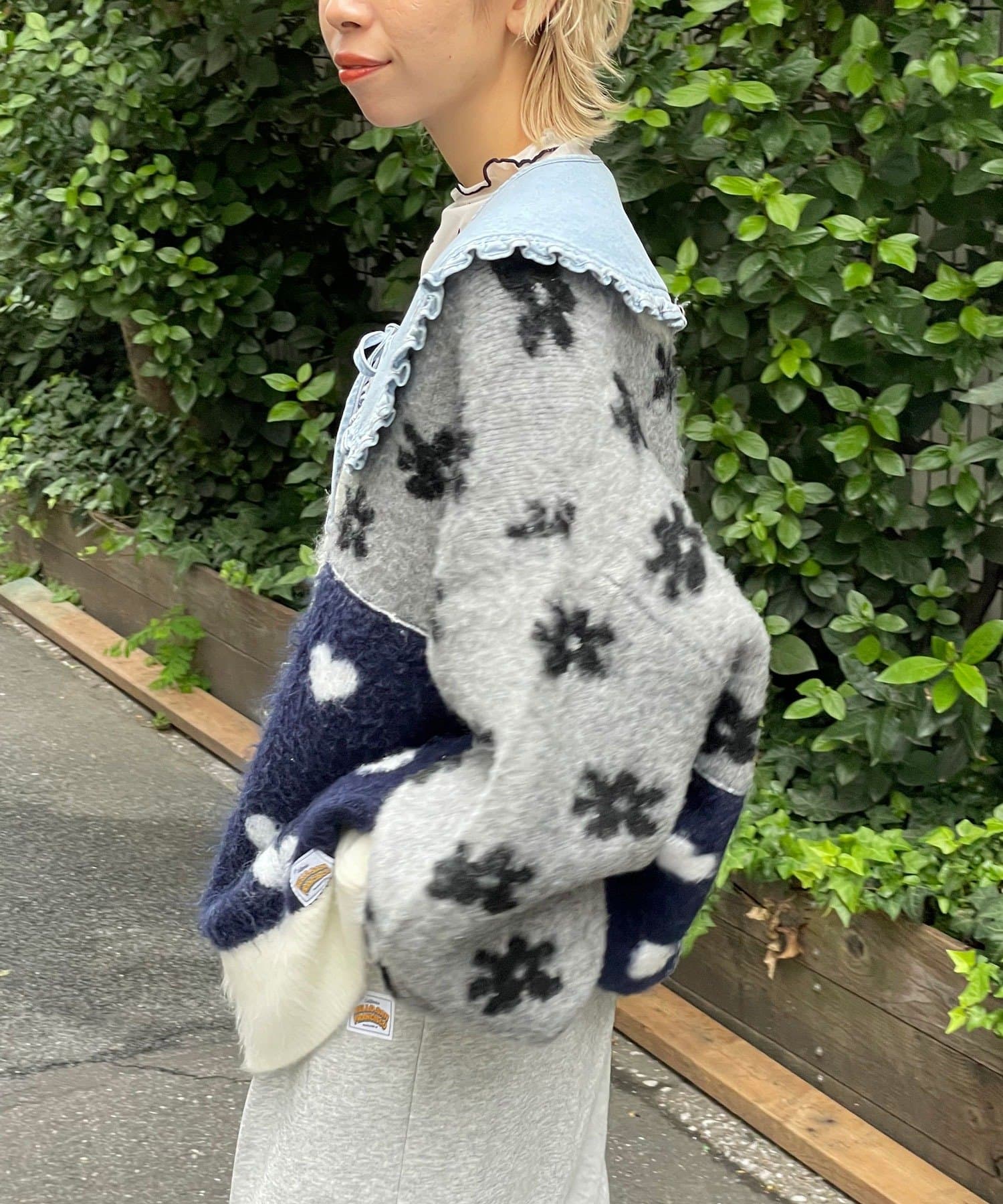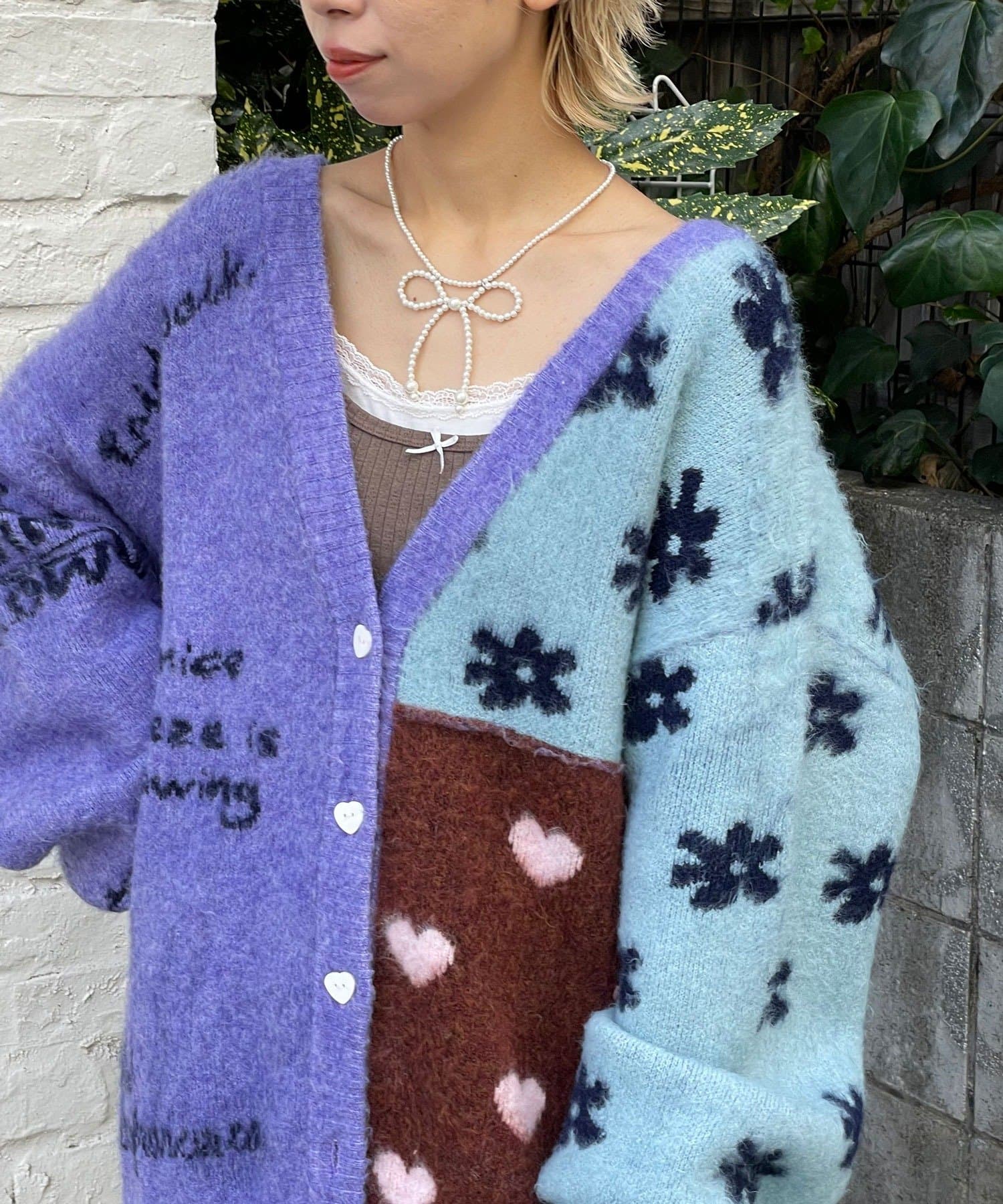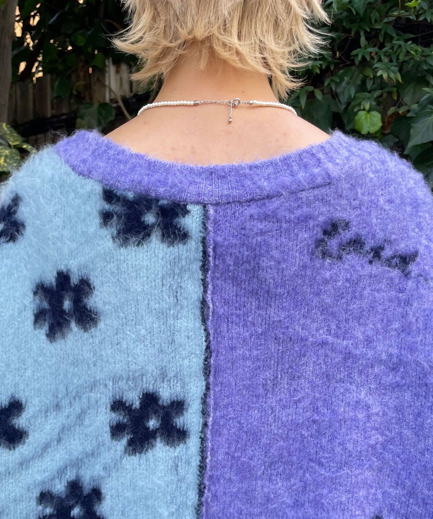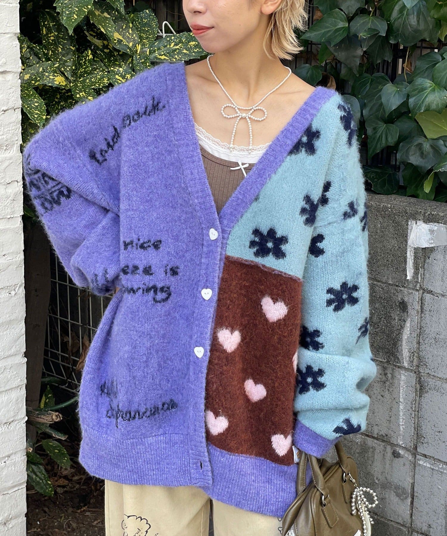 カラーブロッキング×ジャガード柄が目を惹くドッキングカーディガン。