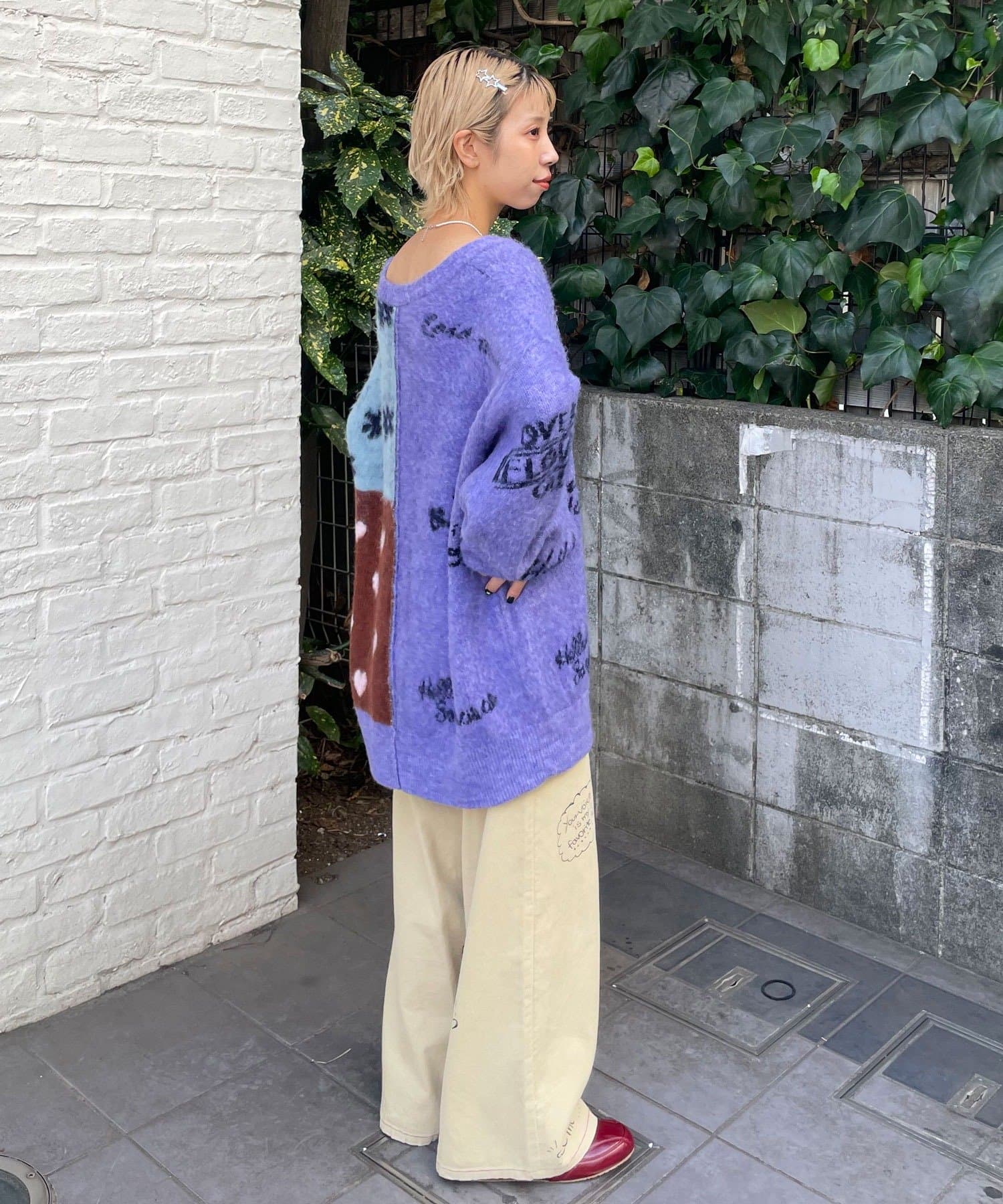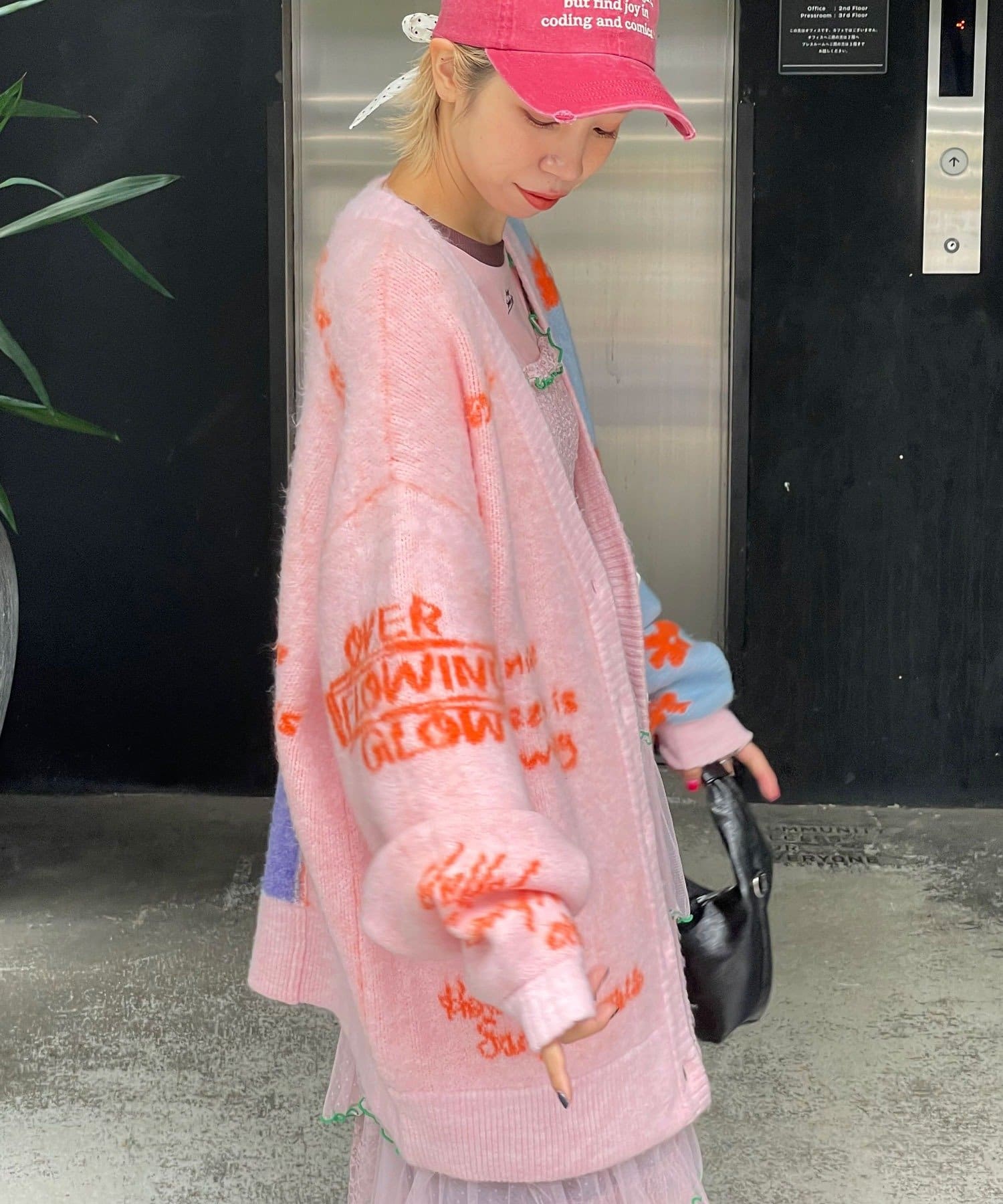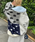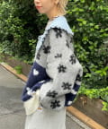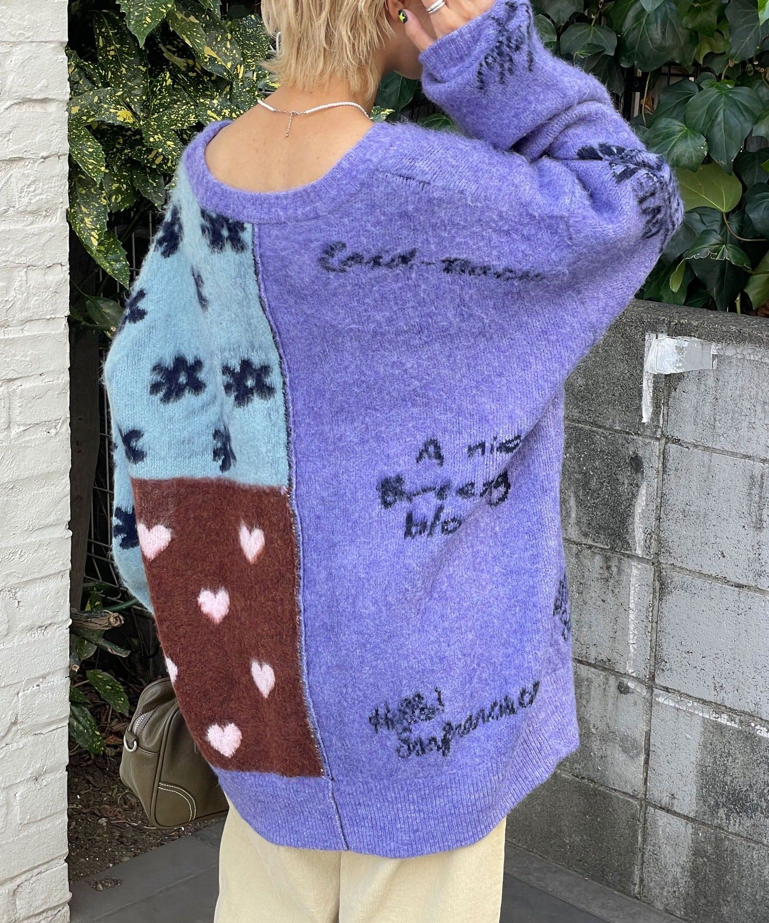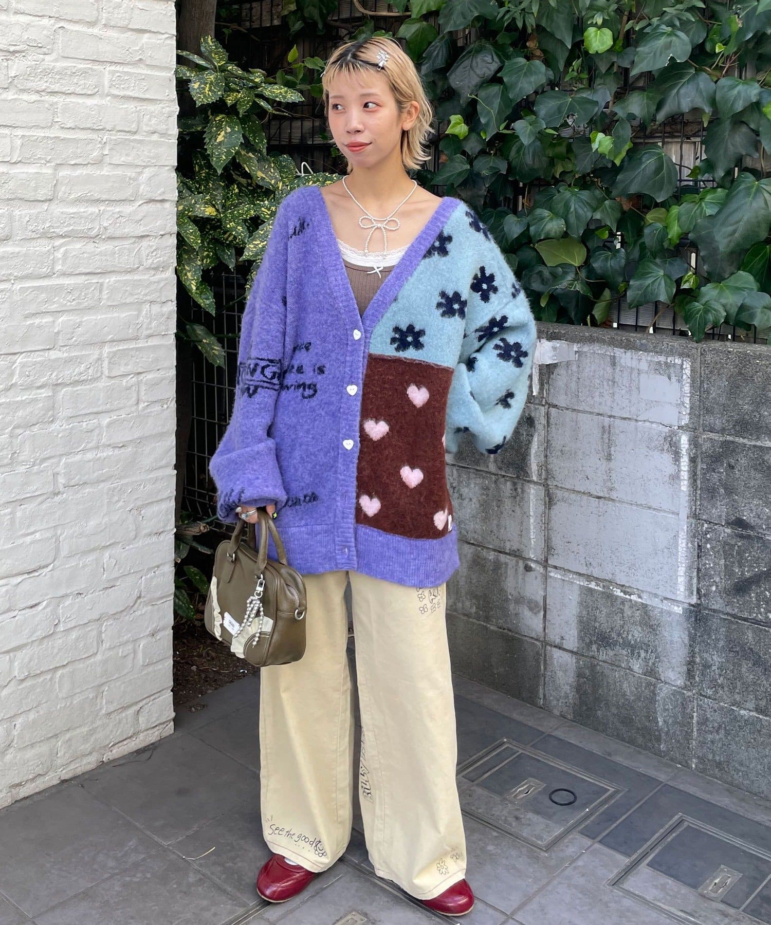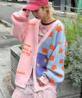カラーブロッキング×ジャガード柄が目を惹くドッキングカーディガン。