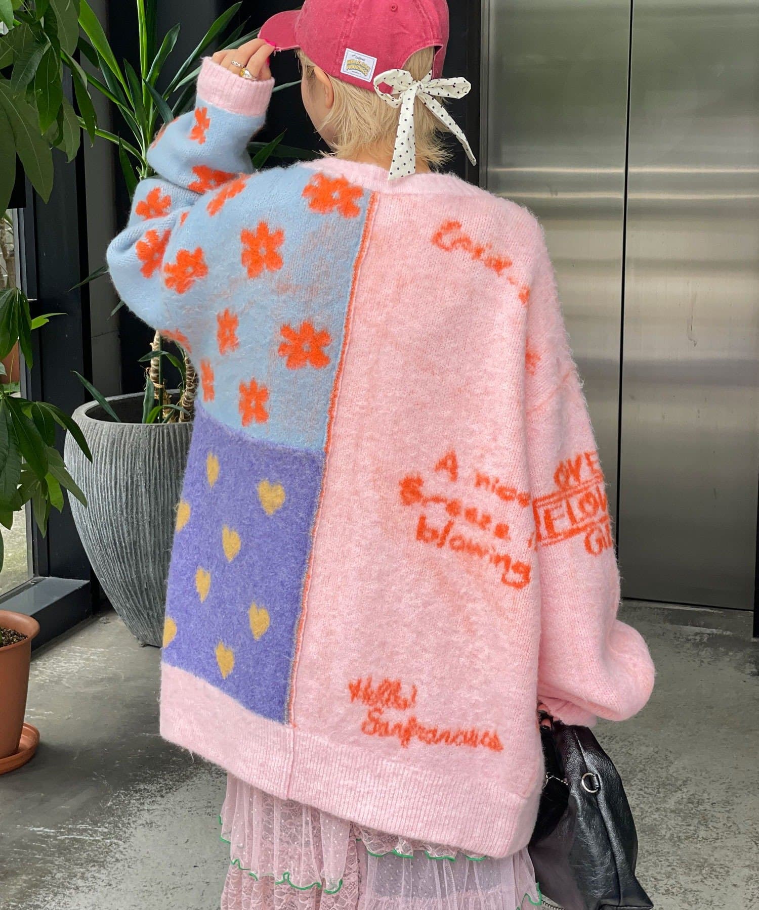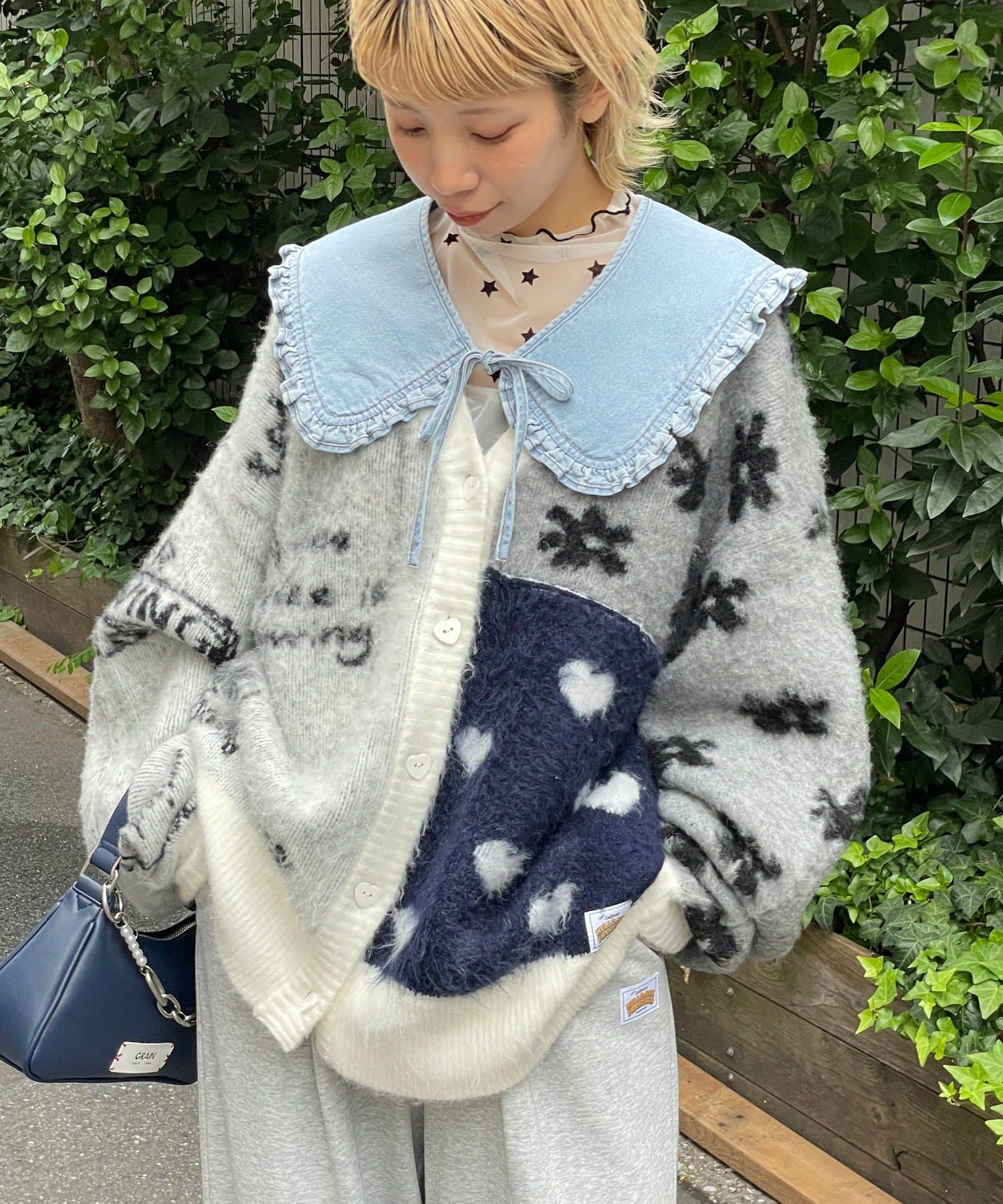 ★【HELLO.SANFRANCISCO/ハローサンフランシスコ】ジャガードドッキングハート釦カーデ