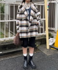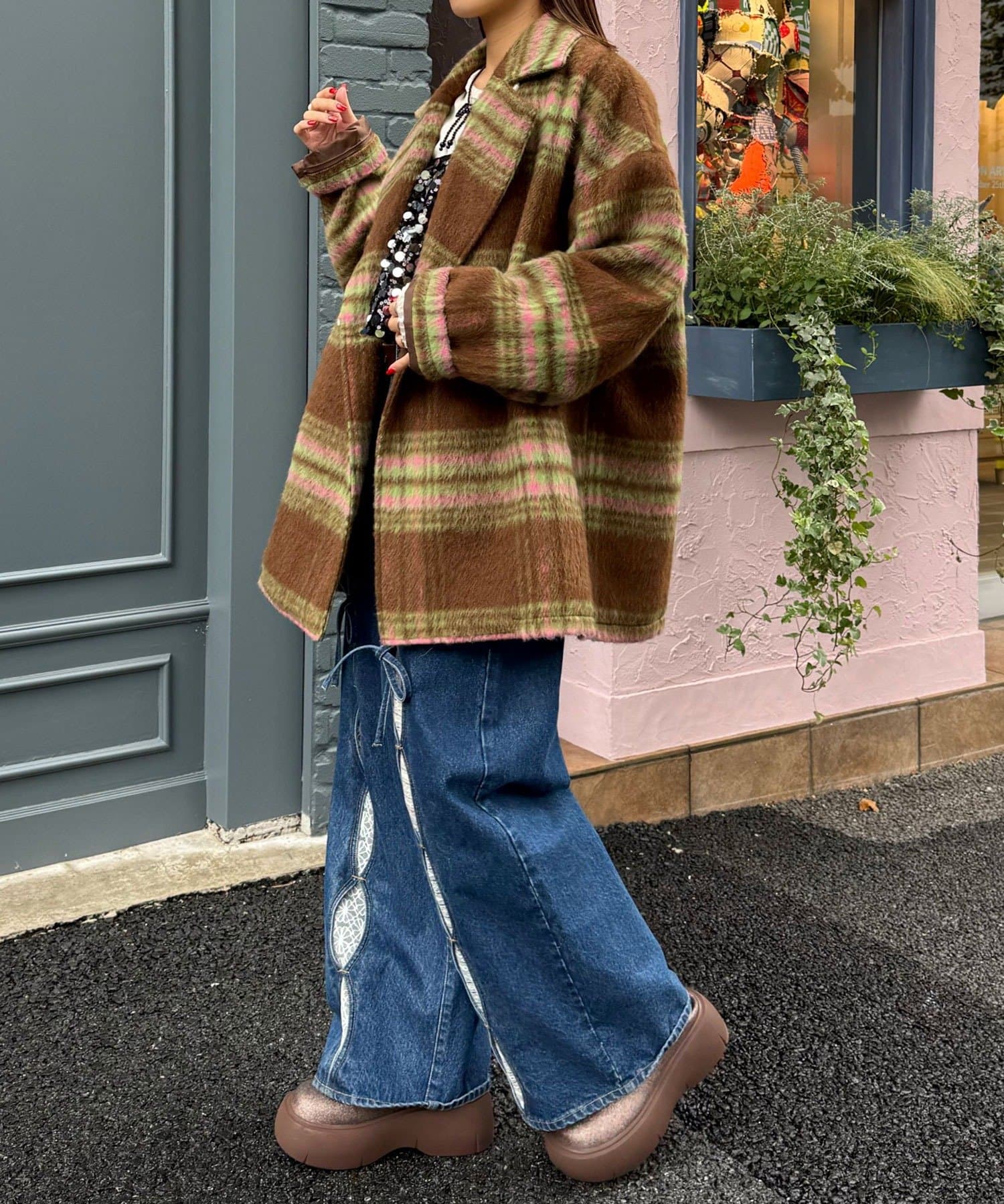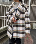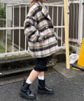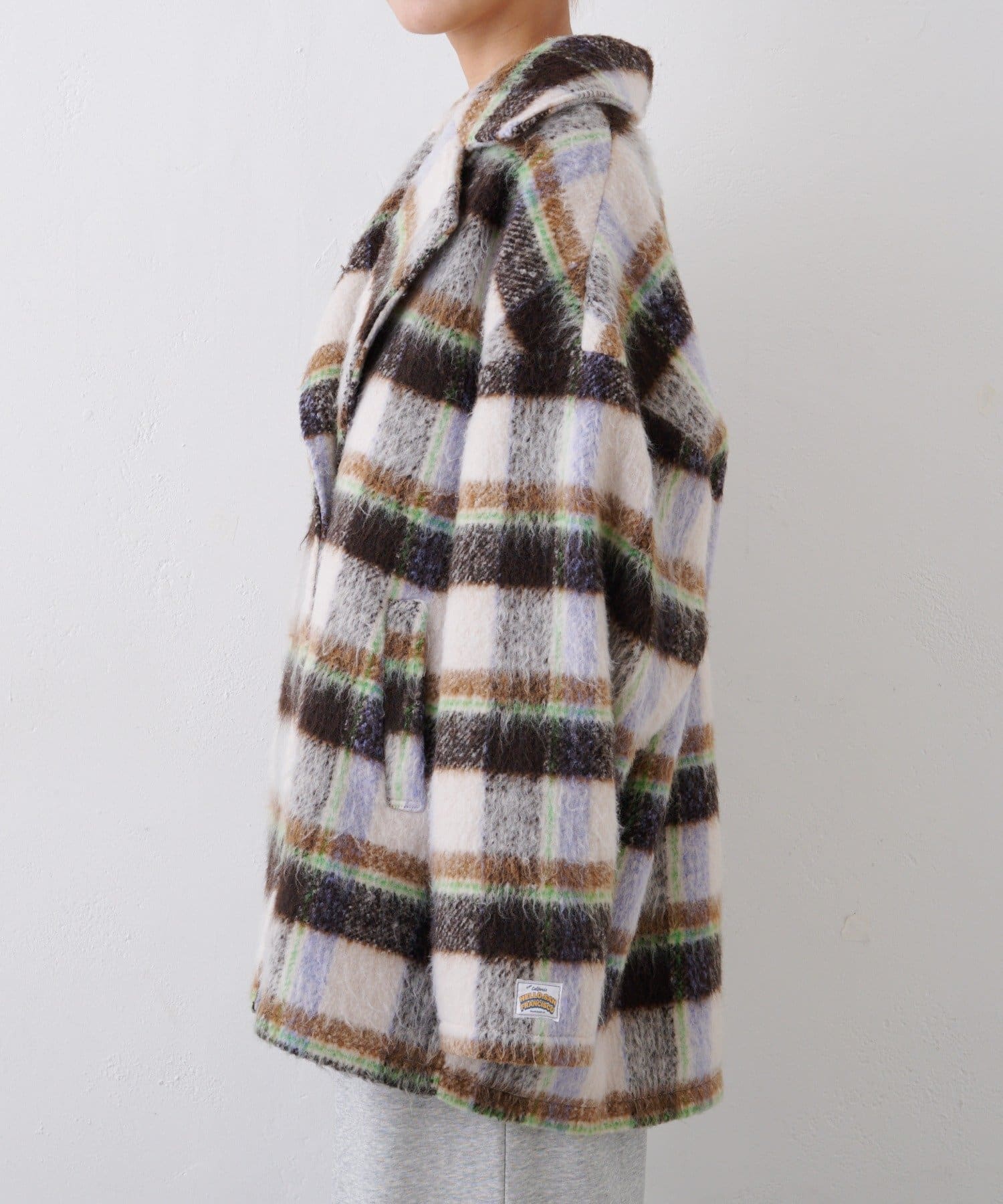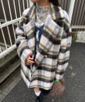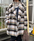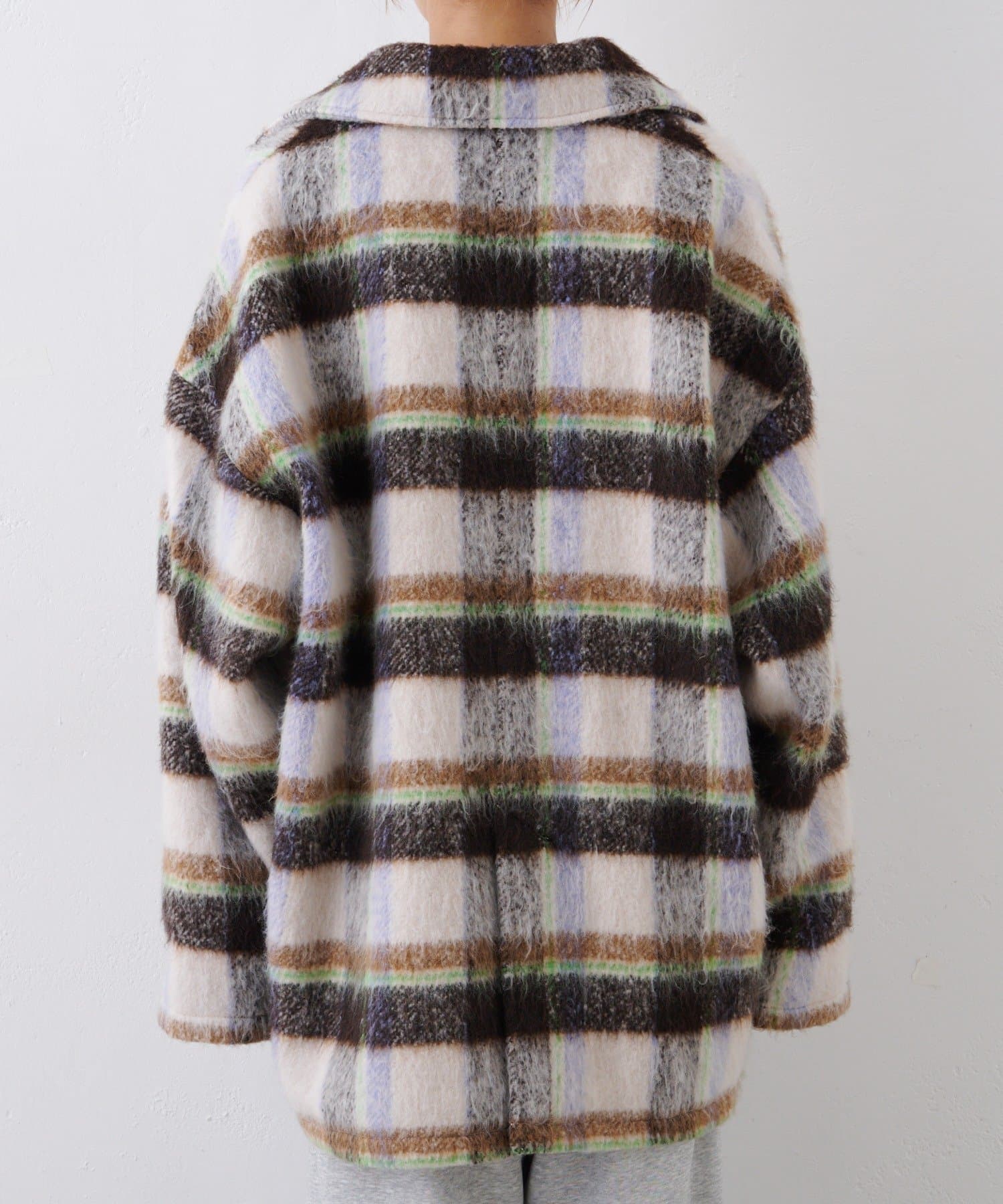 マーガレットボタンとチェック柄がポイントのシャギーオーバーコート。