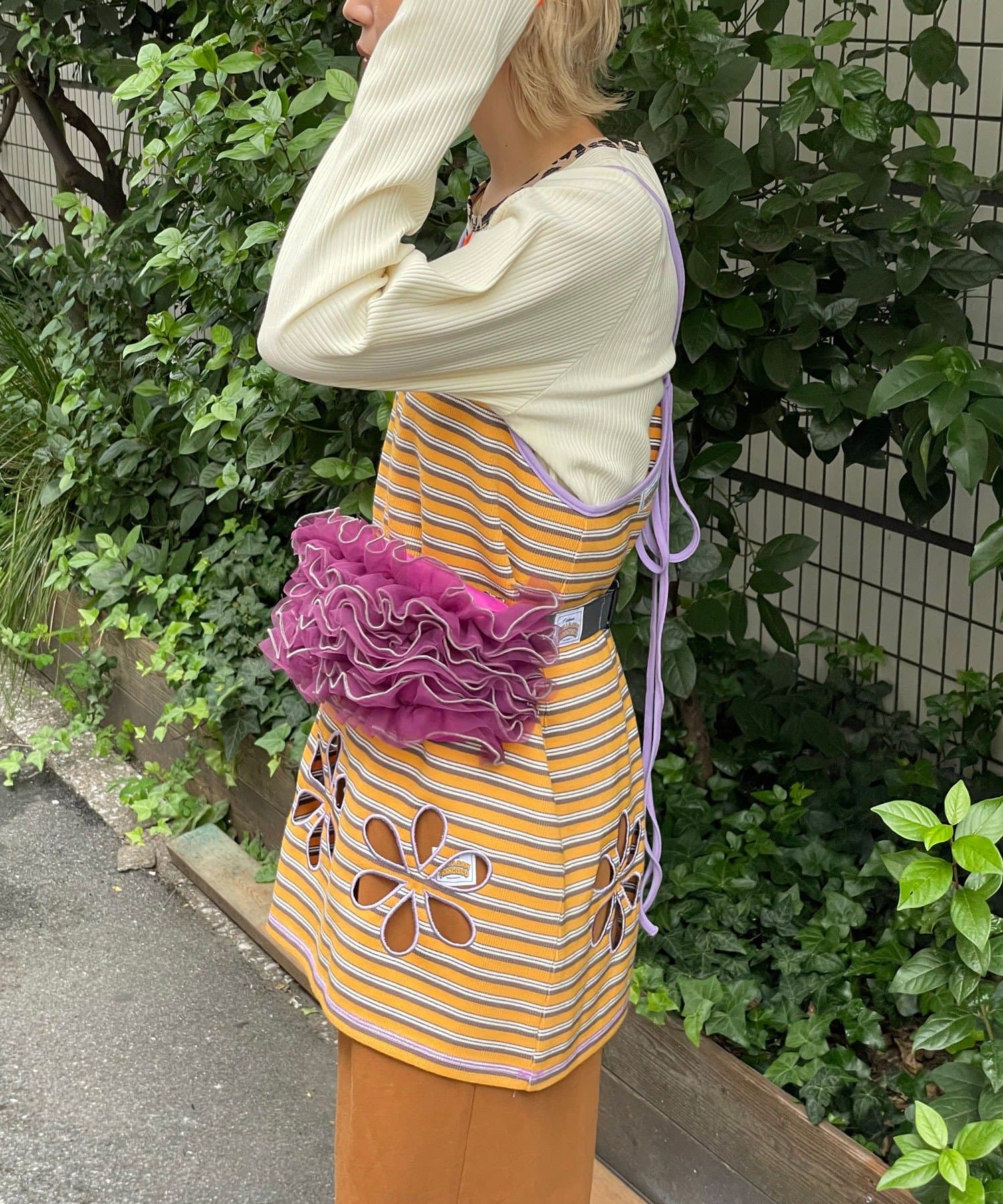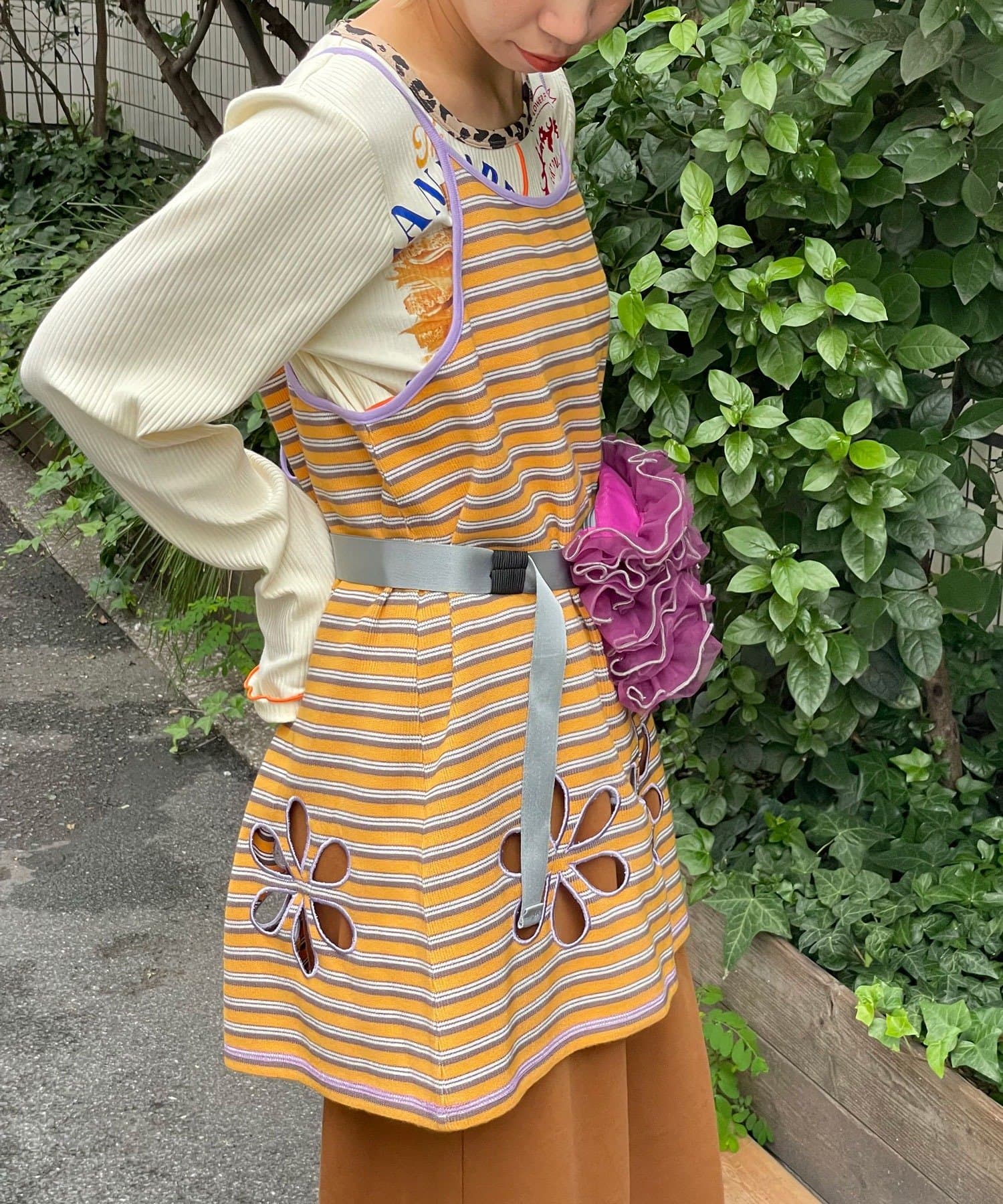ショート丈トップスの下に重ねて裾だけ見せるのも◎