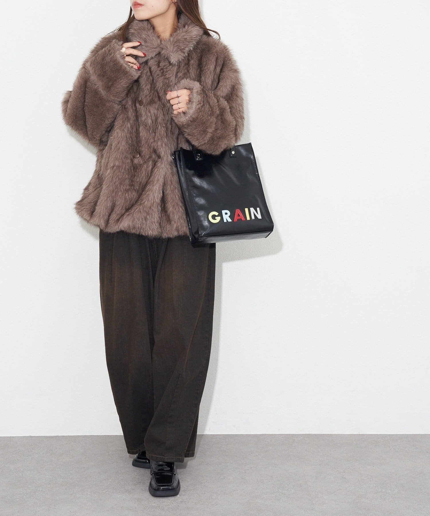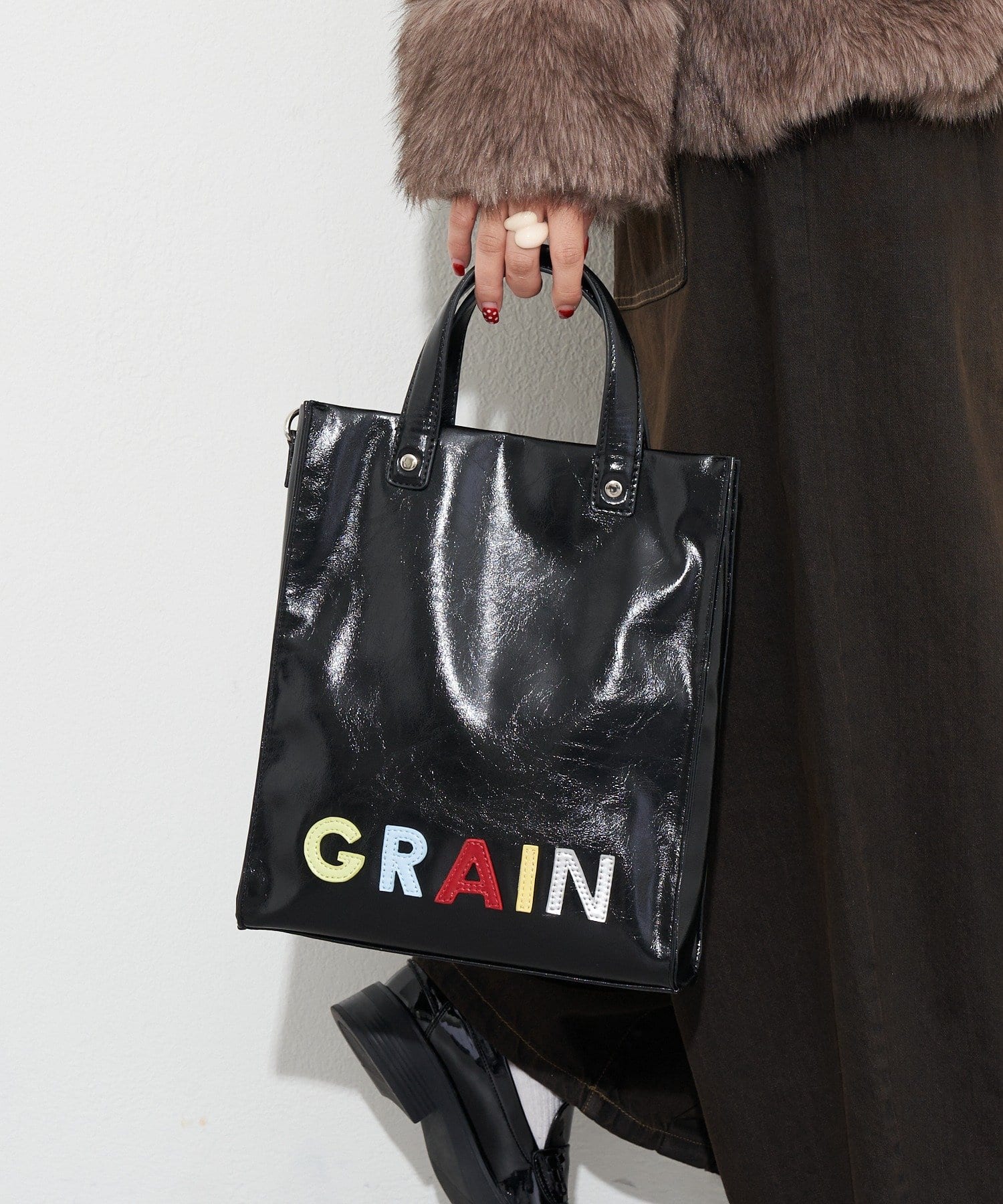 WEB限定【GRAIN/グレイン】ワッペンロゴフェイクレザートートバッグ