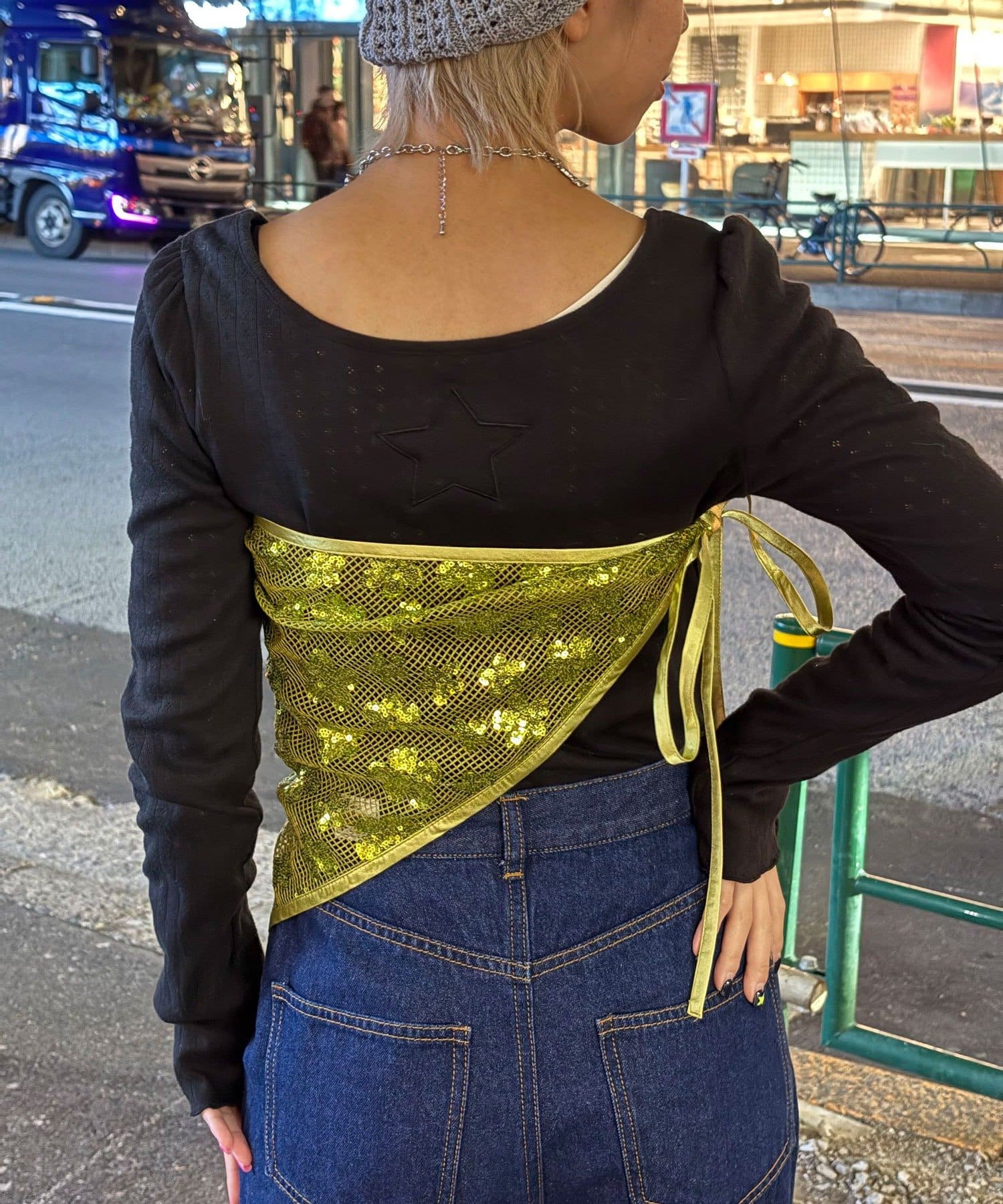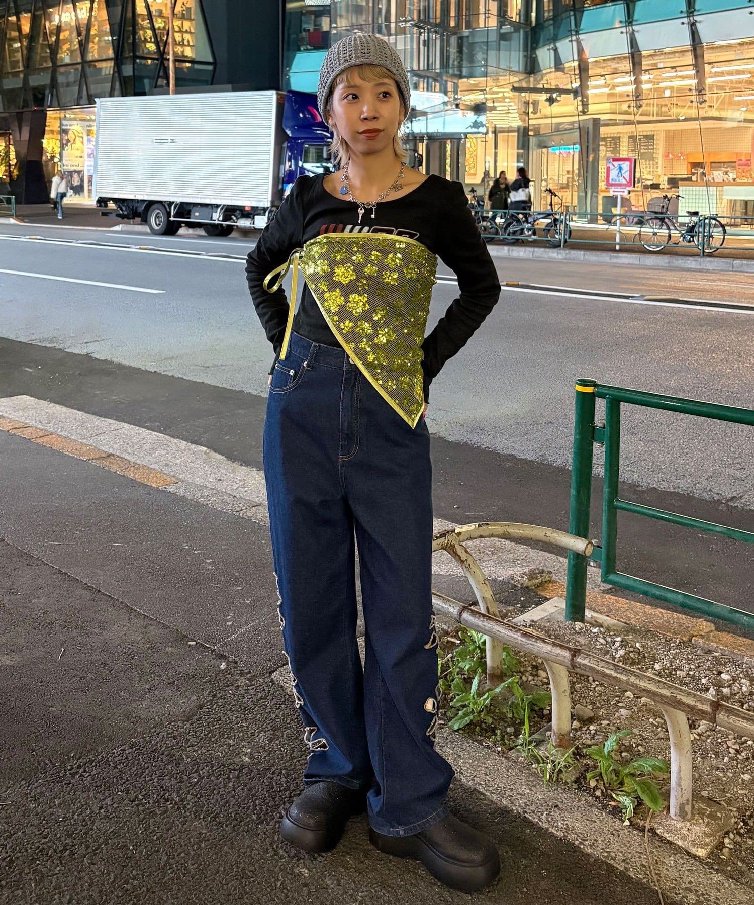 コーデにひとつプラスするだけで、Y2Kムード漂う華やかな印象に仕上がります。