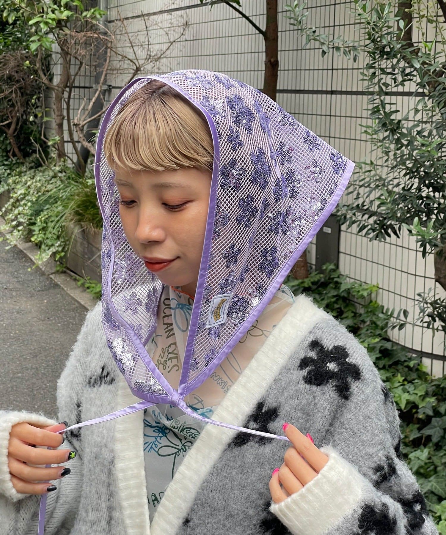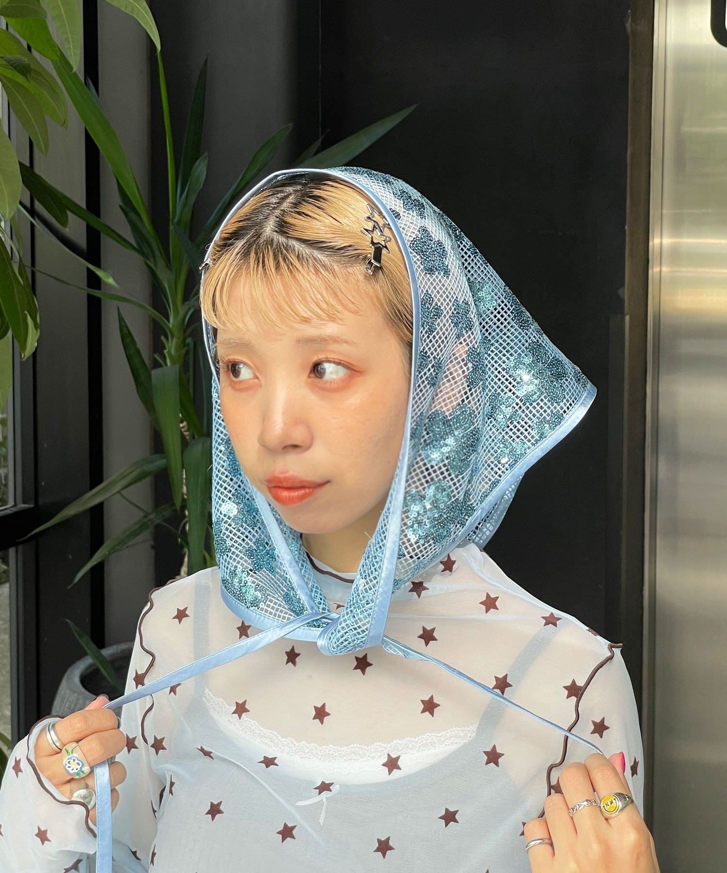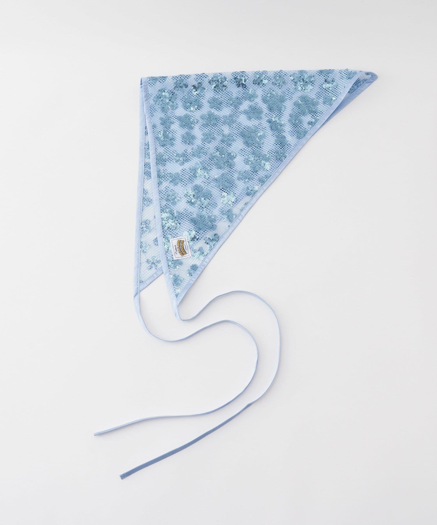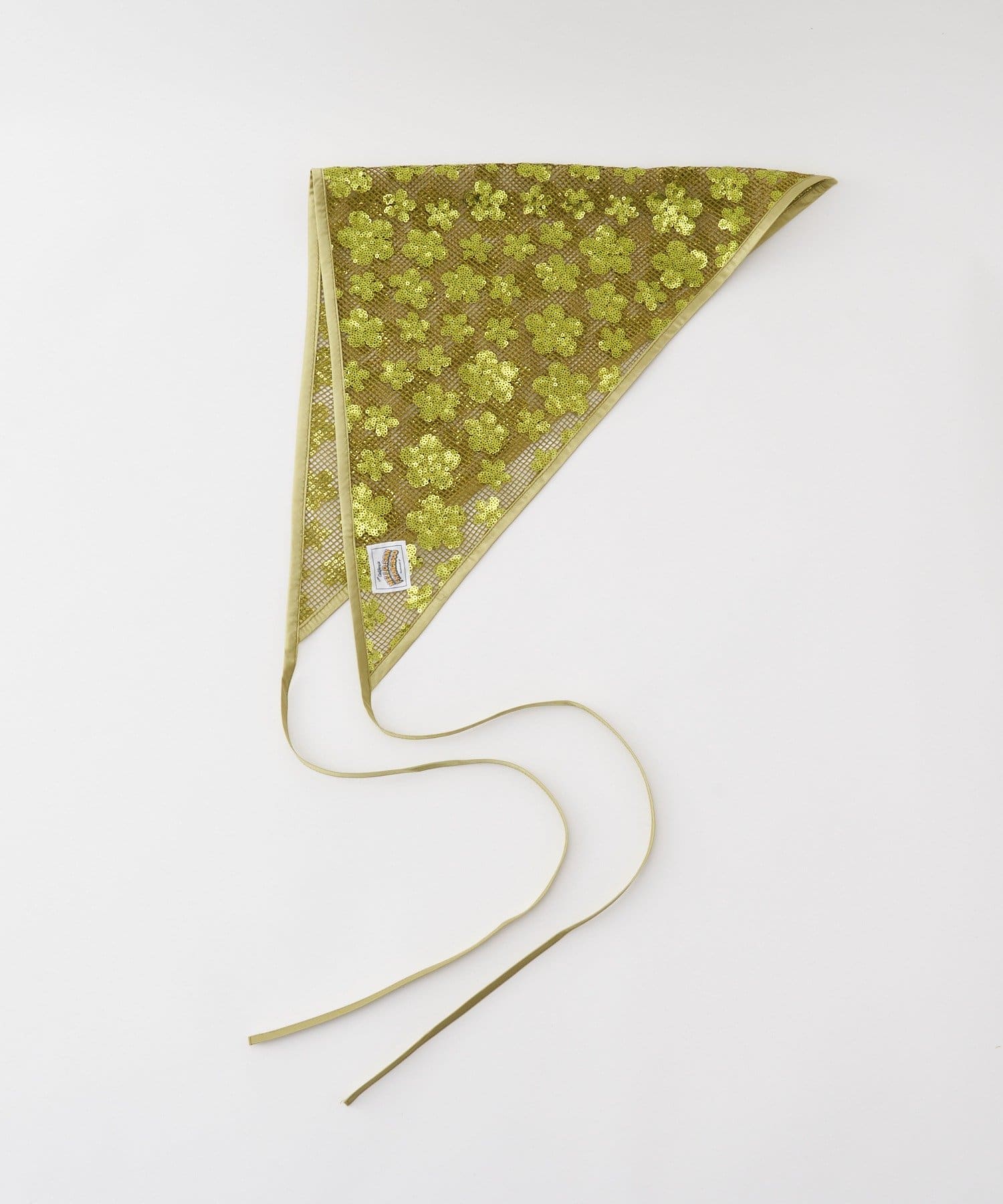 キラキラのスパンコールが目を惹く三角スカーフ。