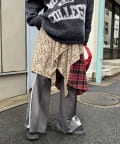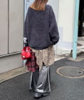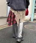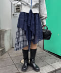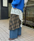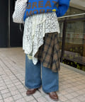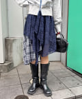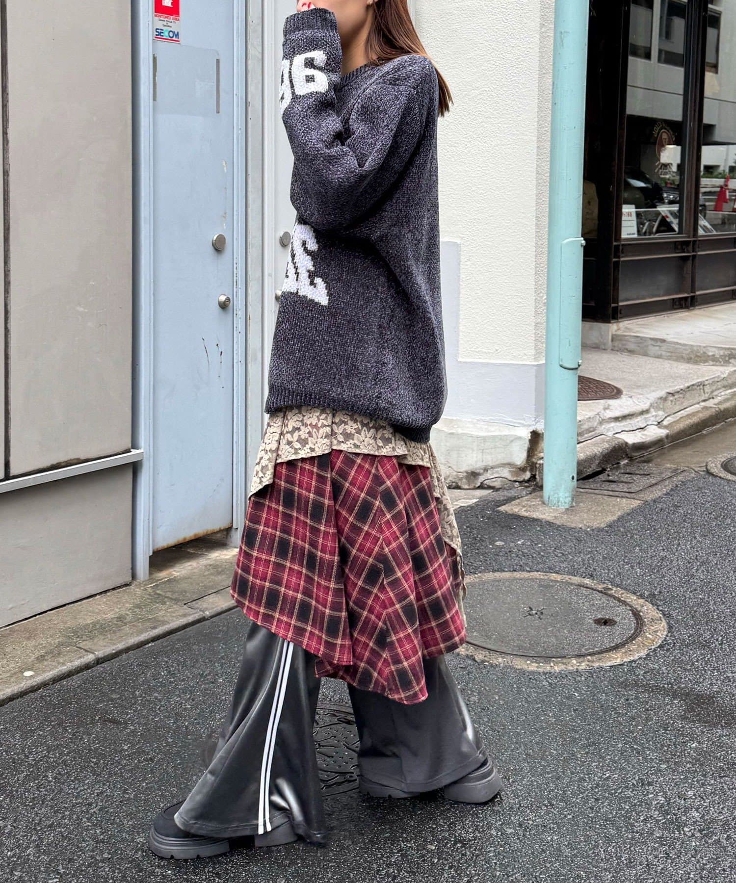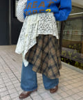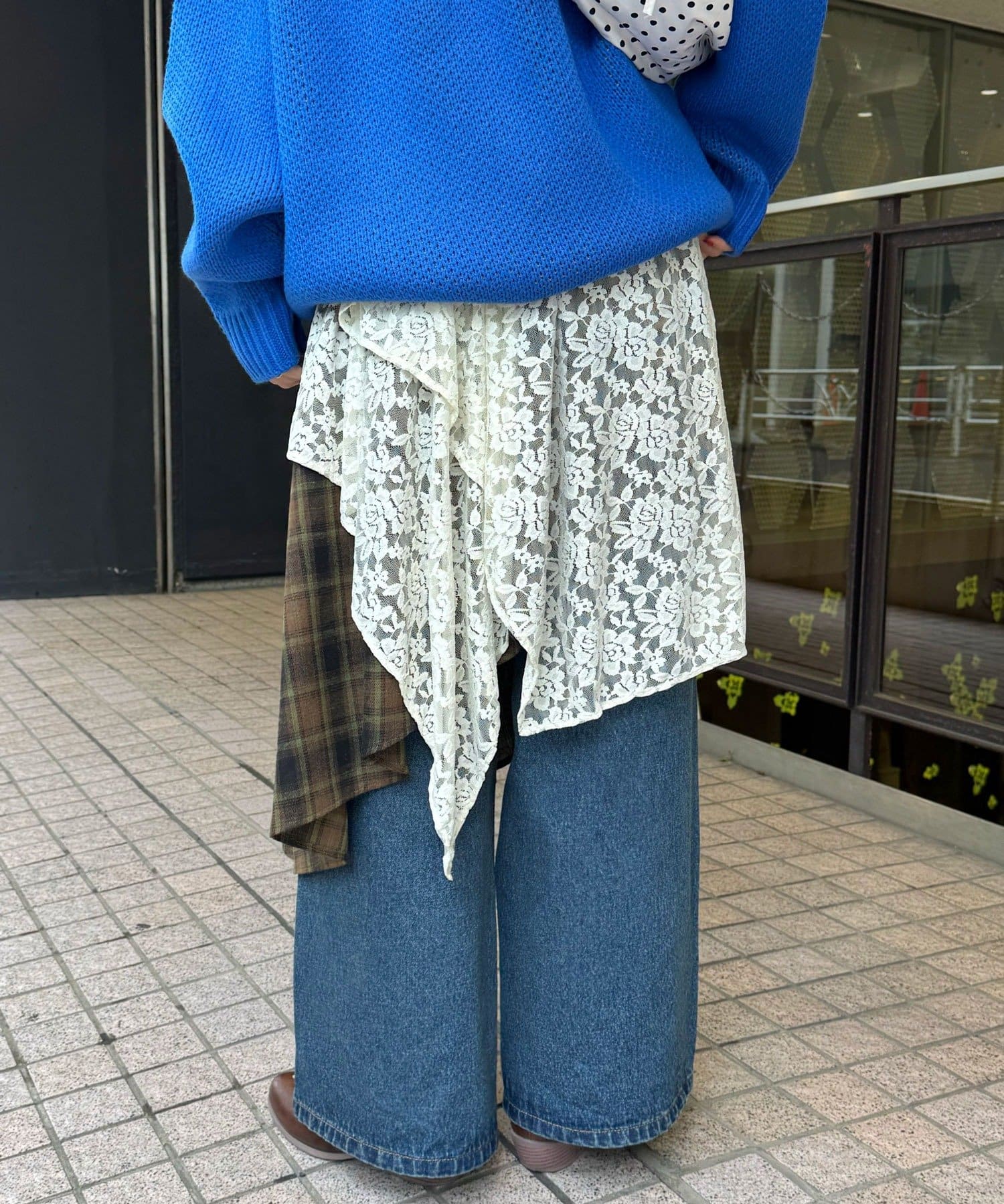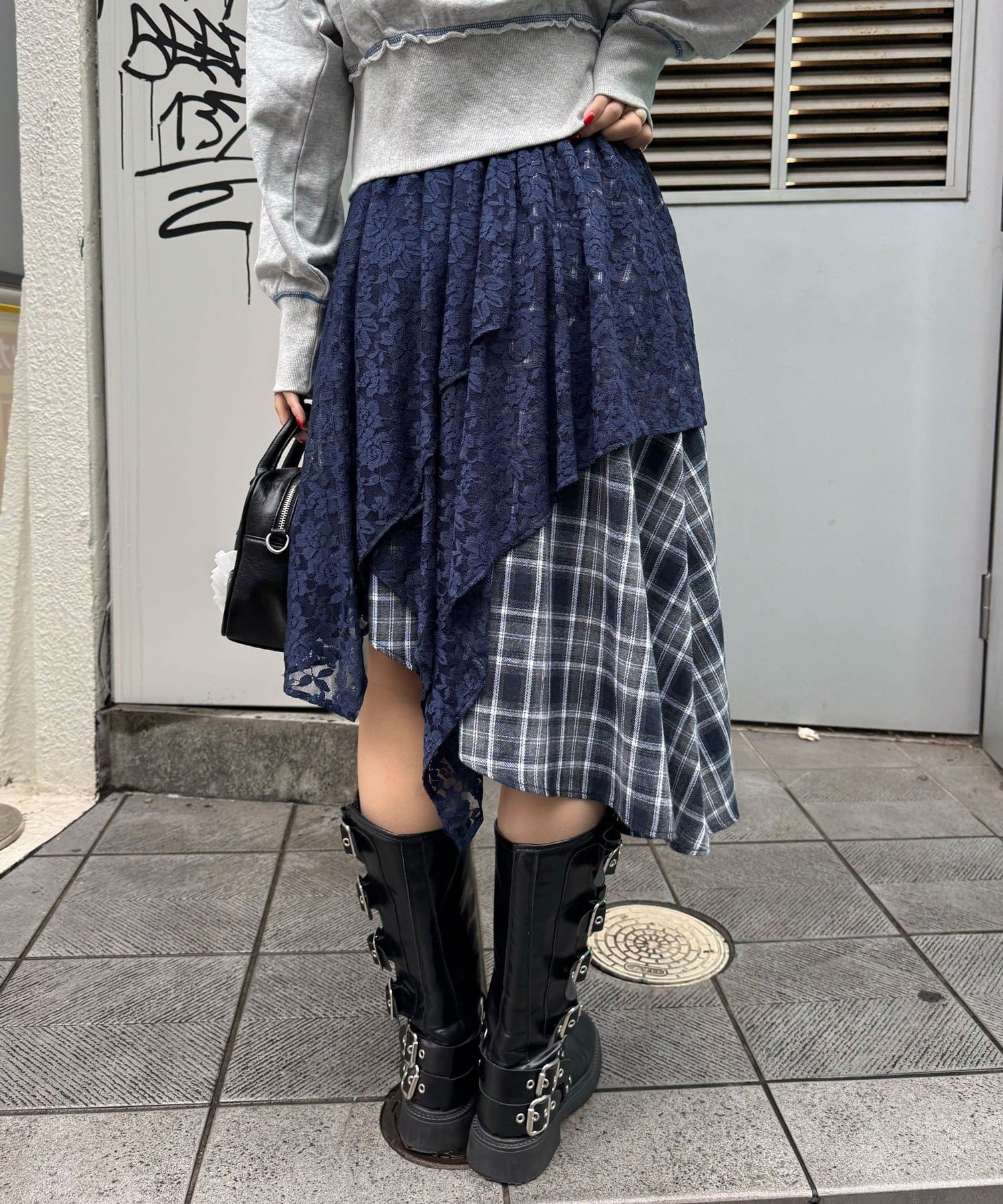 レースとチェックを組み合わせた、レイヤード風デザインのミドルスカート。