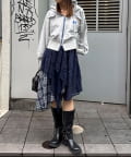 ショート丈トップスを合わせてスタイルアップ見えに。