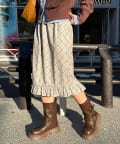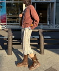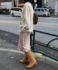 ニットやスウェットを合わせて、カジュアルに甘さをプラス。