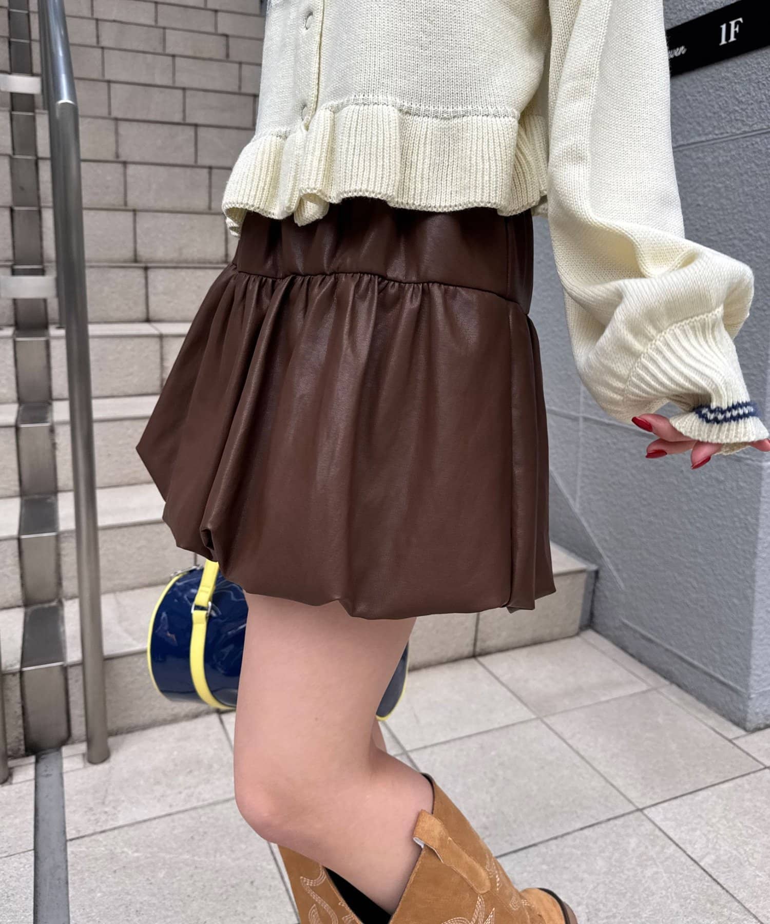1枚で映えるバルーンフェイクレザースカート