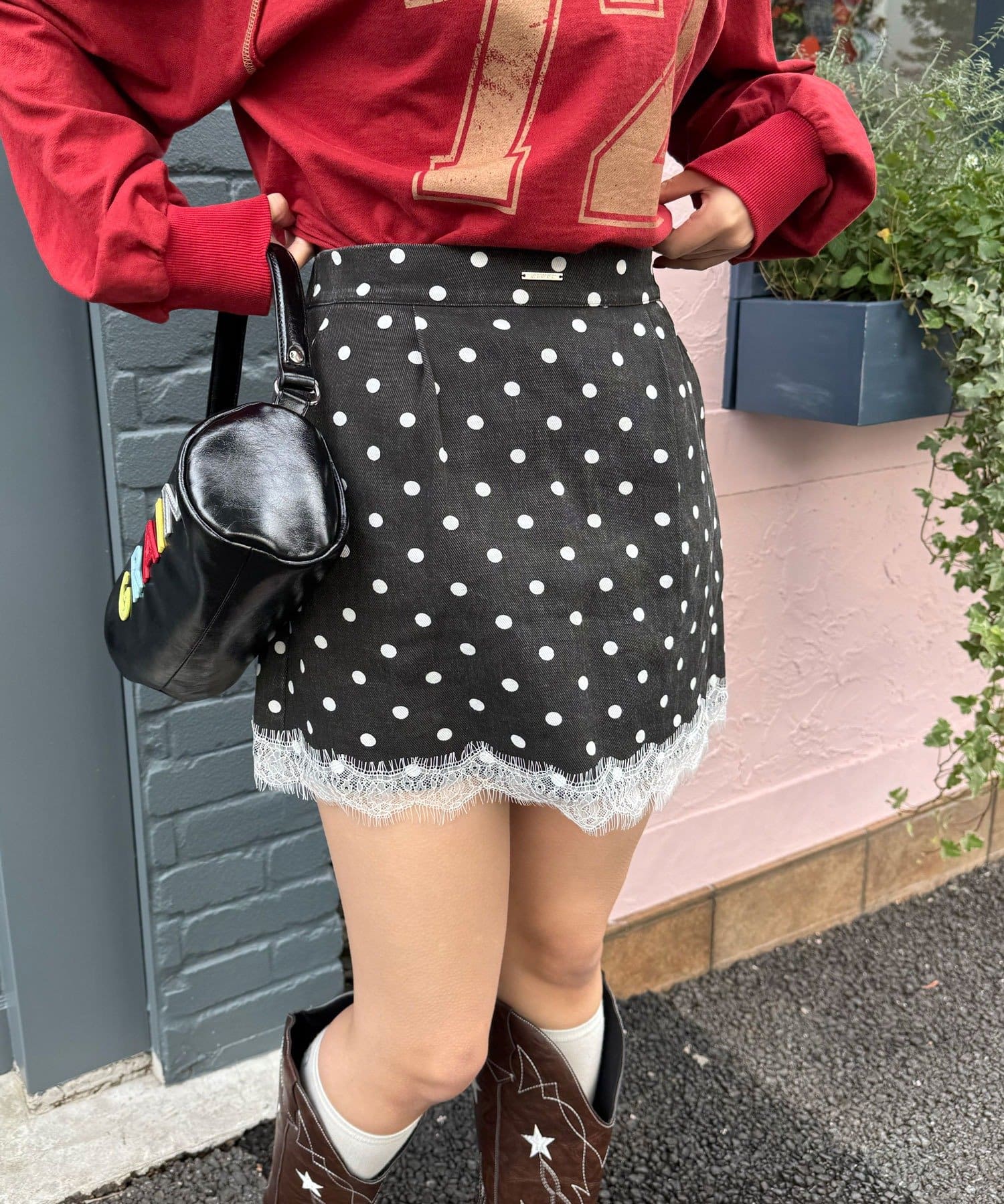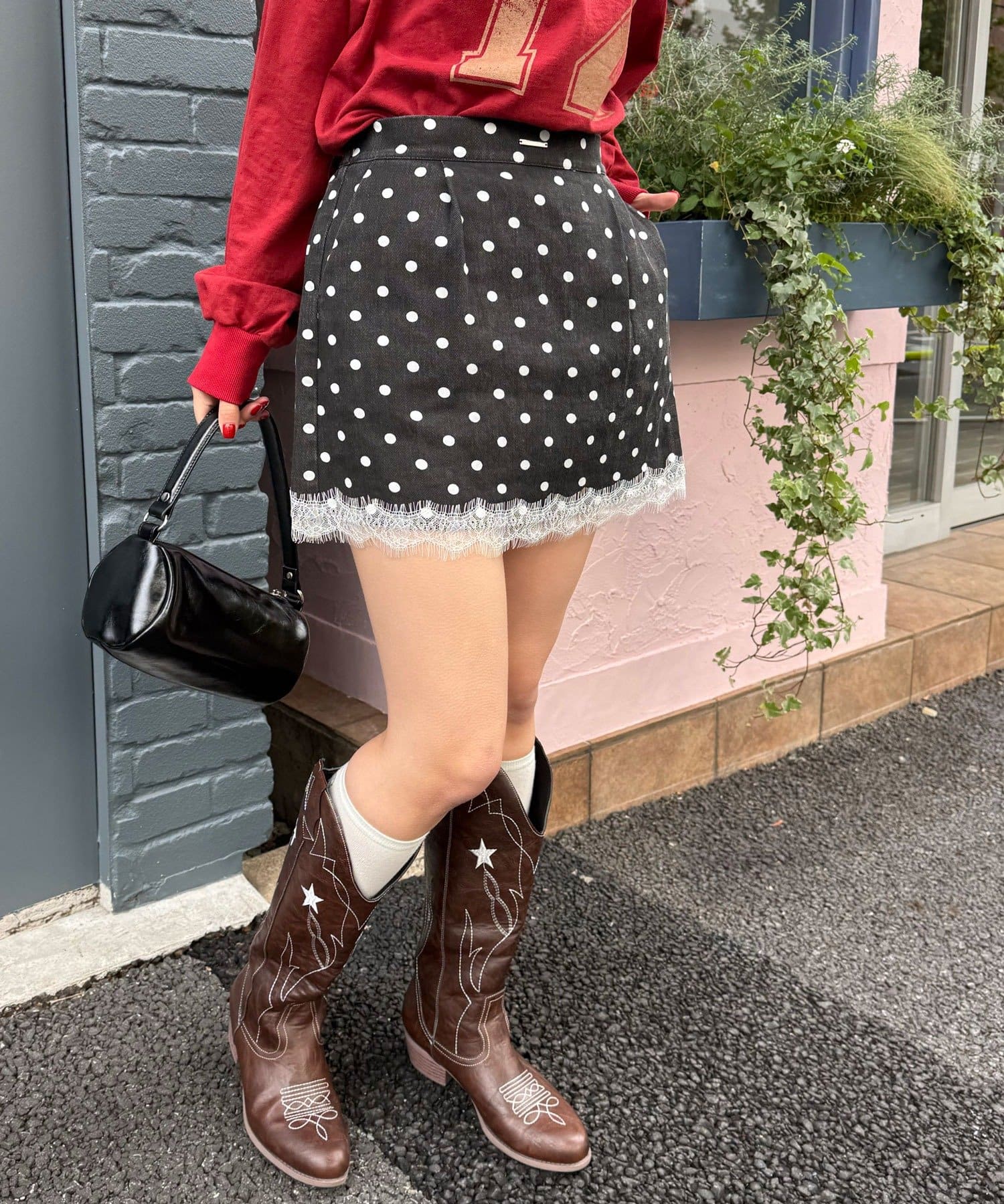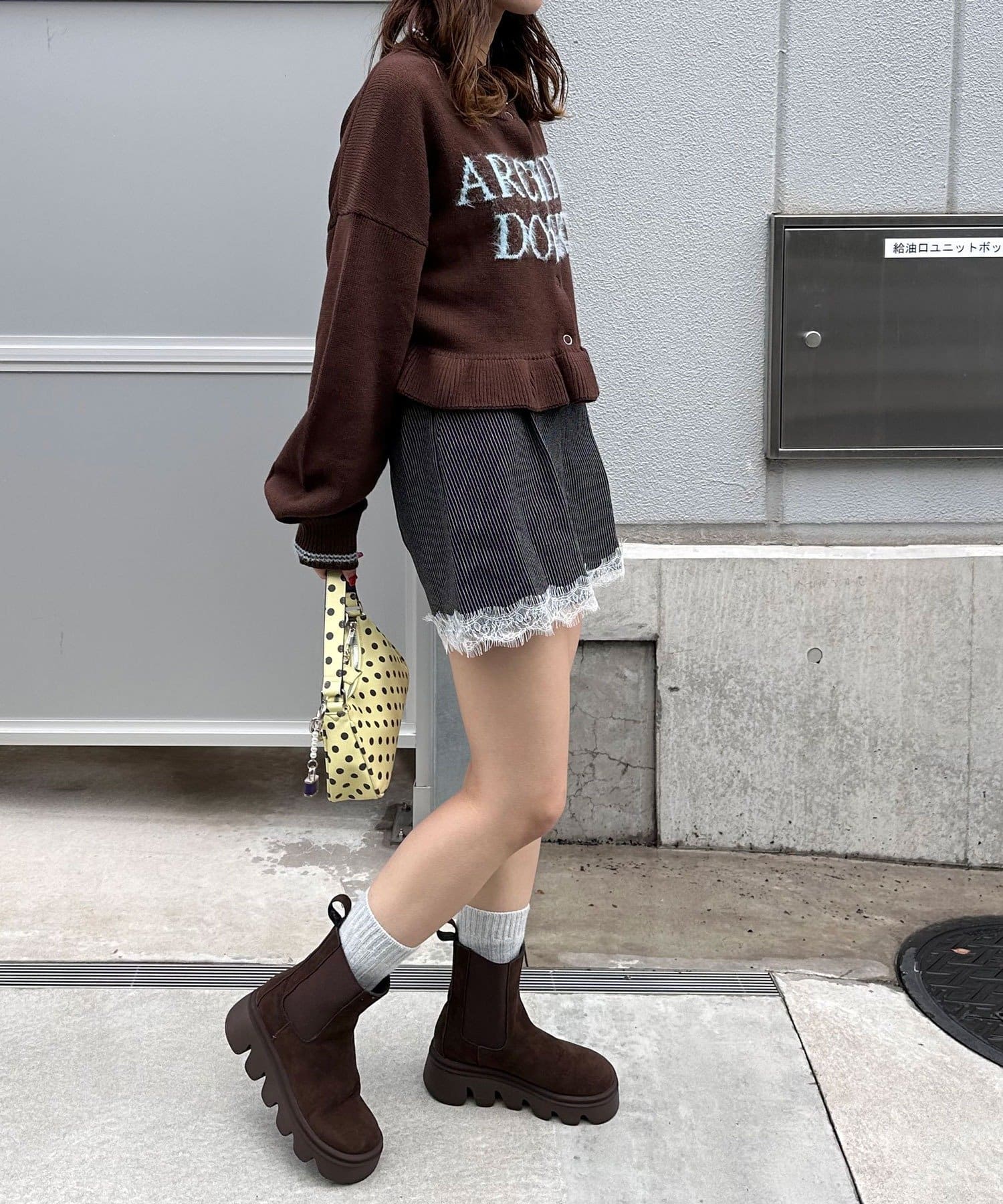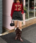 ドットとストライプはデニム生地で、カジュアルに甘さを足せるのがポイントです。