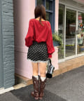 ブラウスを合わせれば、一気にガーリーな雰囲気にも仕上がります。
