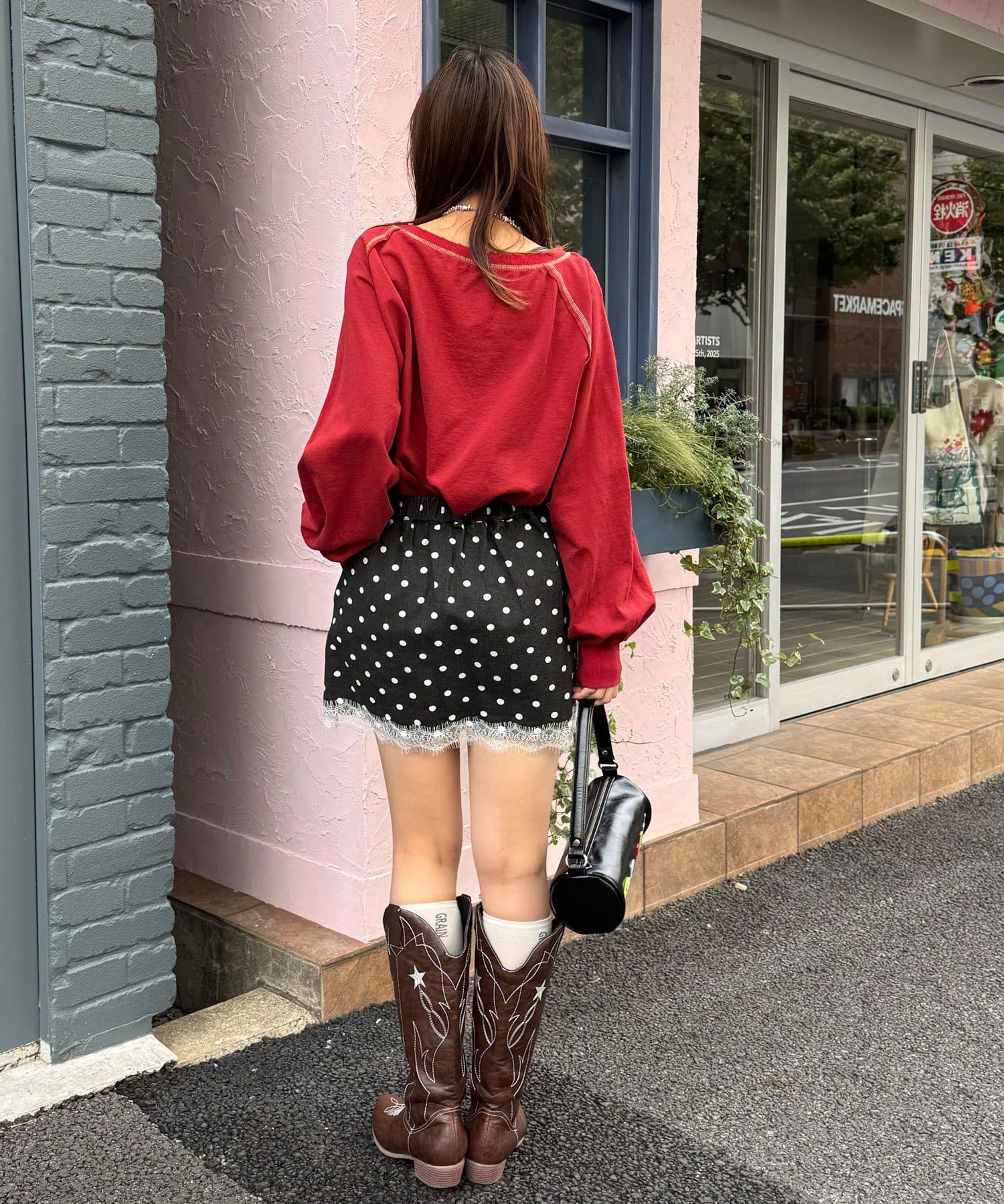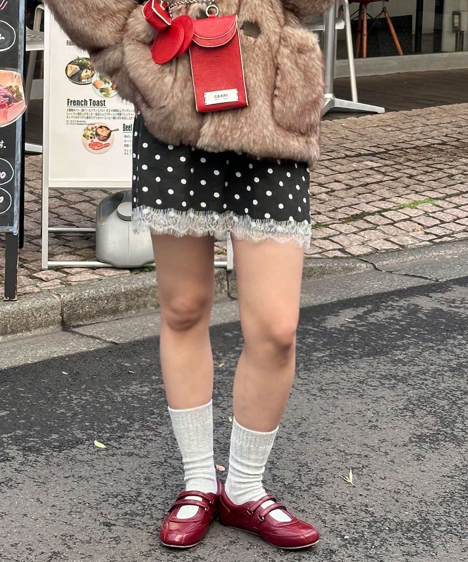 ゆるめスウェットと合わせると、甘×カジュアルのバランスがちょうどいい。