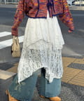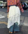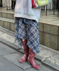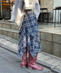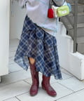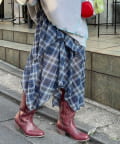 裾に動きをつけたイレヘムデザインが印象的なミドルスカート。
