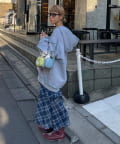 シンプルなトップスを合わせて、スカートのデザインを際立たせるコーデに。