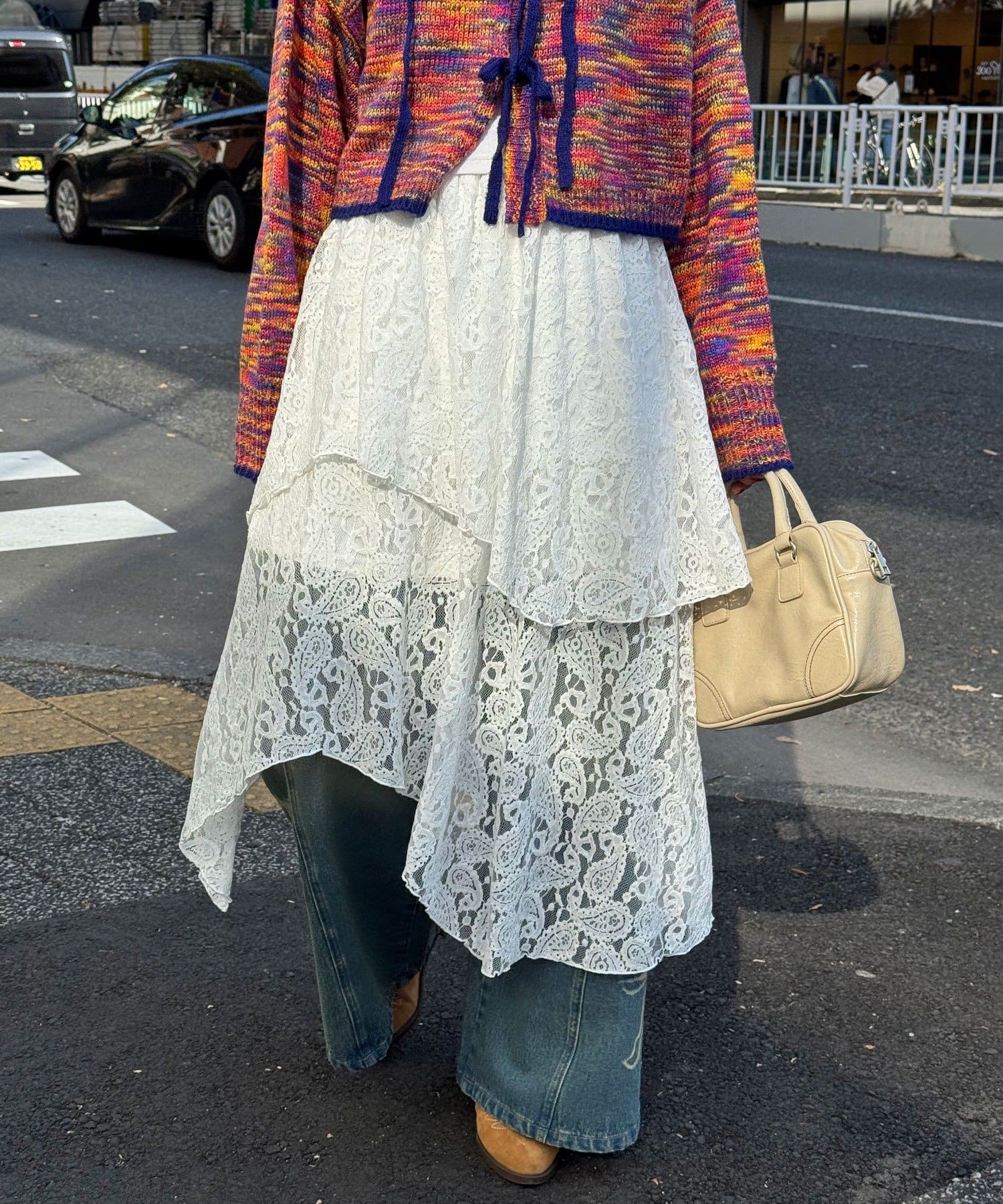 デニムやレギンスをレイヤードして、カジュアルストリートスタイルにも◎