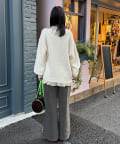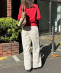 ゆったりしたシルエットが脚のラインを拾わず、抜け感のあるバランスに。