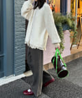 淡色ニットと合わせれば、甘さ控えめの大人カジュアルに。