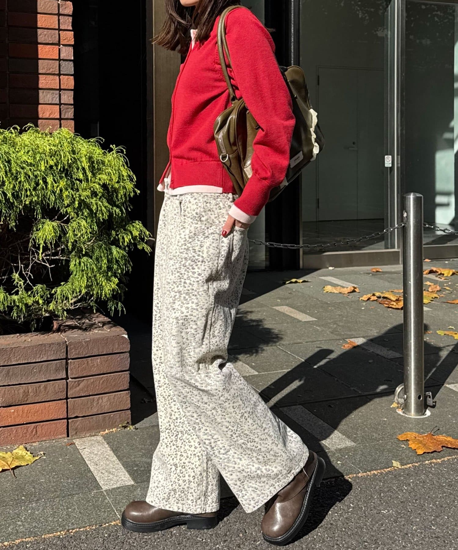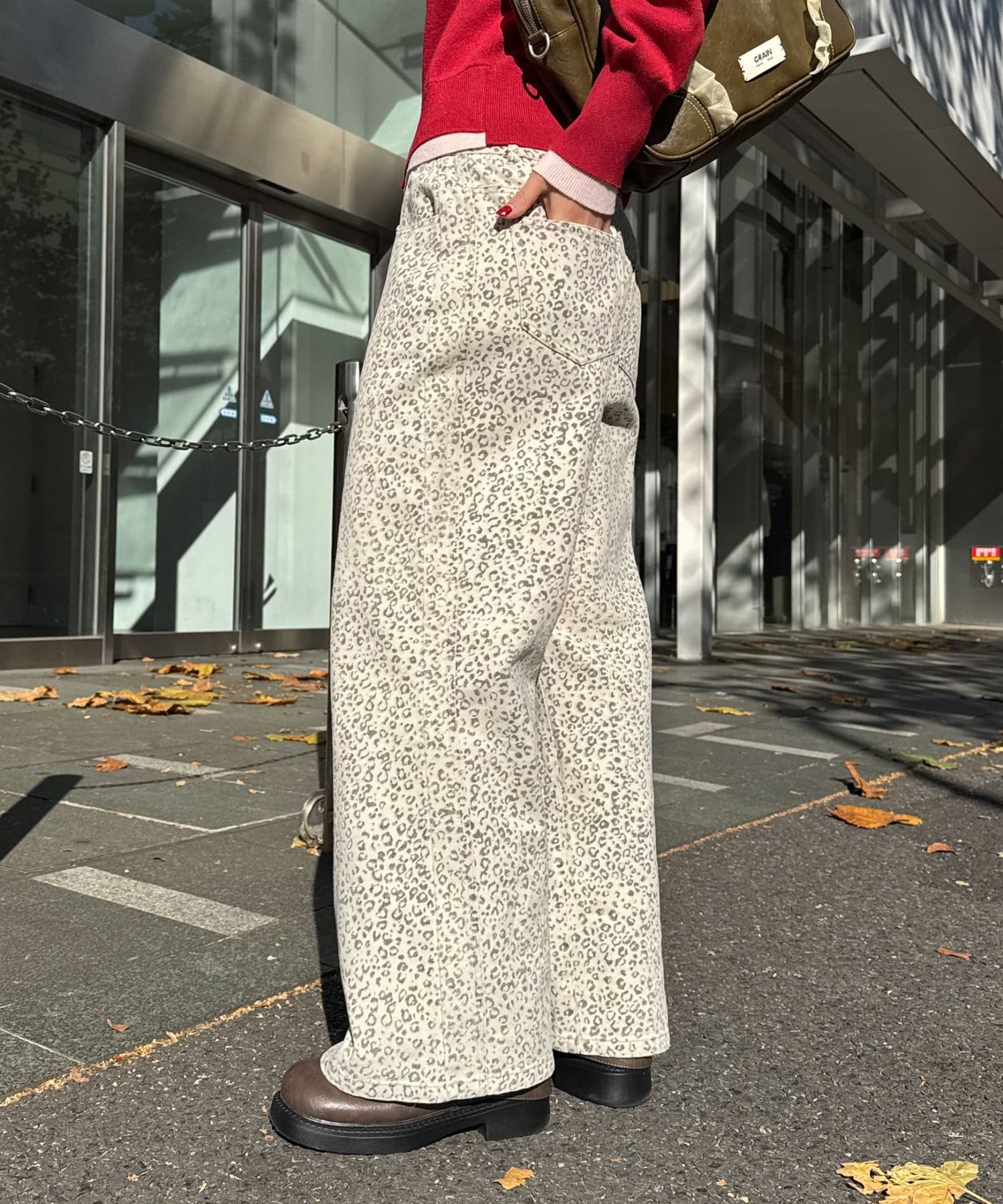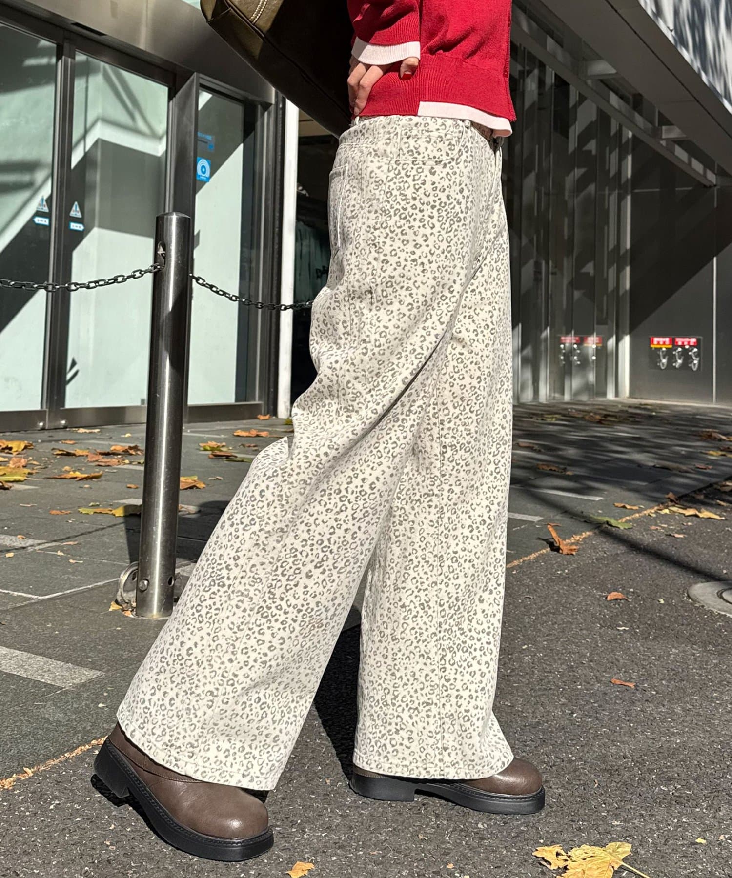 さりげないアニマル柄がコーデを一気にこなれて見せるワイドパンツ。