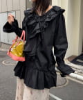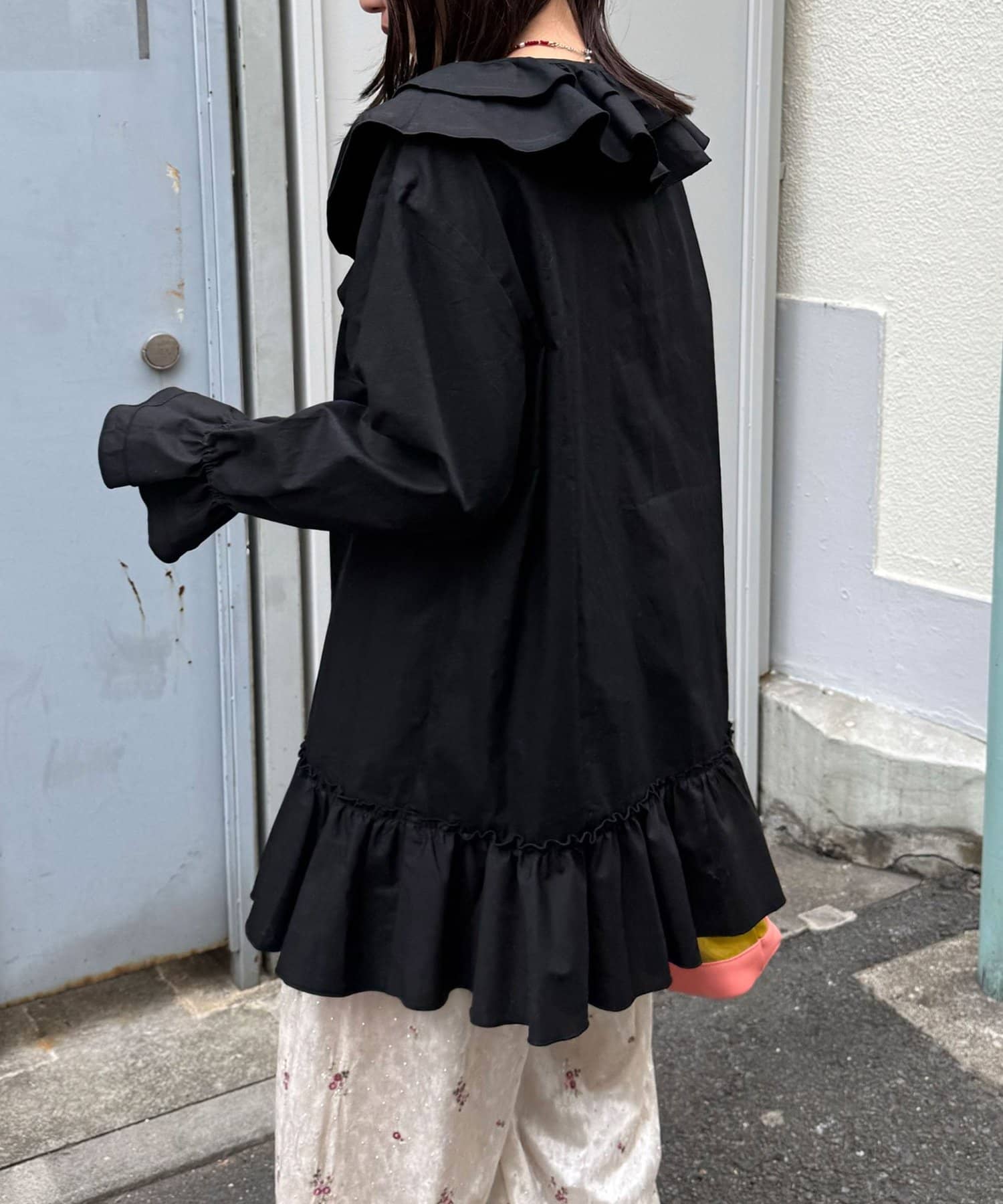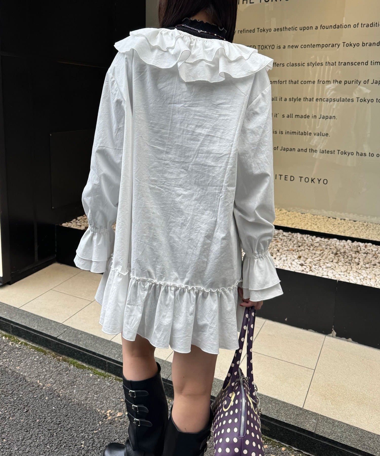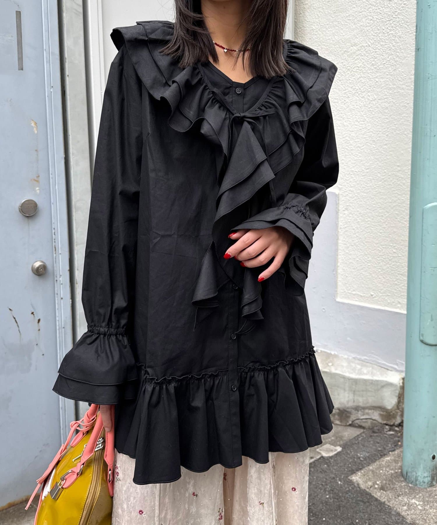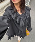 大きめラッフルがぱっと目を引く、華やかなチュニックブラウス。