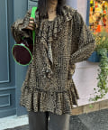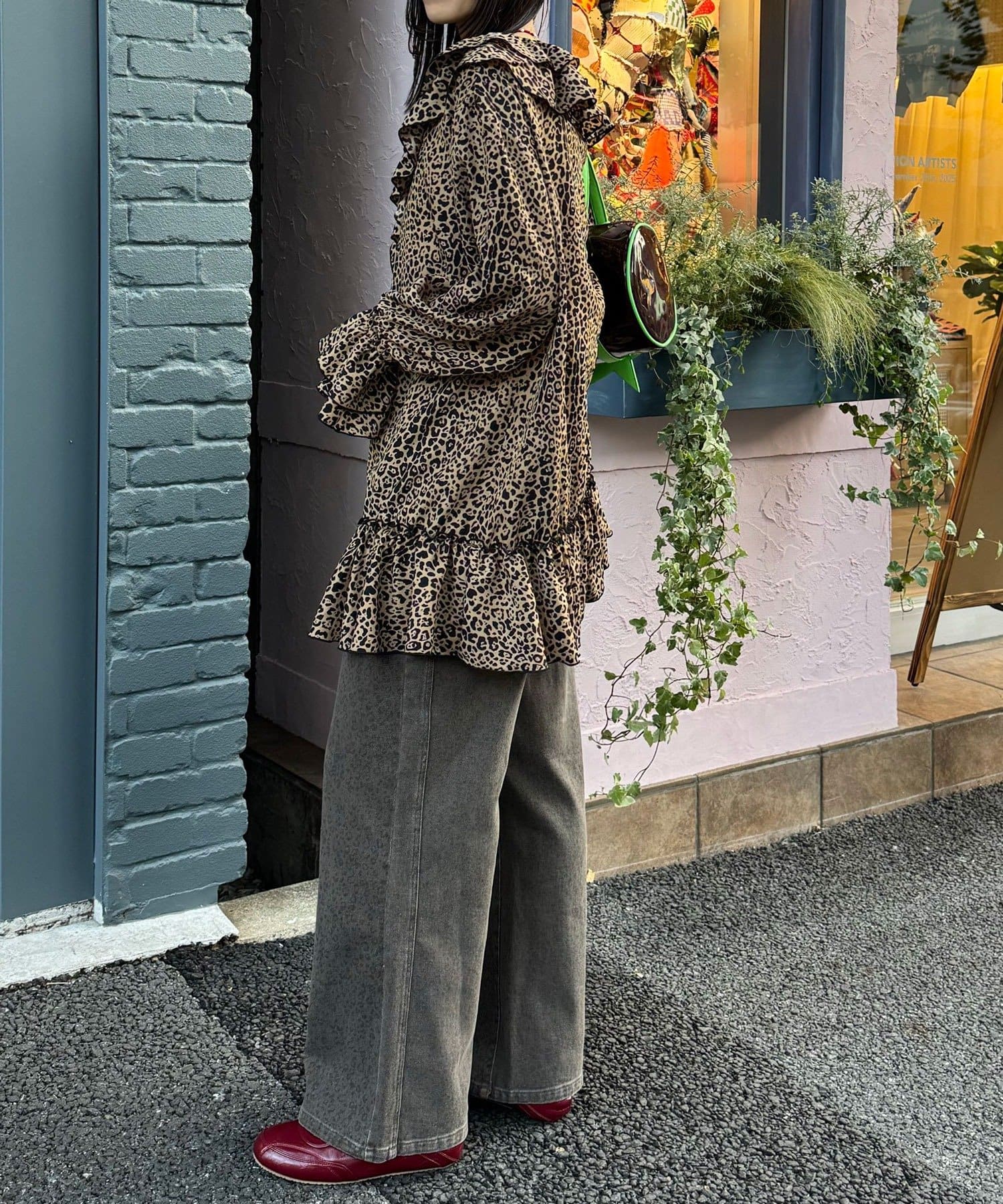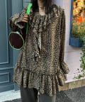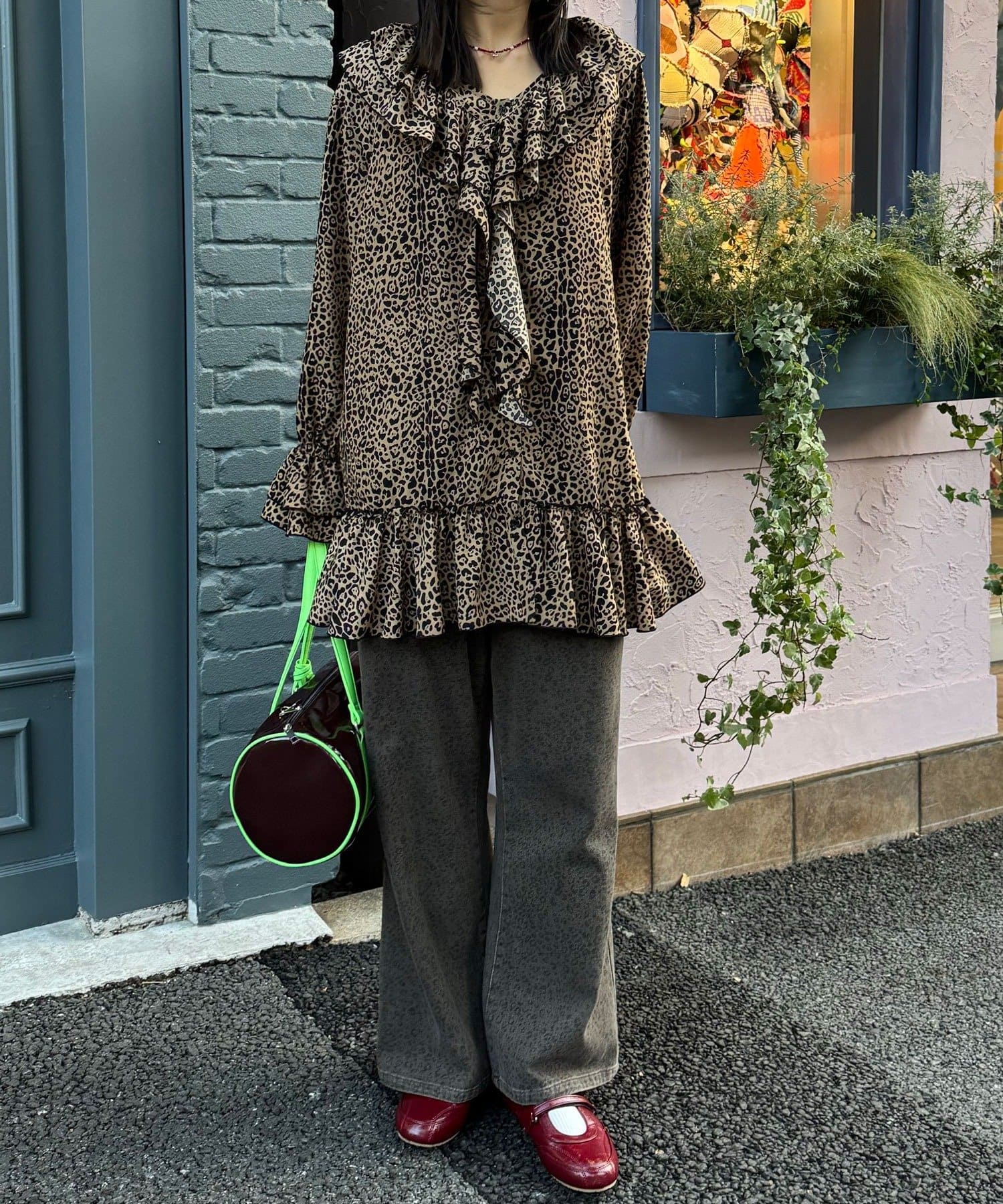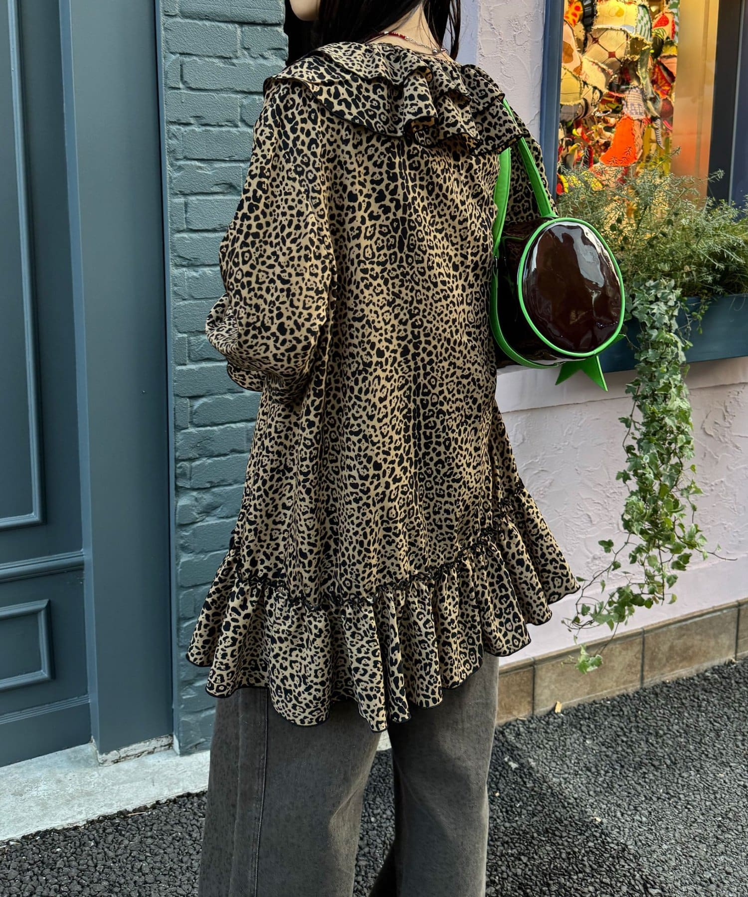 大きめラッフルがぱっと目を引く、華やかなチュニックブラウス。
