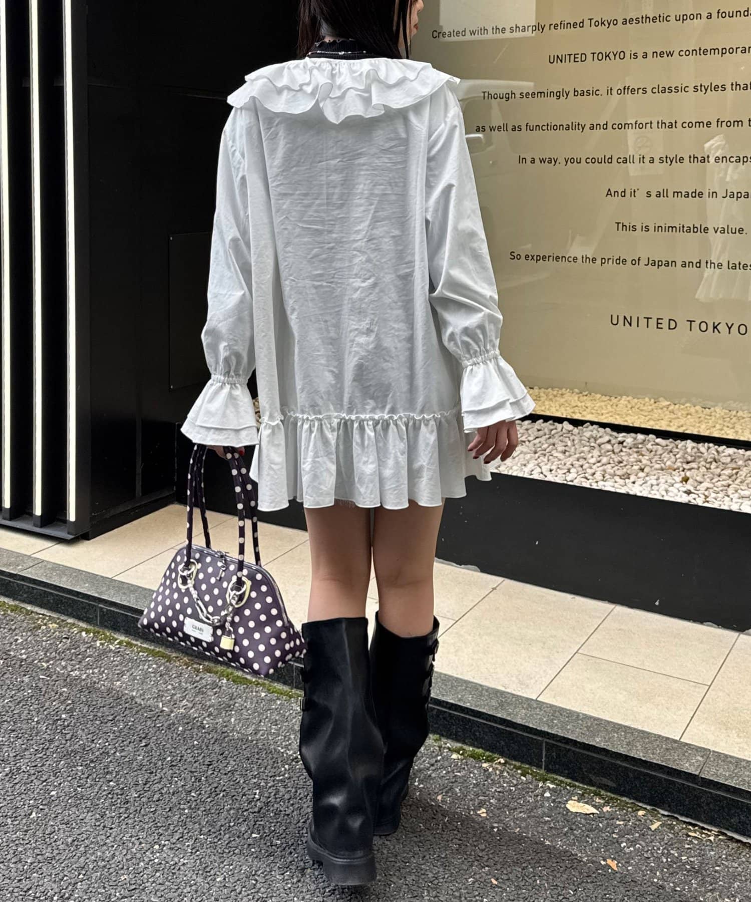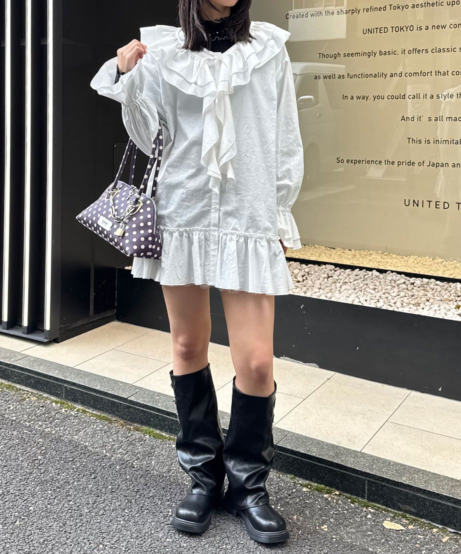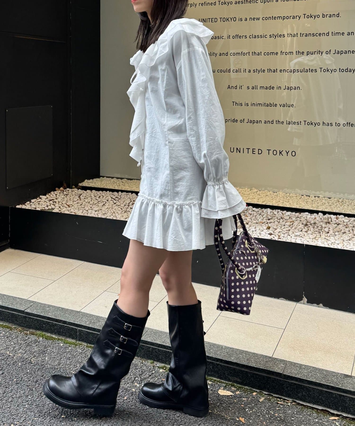 ロングブーツを合わせれば、ミニワンピ風のバランスで旬な雰囲気に。
