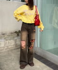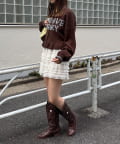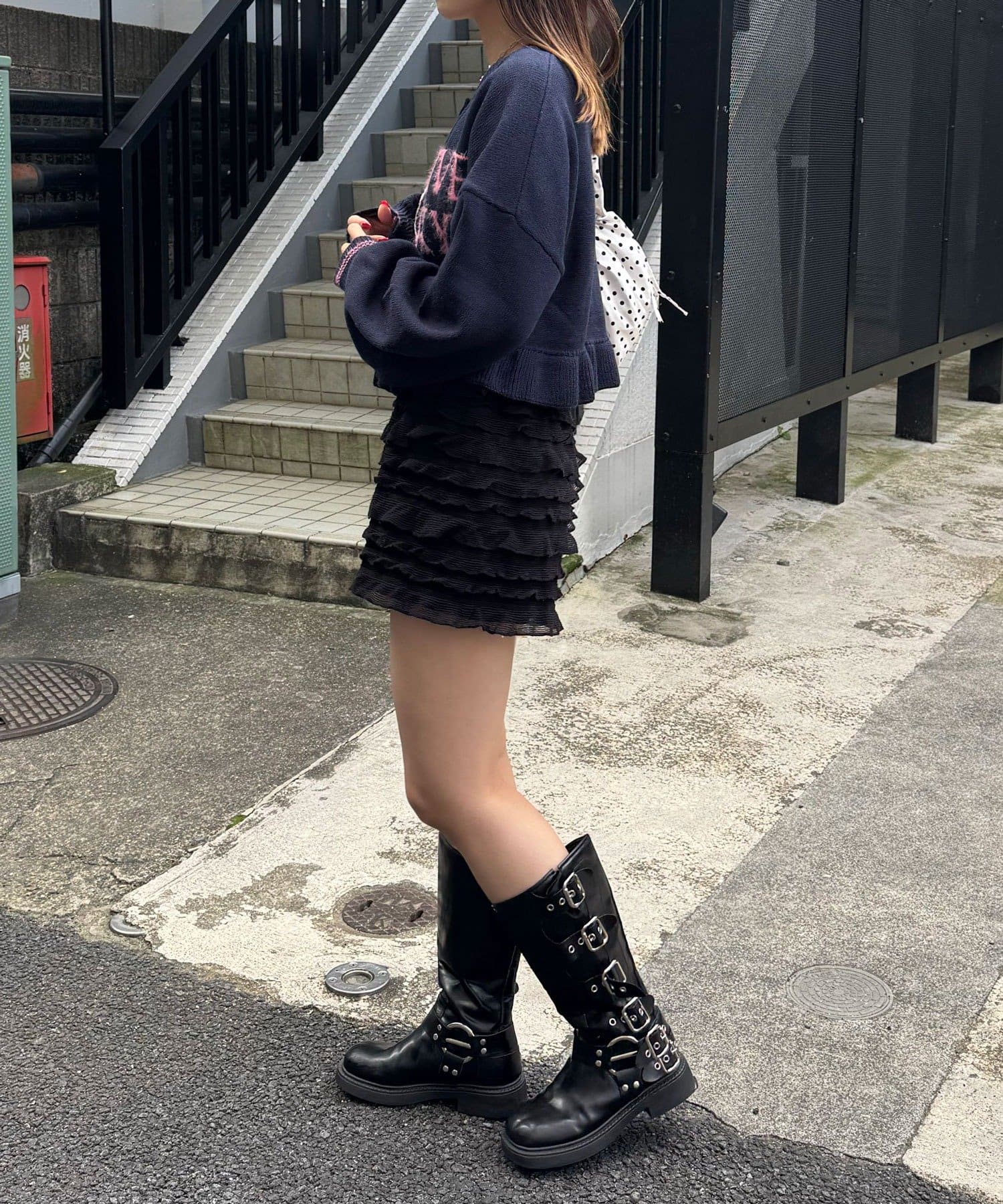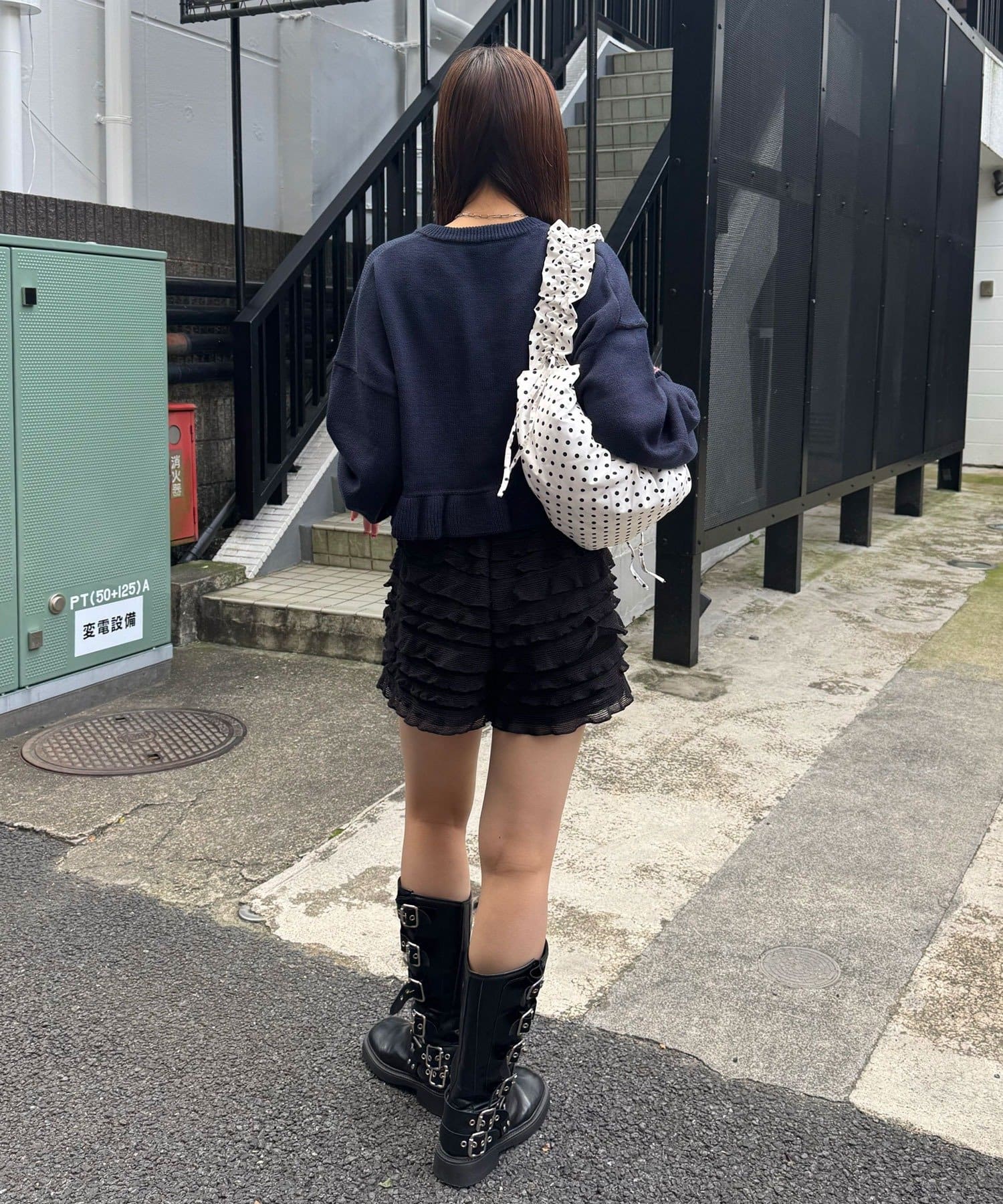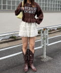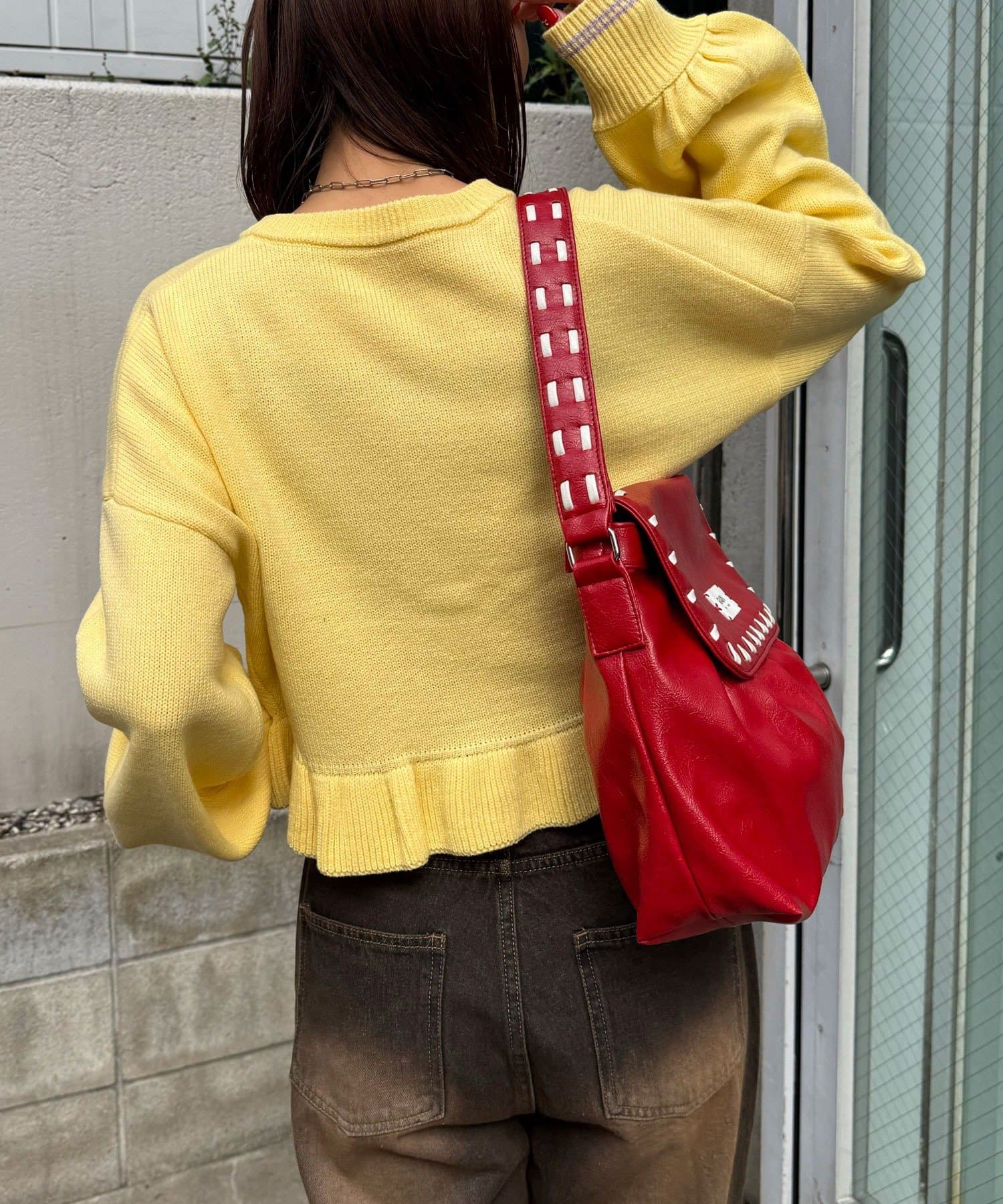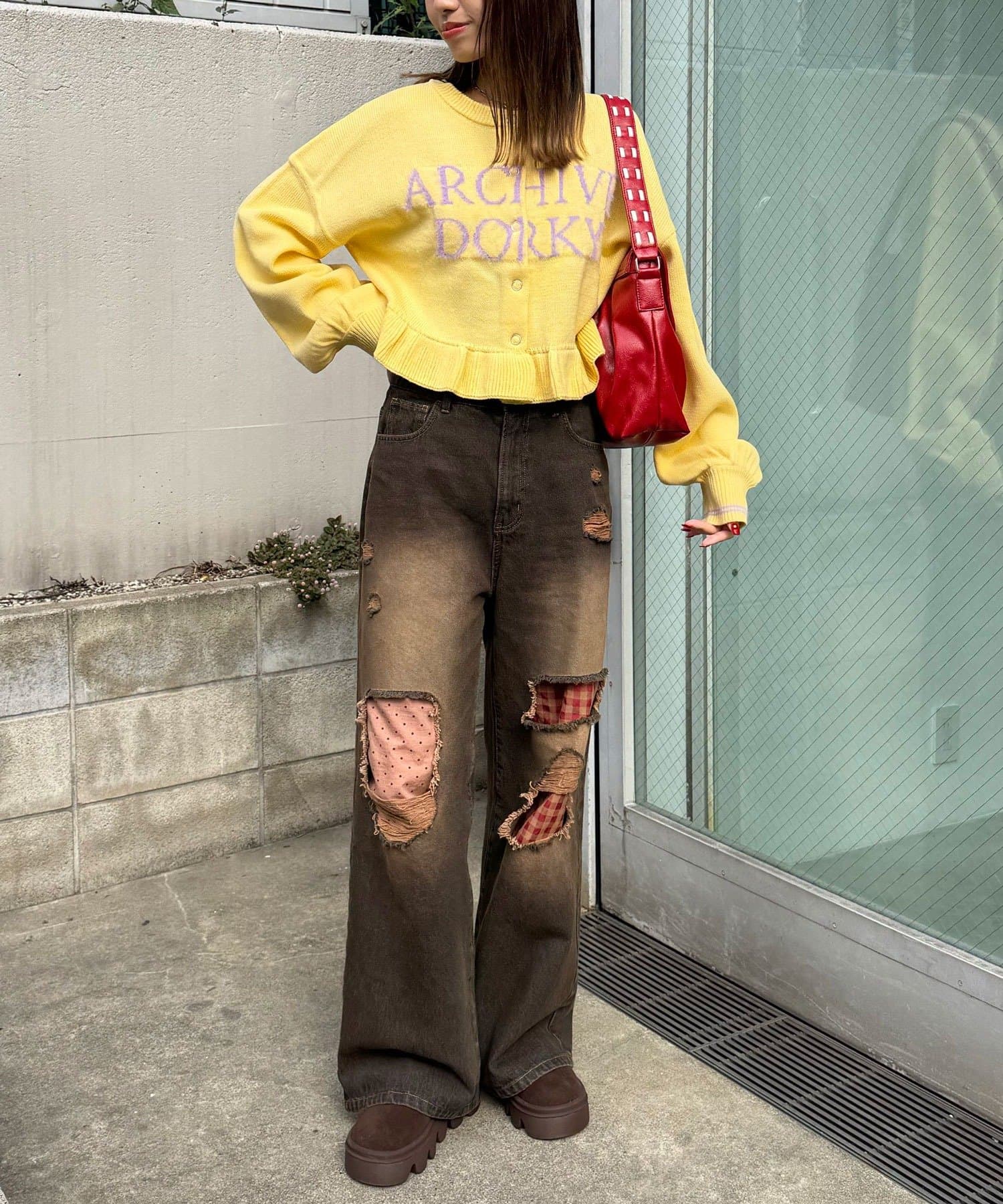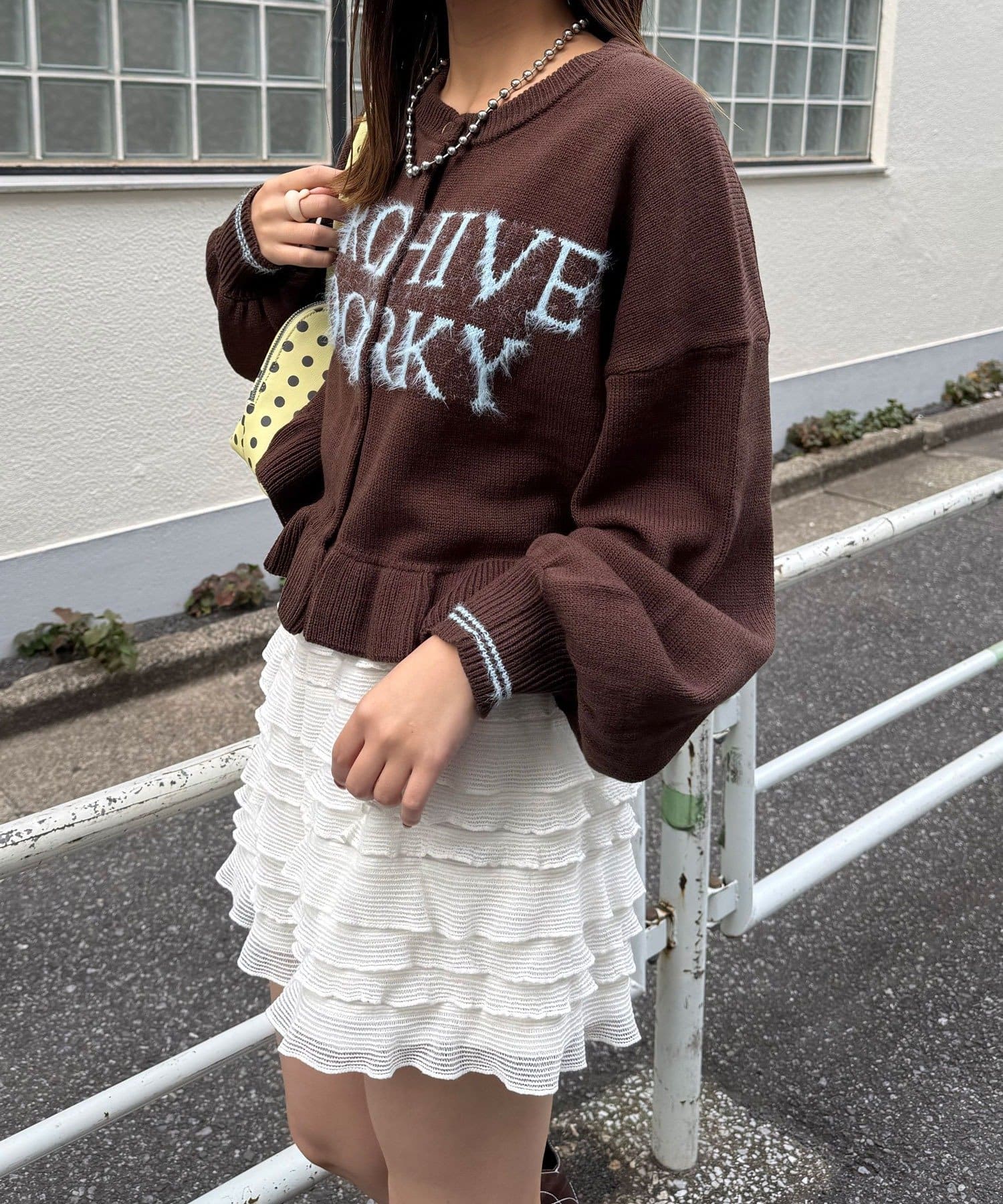 • CIAOPANIC(チャオパニック) シャギー配色ロゴフリルニットカーディガン