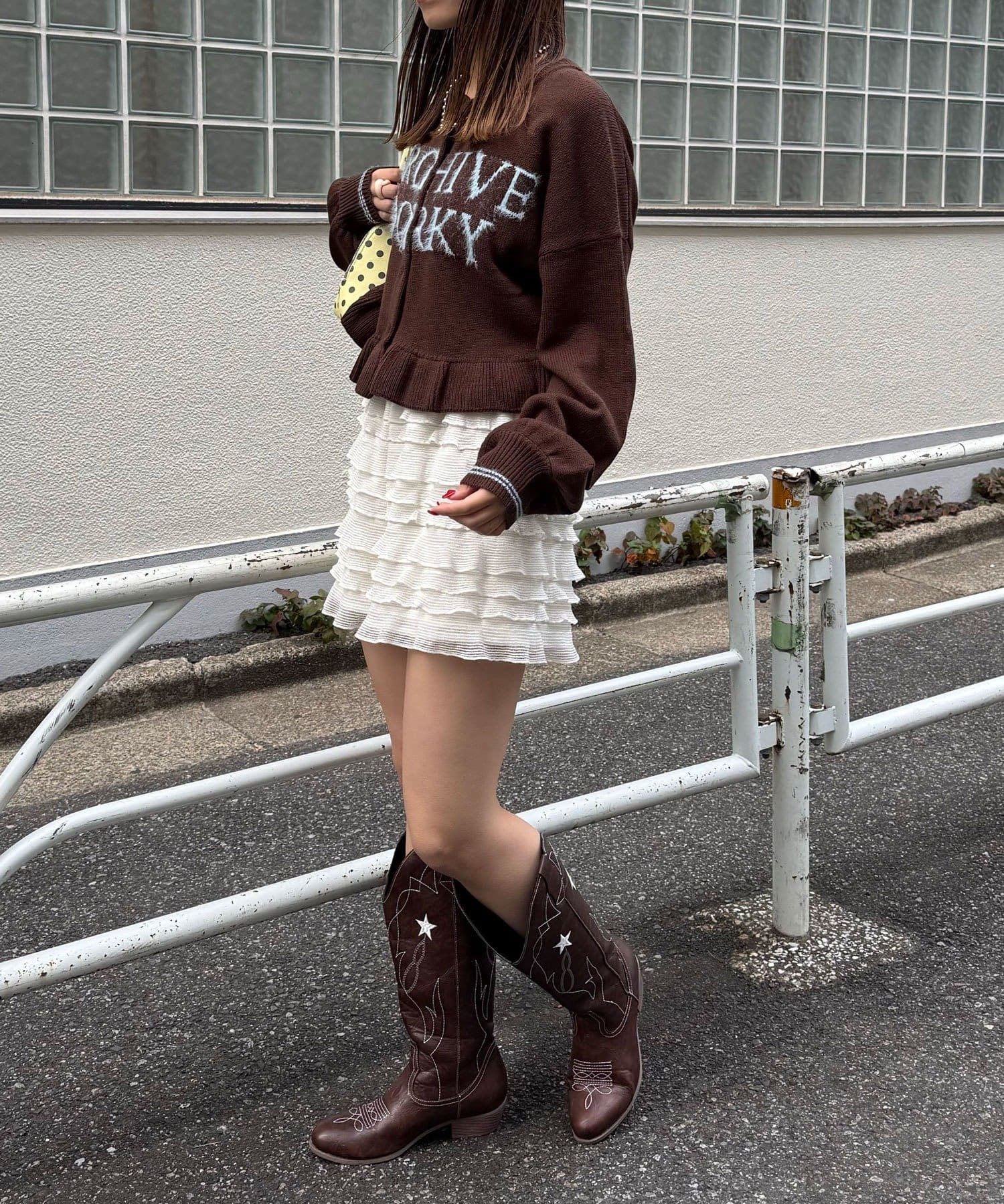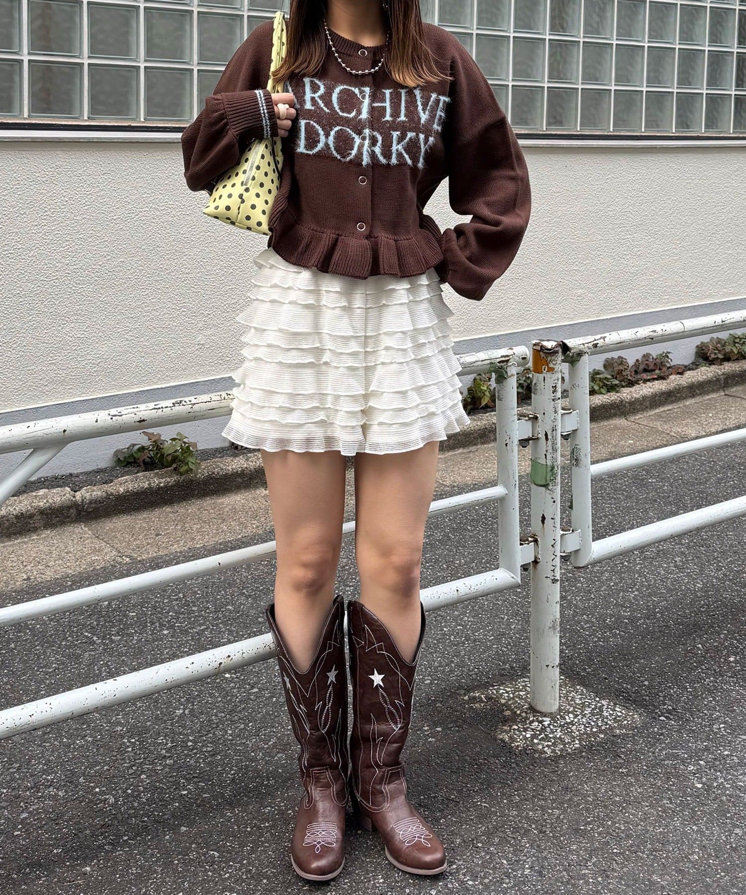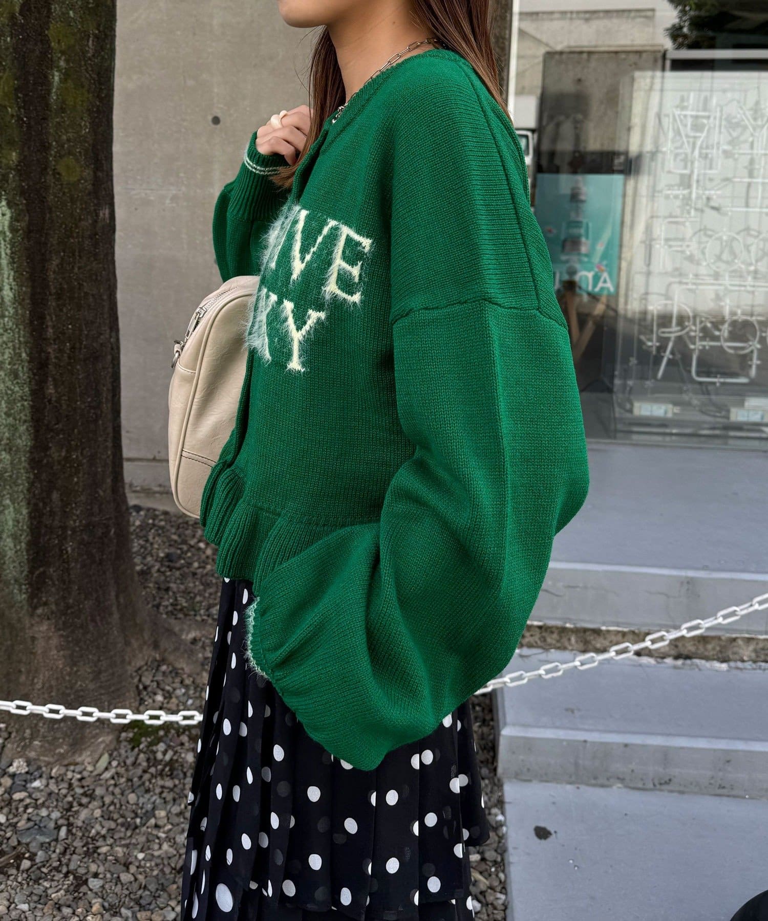 TOP > CIAOPANIC > レディース > トップス > カーディガン/ボレロ > シャギー配色ロゴフリルニットカーディガン