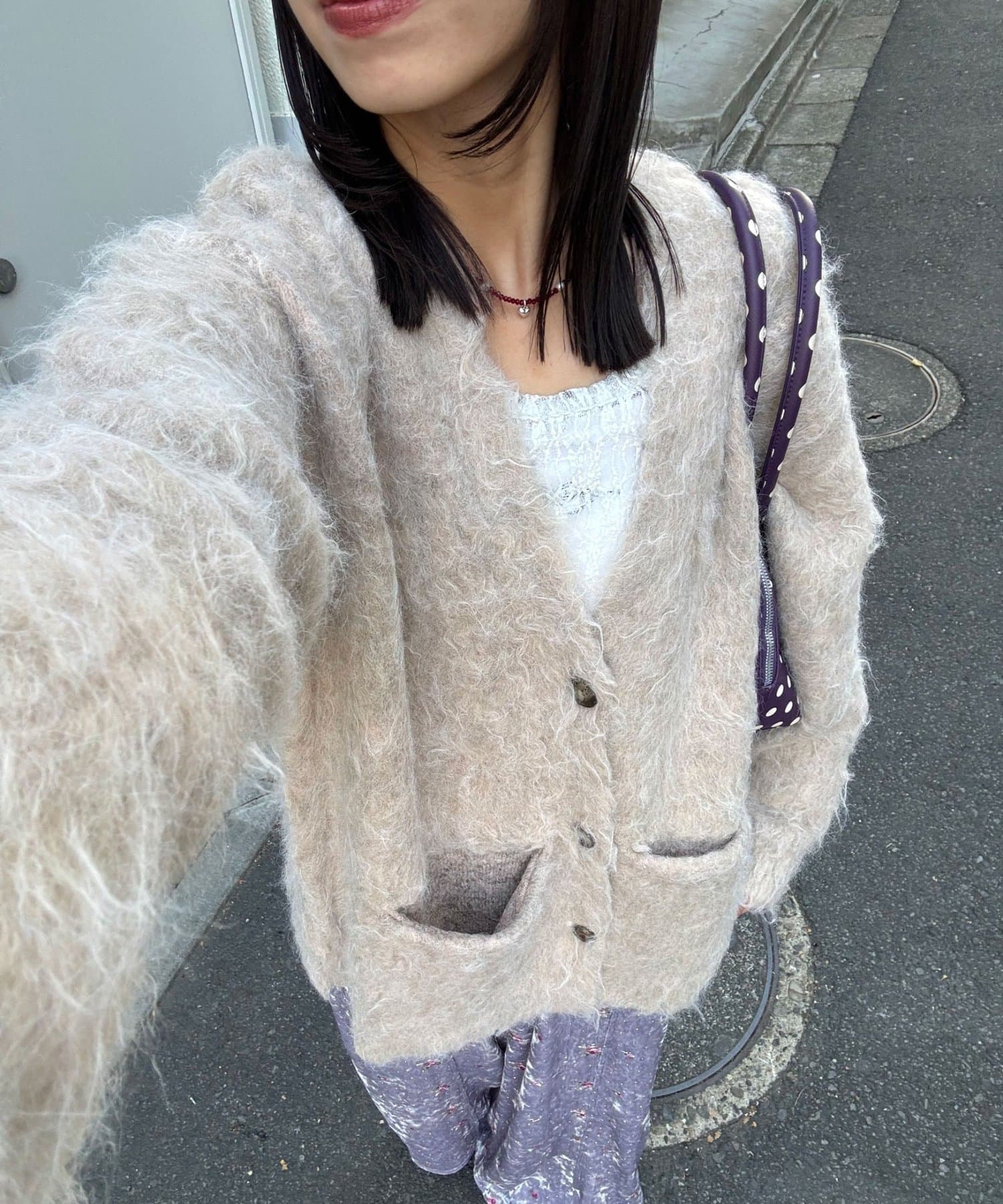 ふんわりとした質感が魅力のシャギーニットカーディガン。