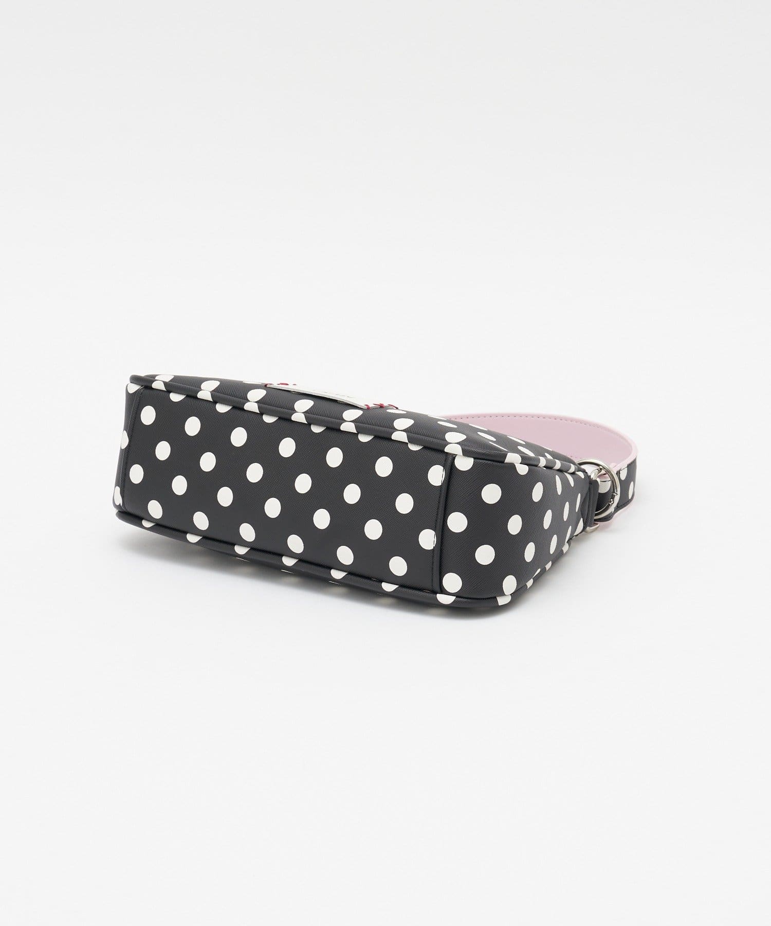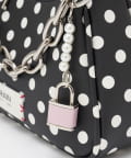 ドット柄が目を惹く、チャーム付きバイカラーミニショルダー。
