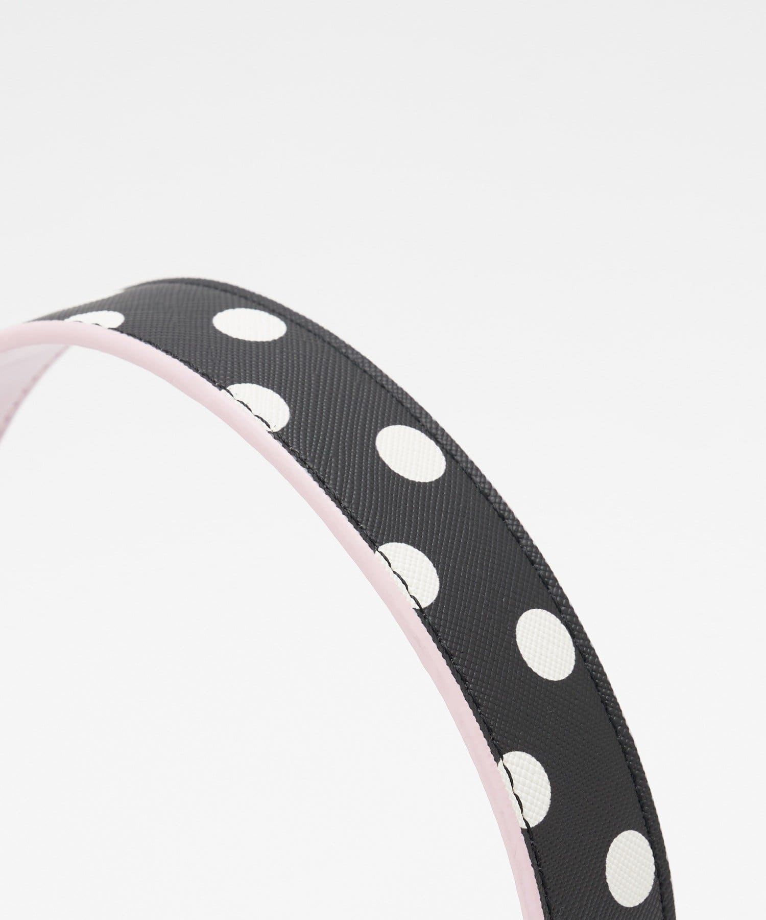 メタル×パールのチャームが上品なポイントになり、ガーリーなドット柄を大人っぽく引き締めてくれます。