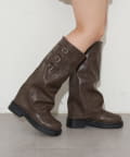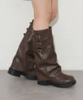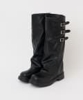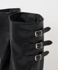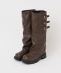 サイドベルトでさりげなく個性を添えたロングブーツ。