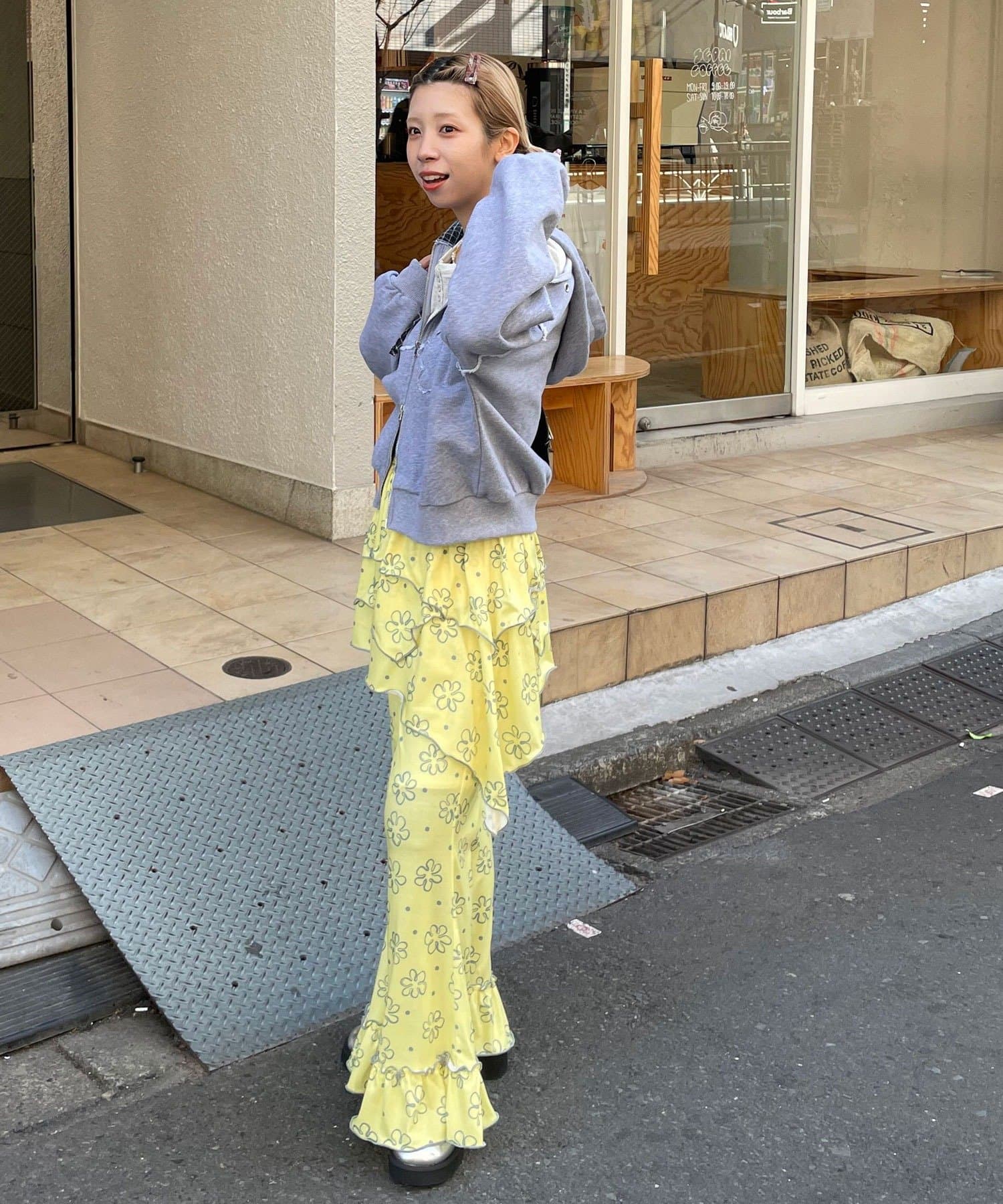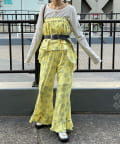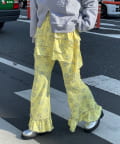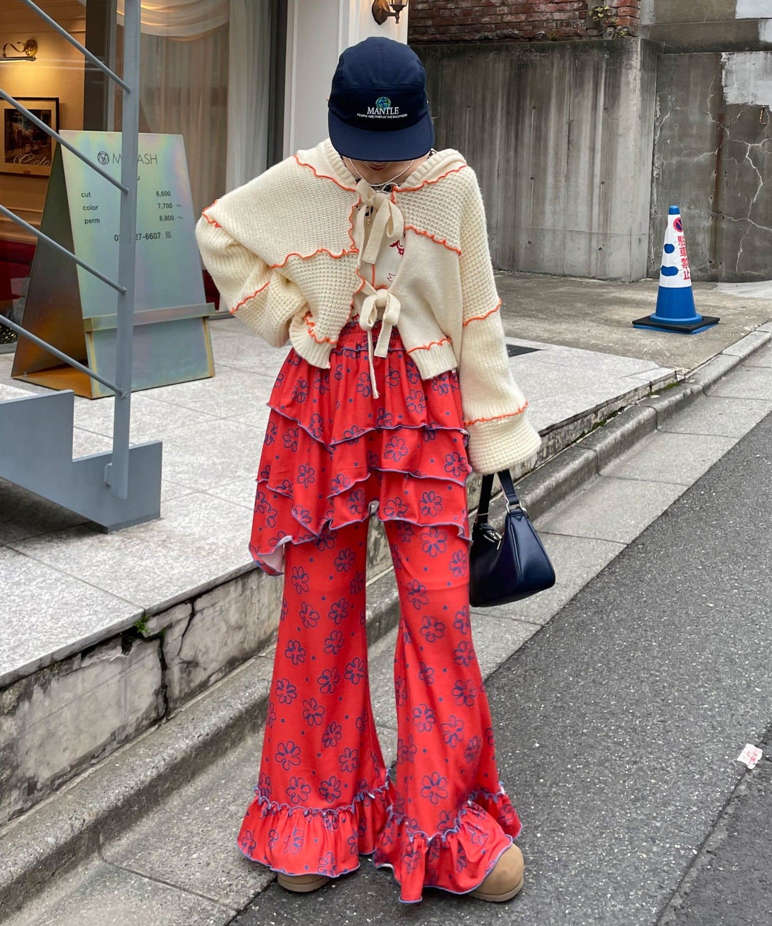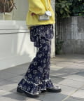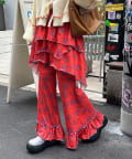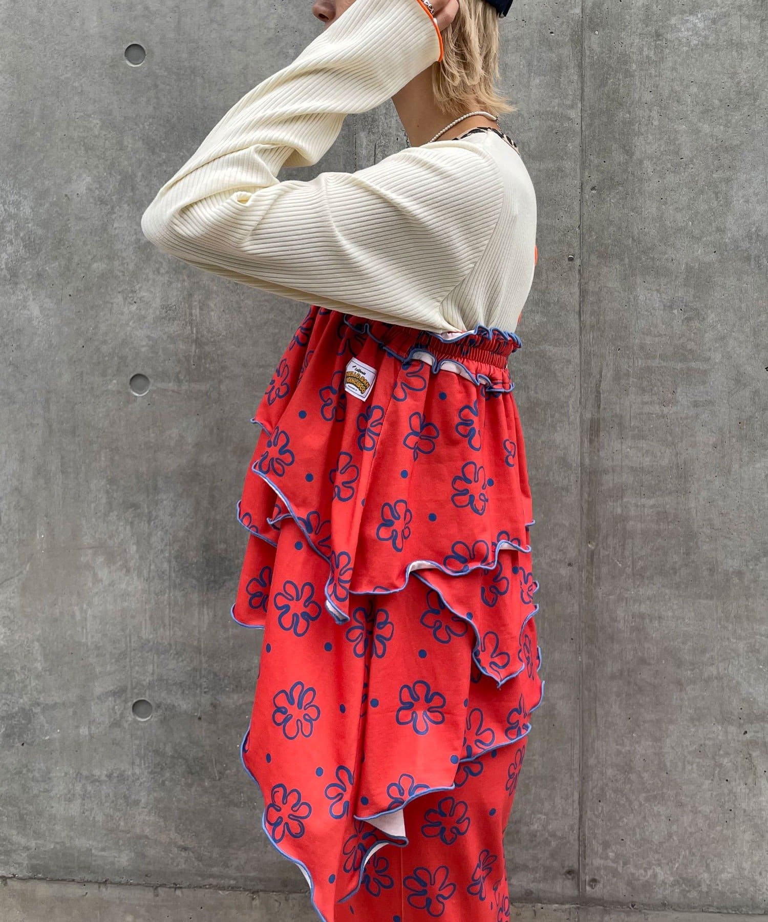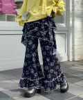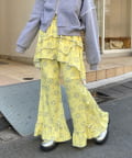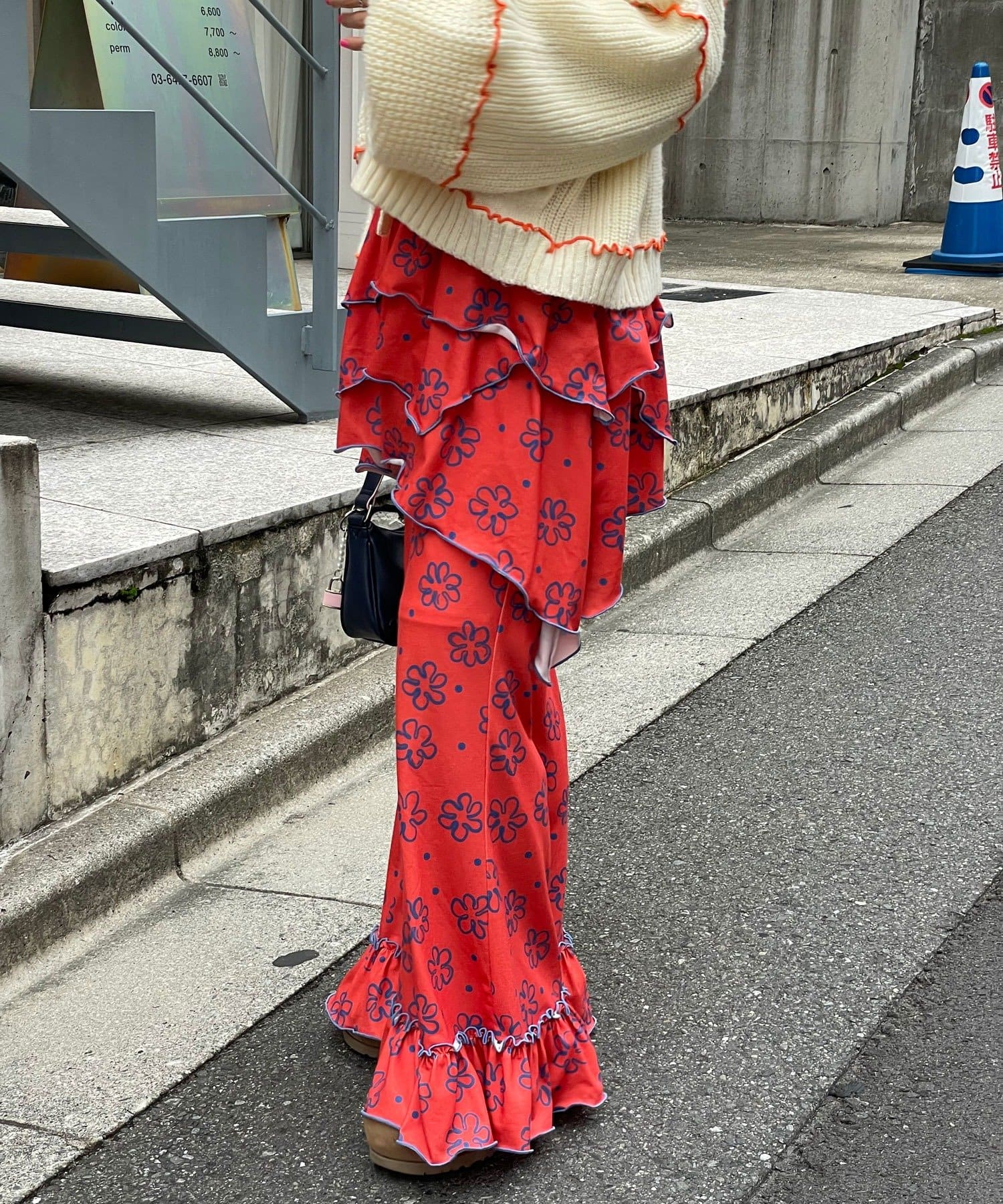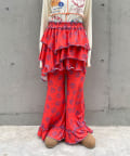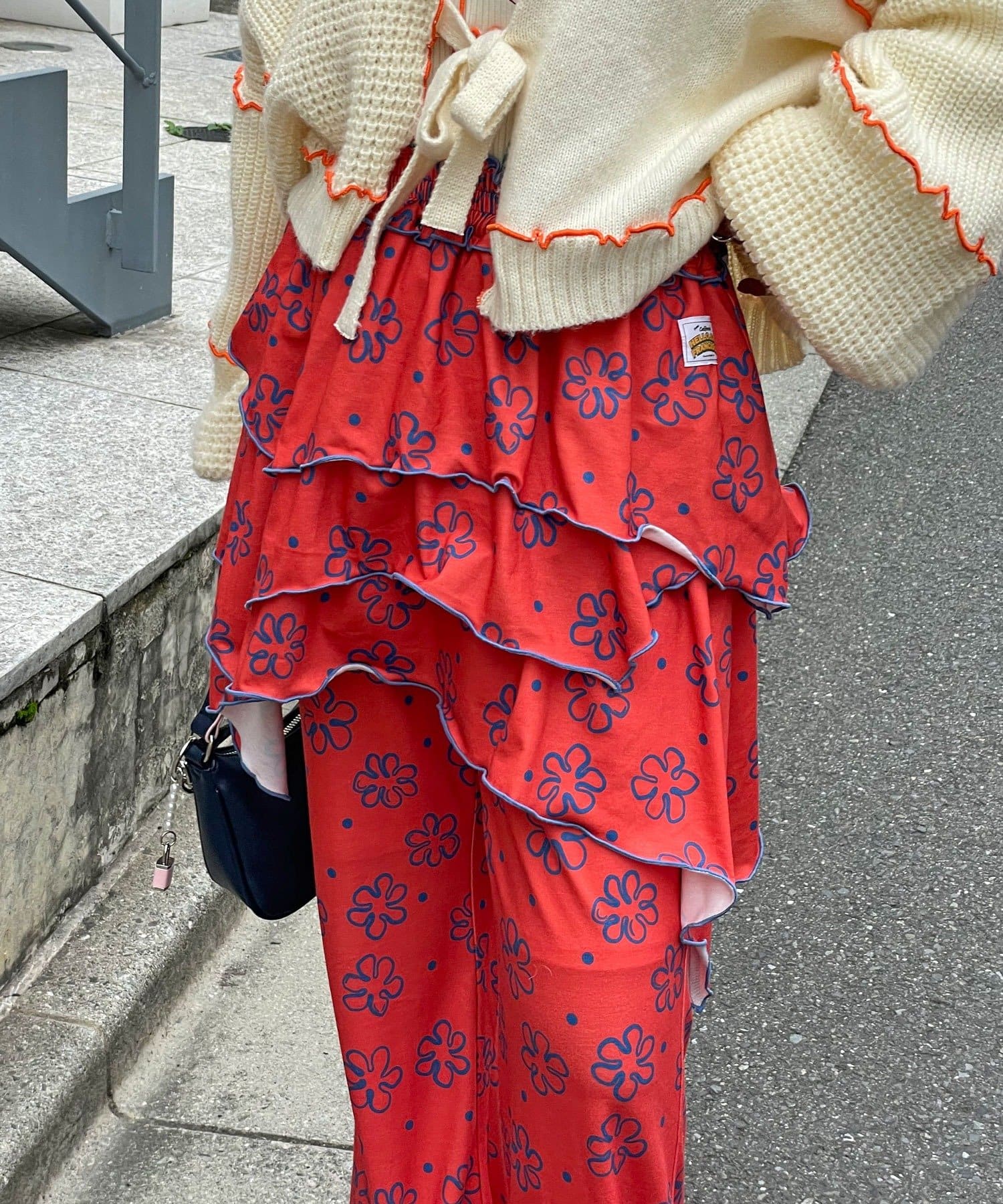 イレヘムのランダムティアードがかわいいミニスカートと、裾のフリルがポイントになったフレアパンツのセットです。