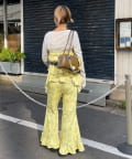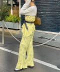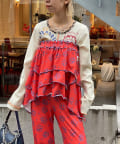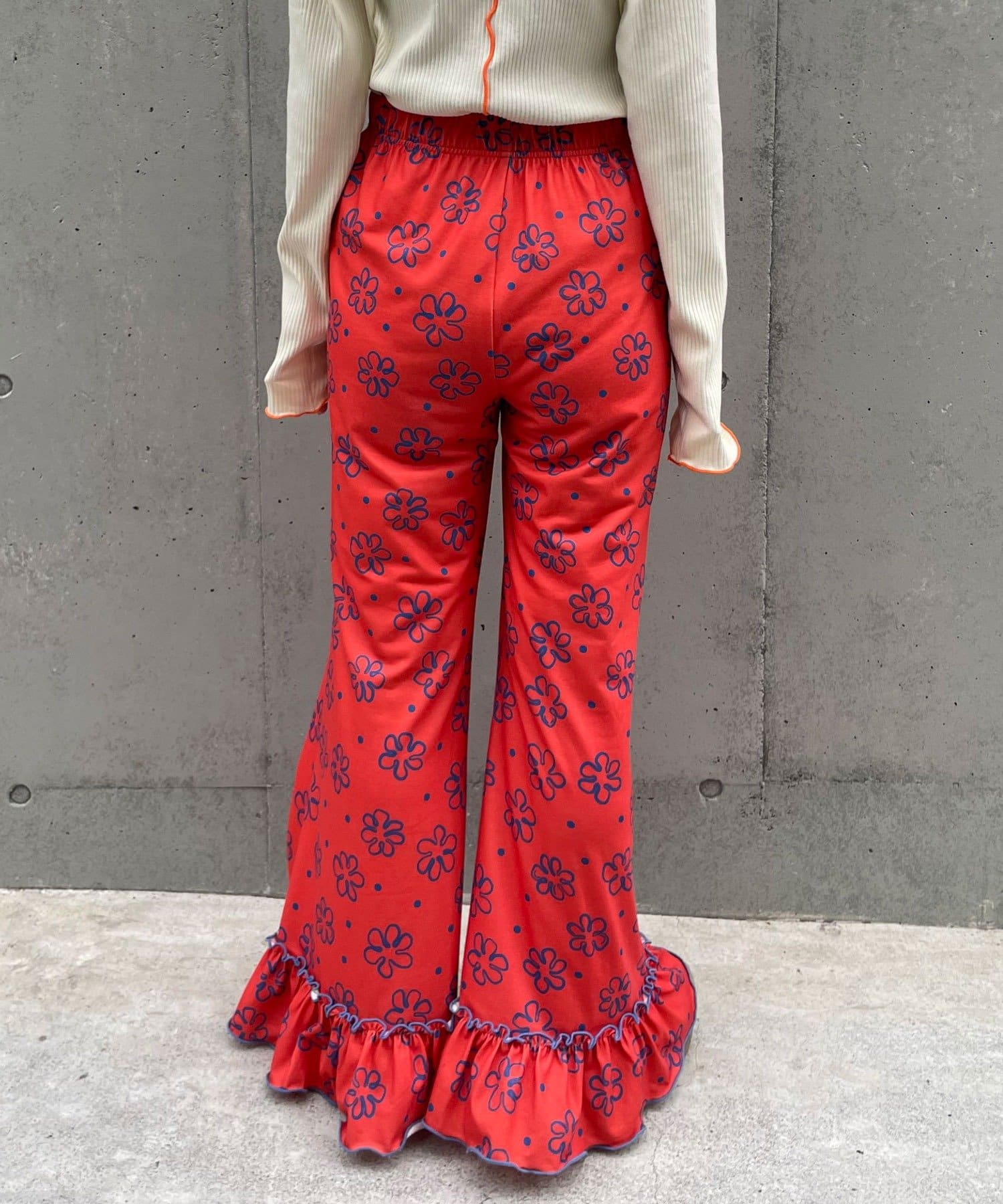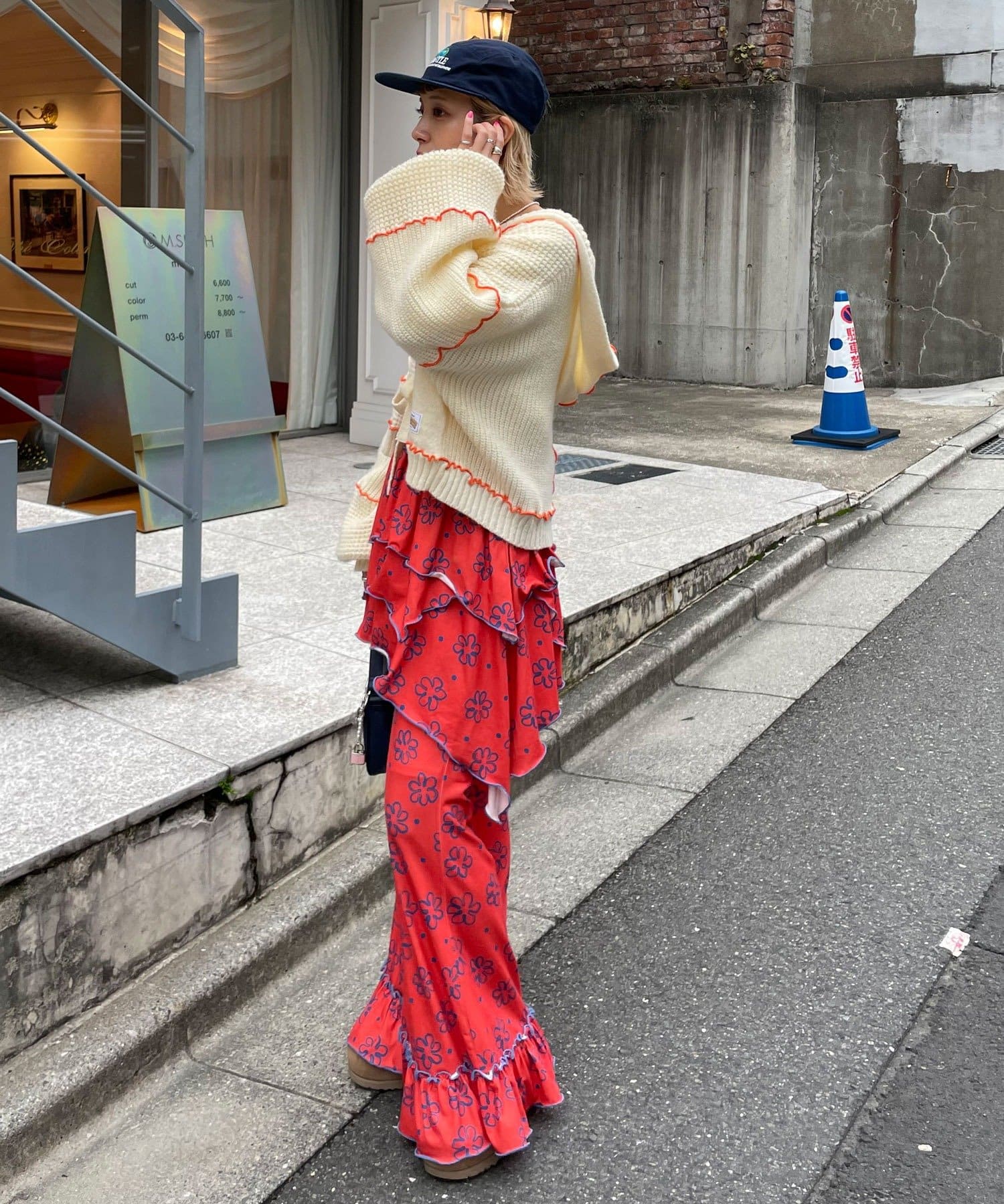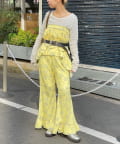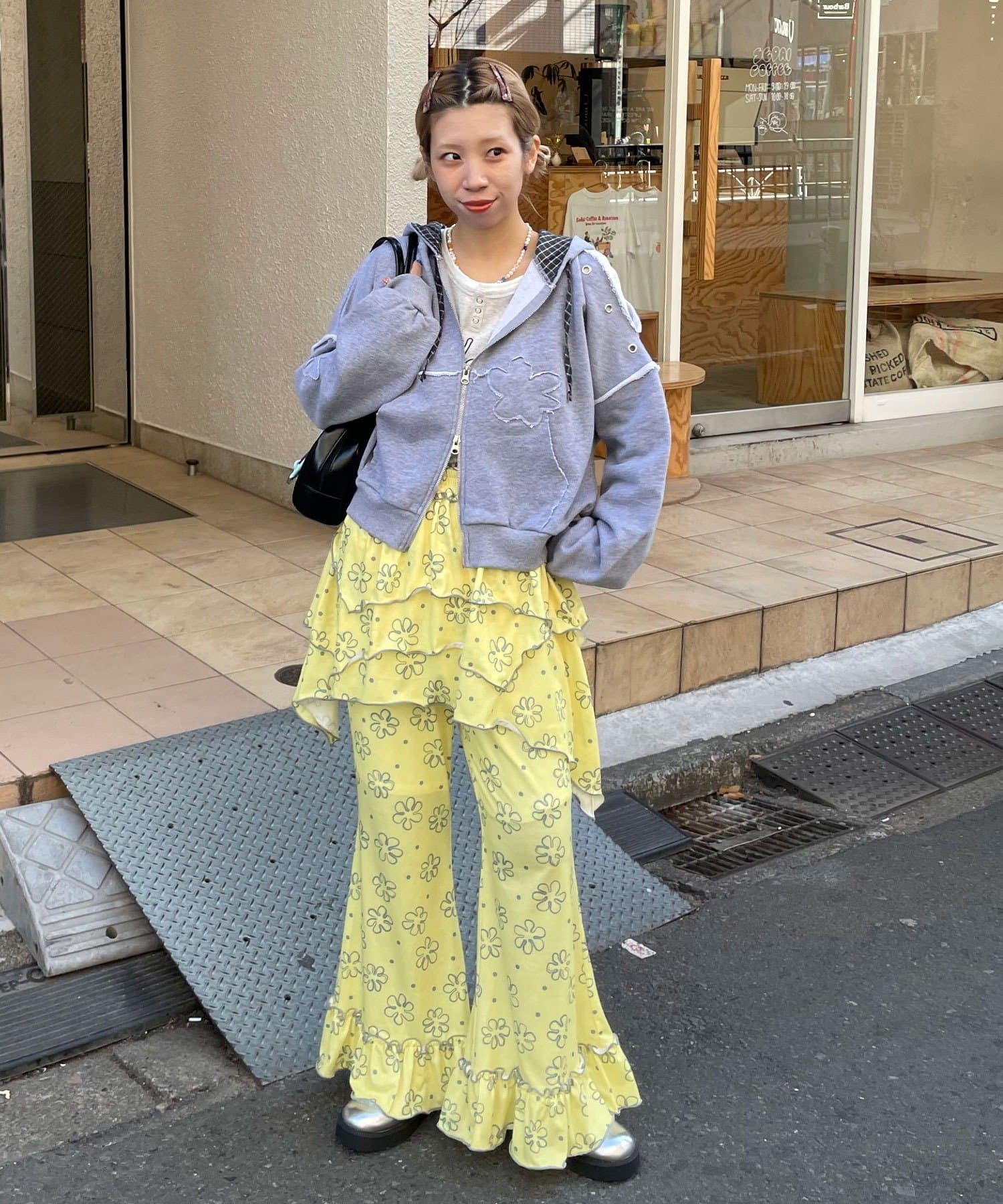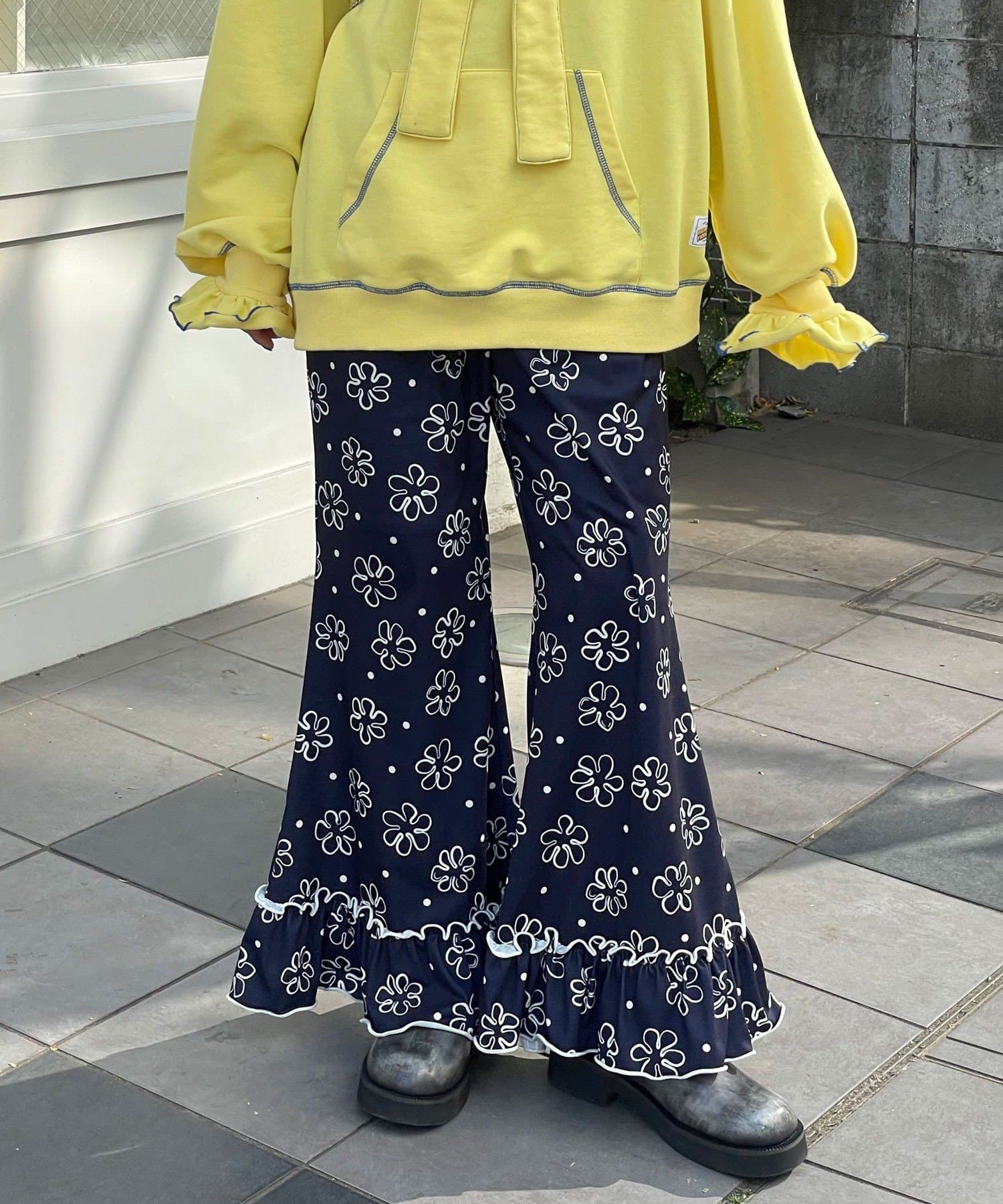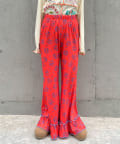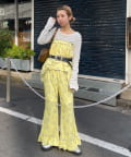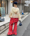 イレヘムのランダムティアードがかわいいミニスカートと、裾のフリルがポイントになったフレアパンツのセットです。