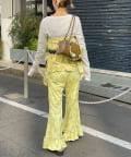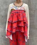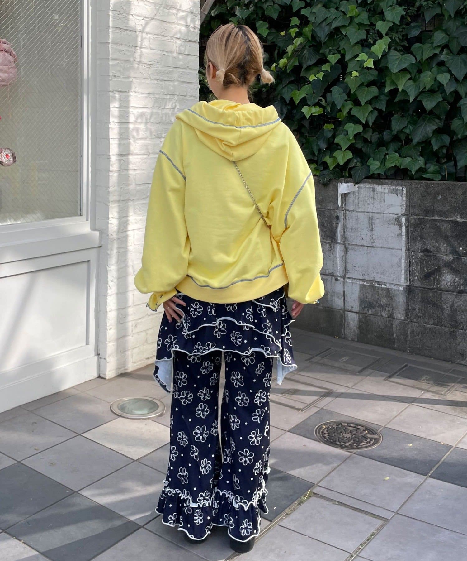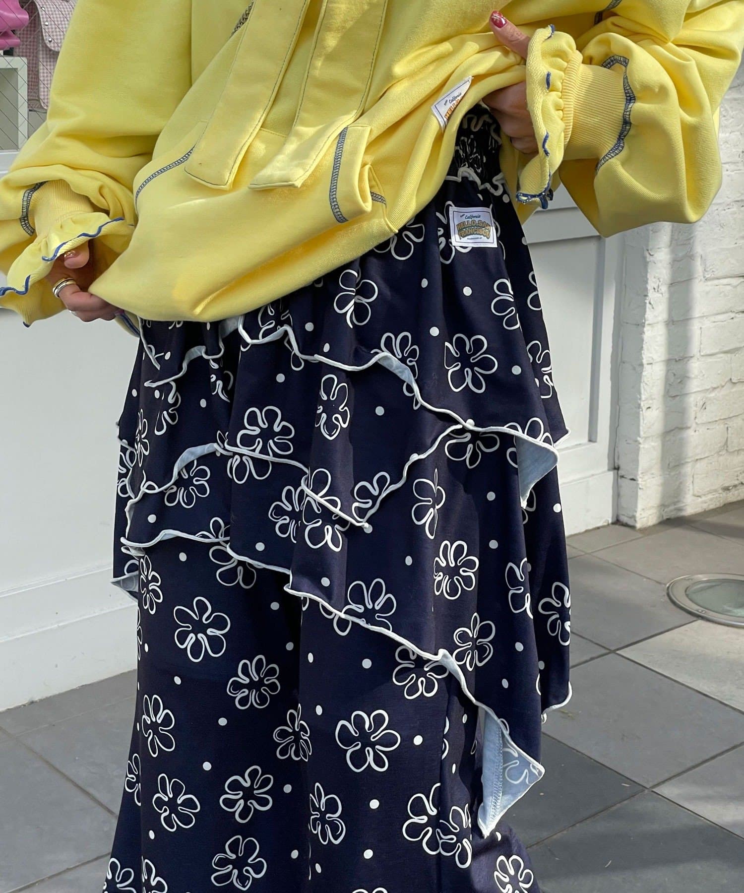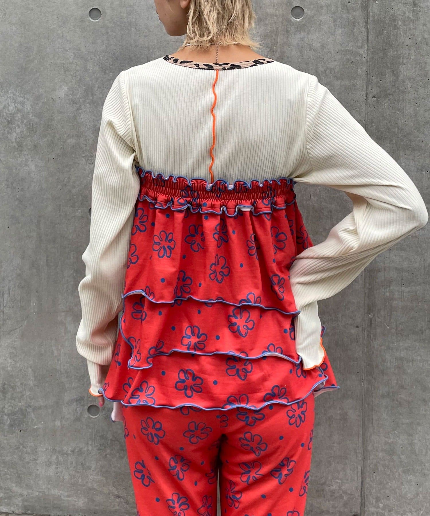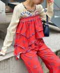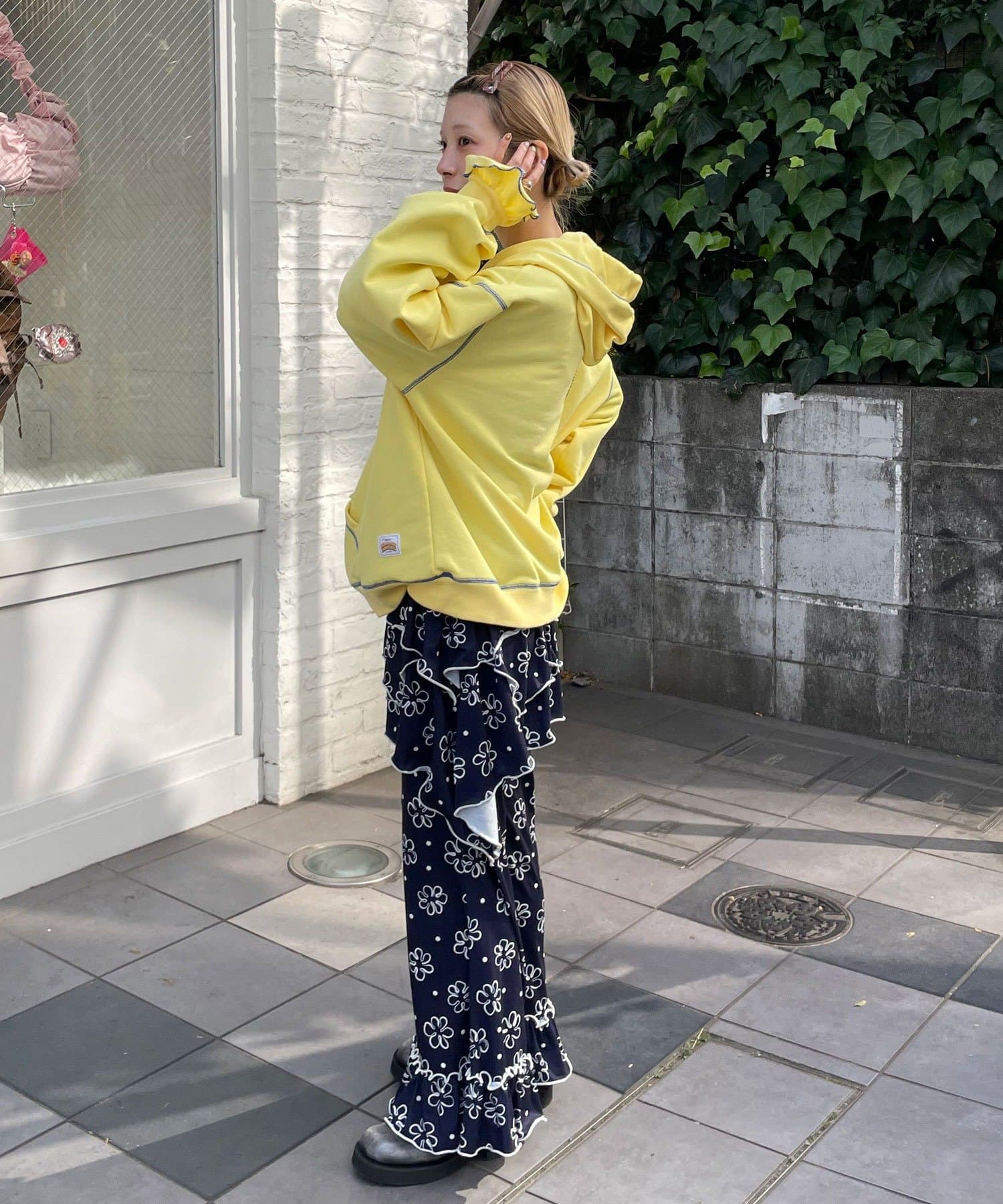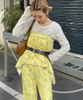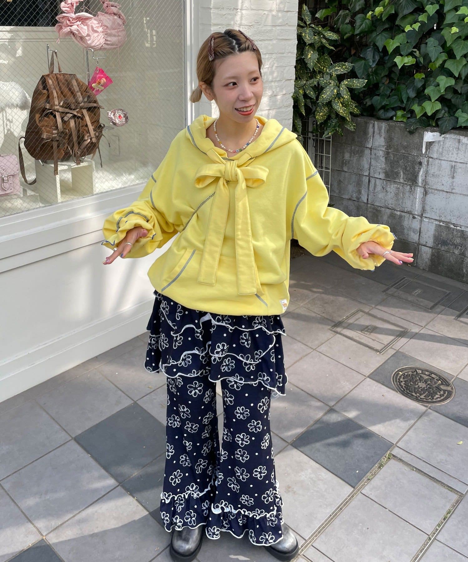 イレヘムのランダムティアードがかわいいミニスカートと、裾のフリルがポイントになったフレアパンツのセットです。