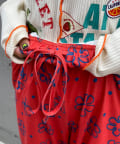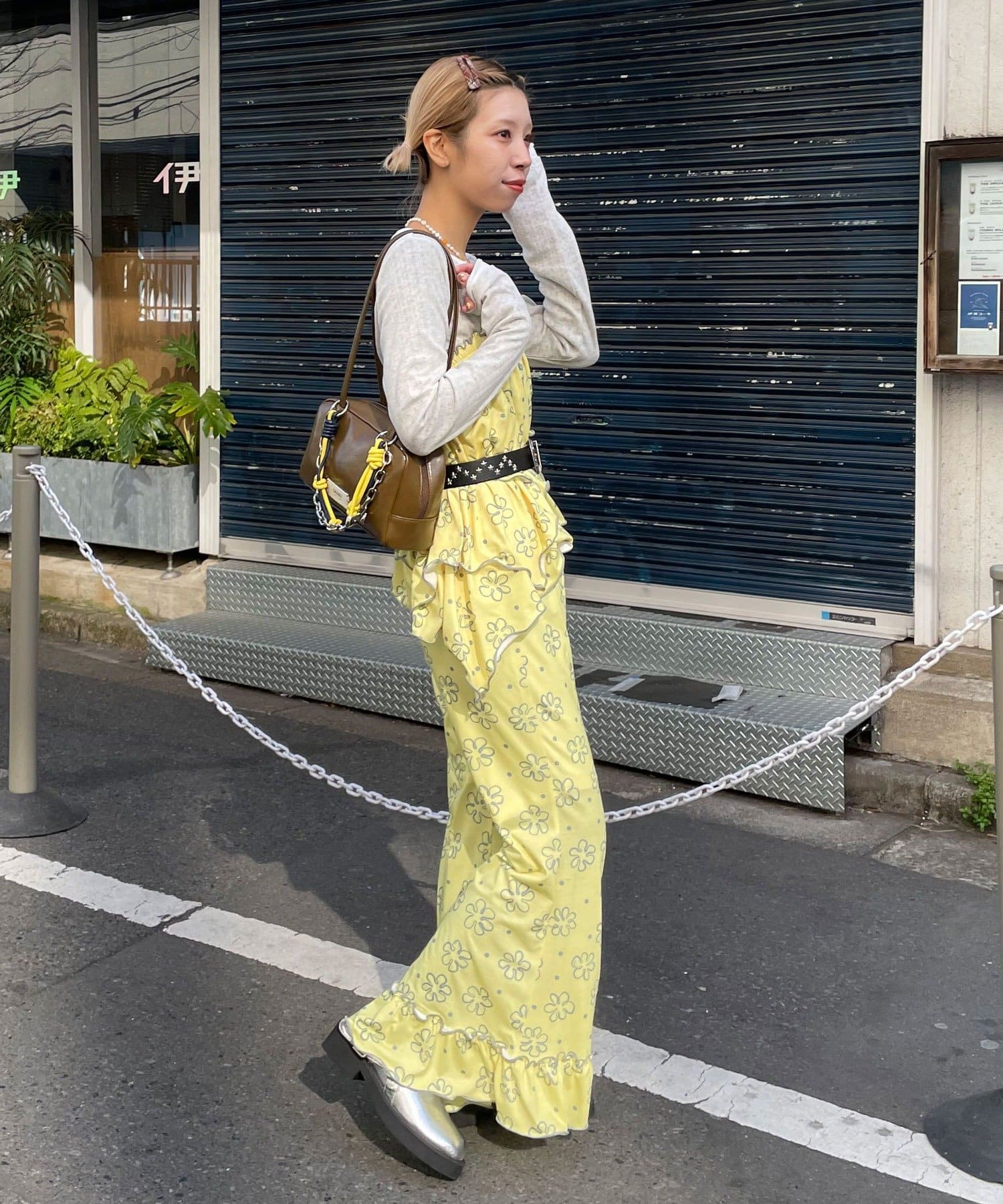 元気でハッピーな印象をくれるぱきっとオレンジカラーに、花柄プリントがアクセント。