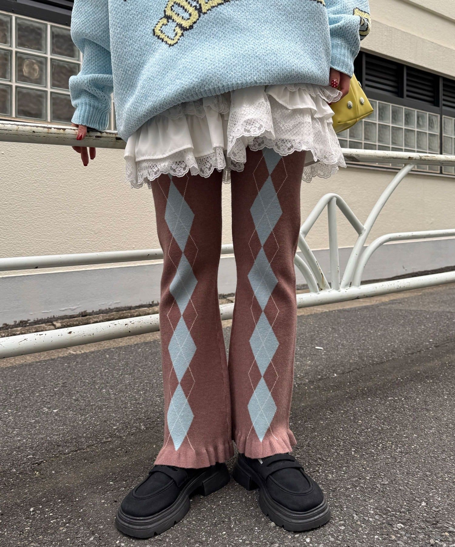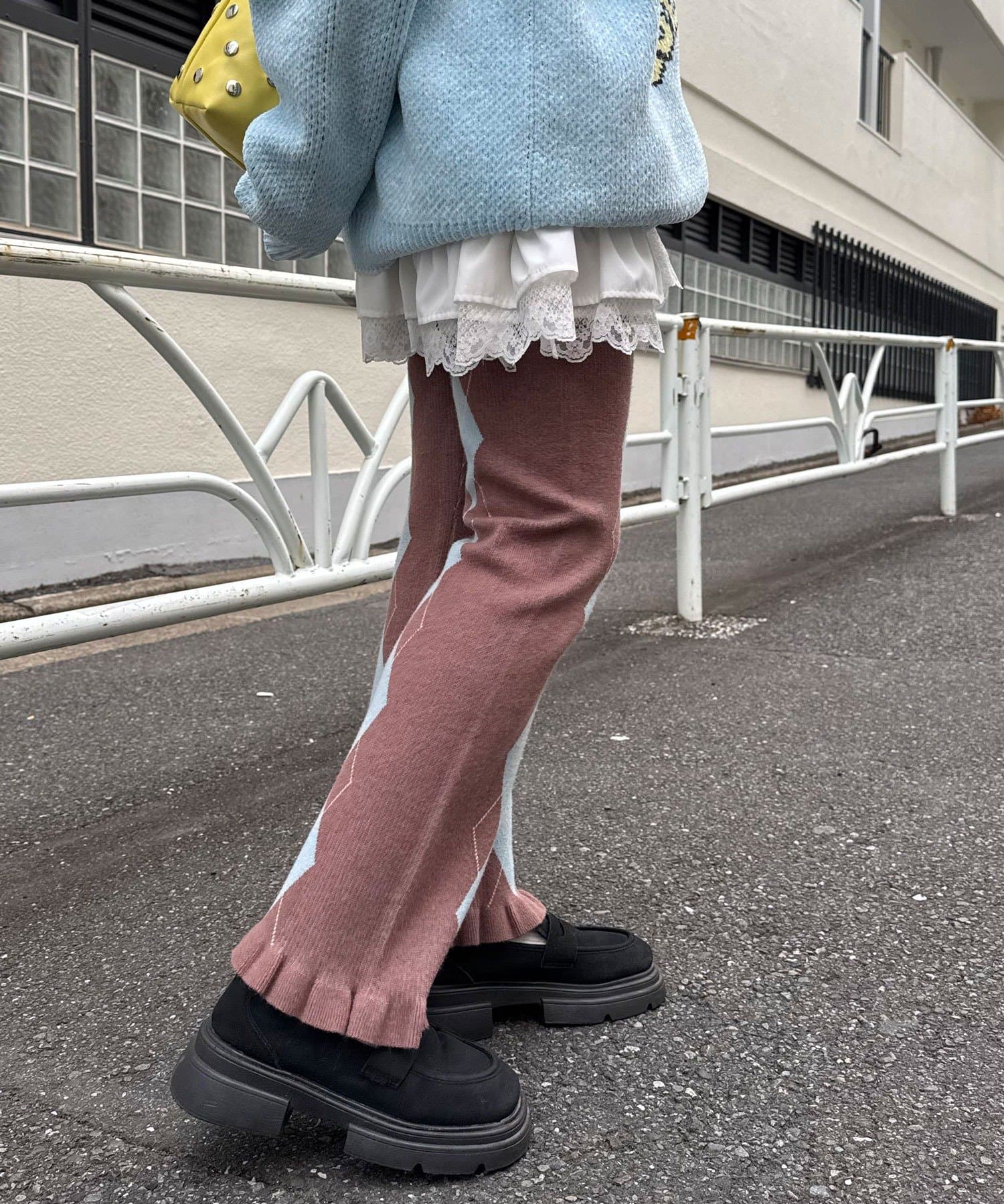 裾のフリルでほんのりガーリーなアクセントをプラスしつつ、ウエスト紐&リブ仕様で穿き心地もばっちり。
