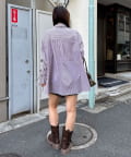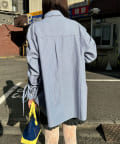 袖シャーリングボウタイ付ストライプシャツ