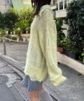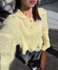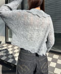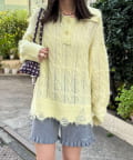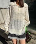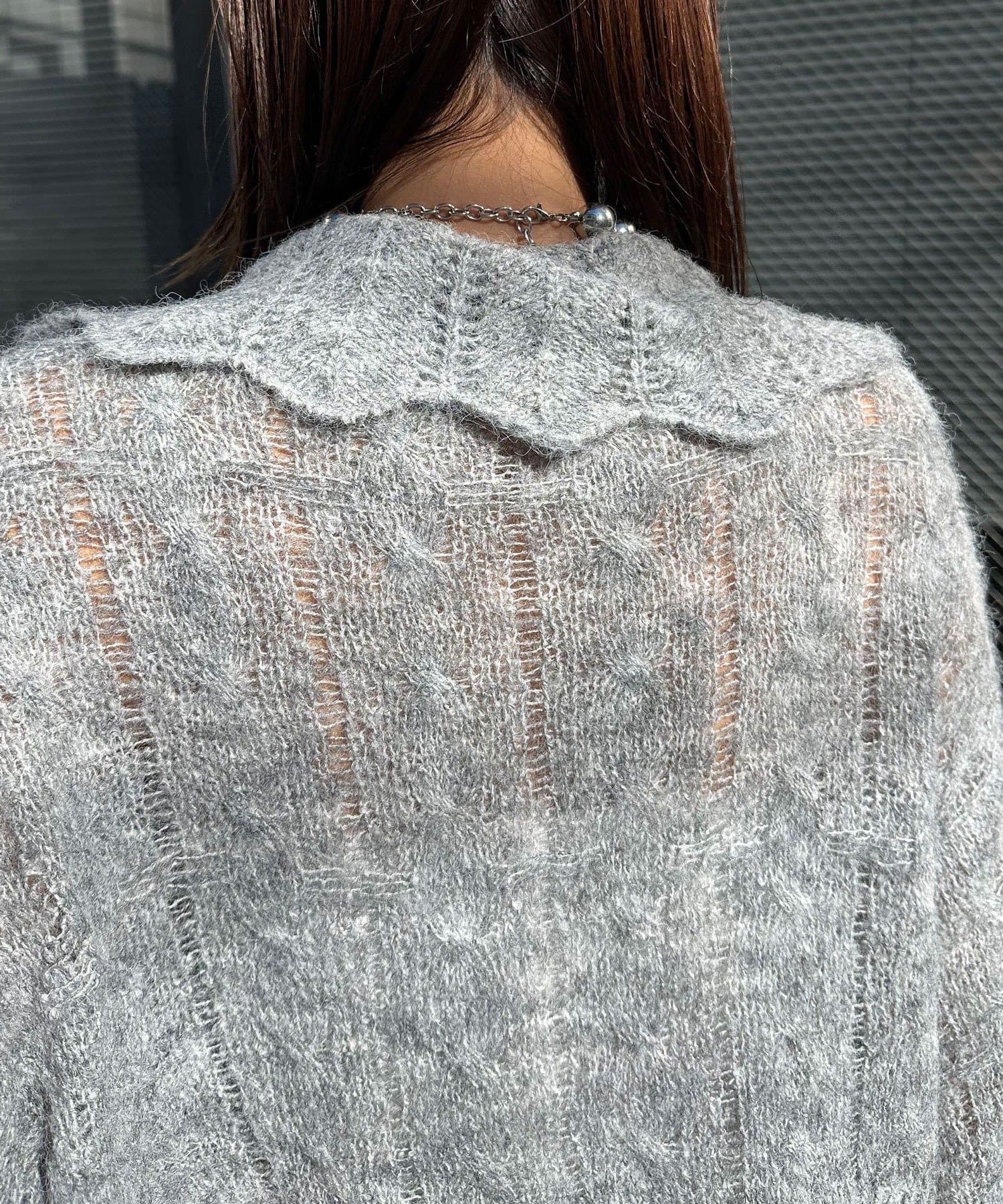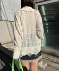 編み柄の立体感と透け感が絶妙に重なり、前後どこから見ても表情のある一枚に仕上げました。