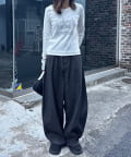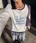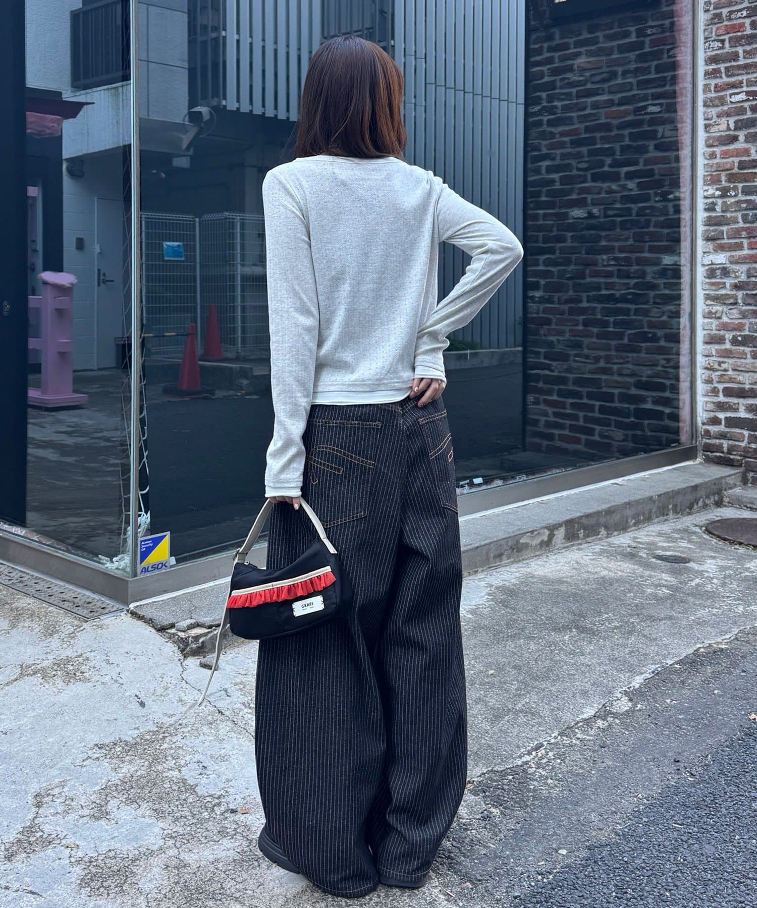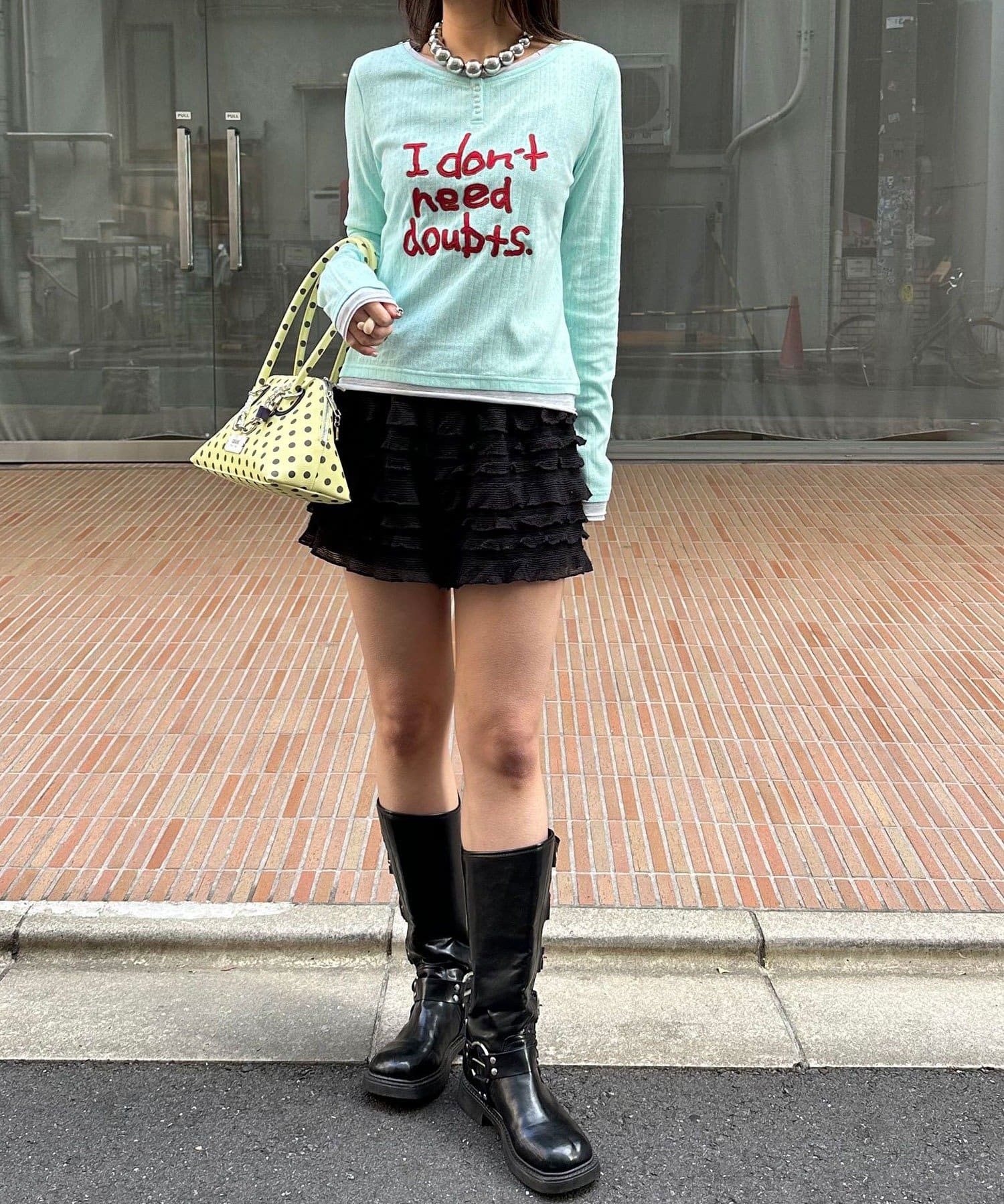 インナー使いでロゴをのぞかせた、レイヤードスタイルもおすすめです。
