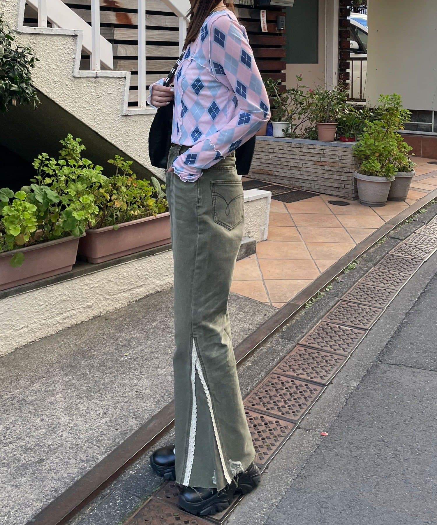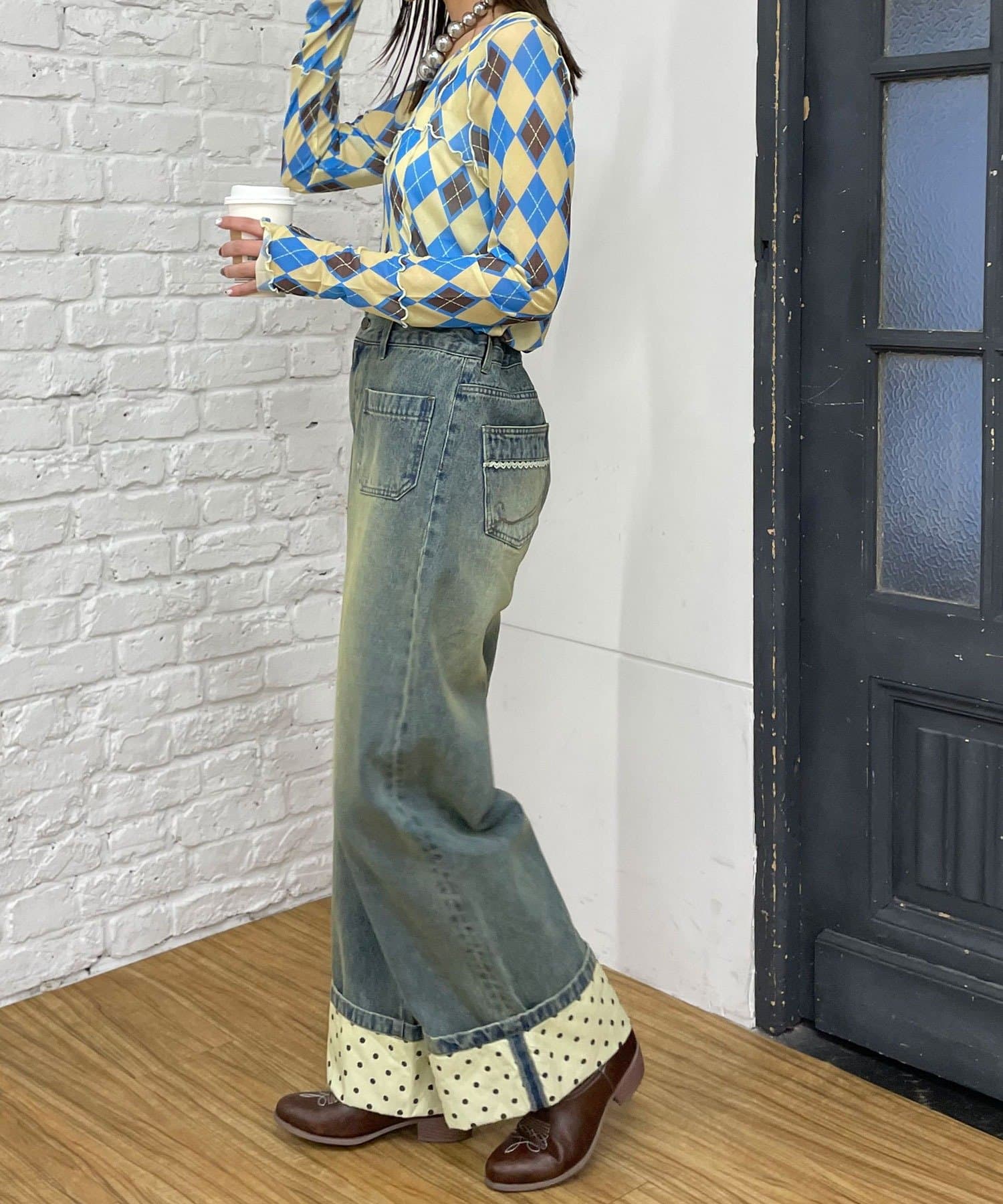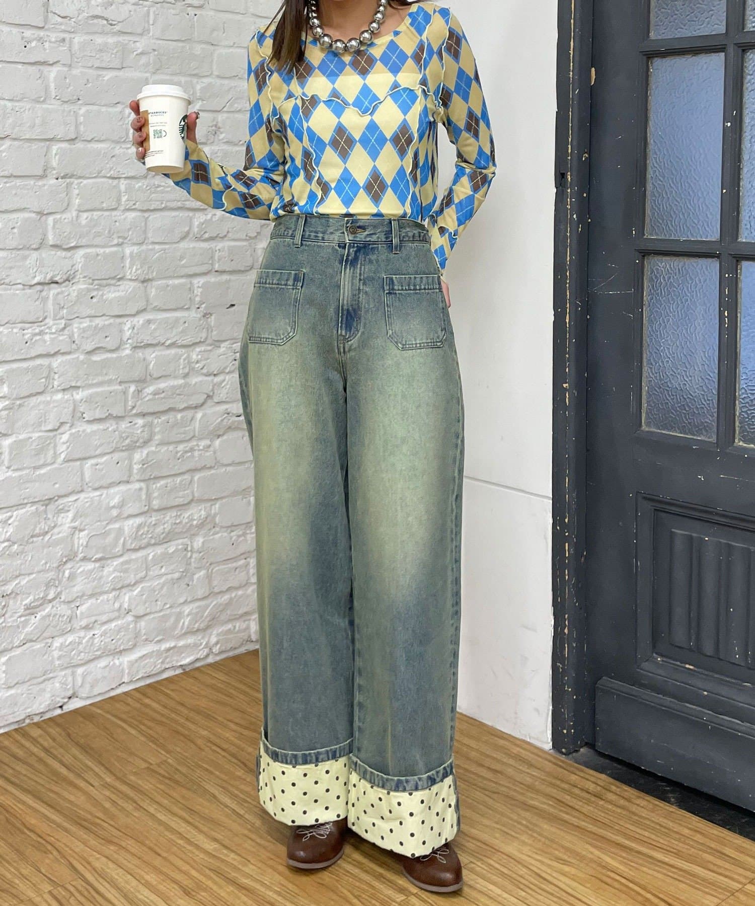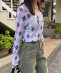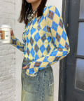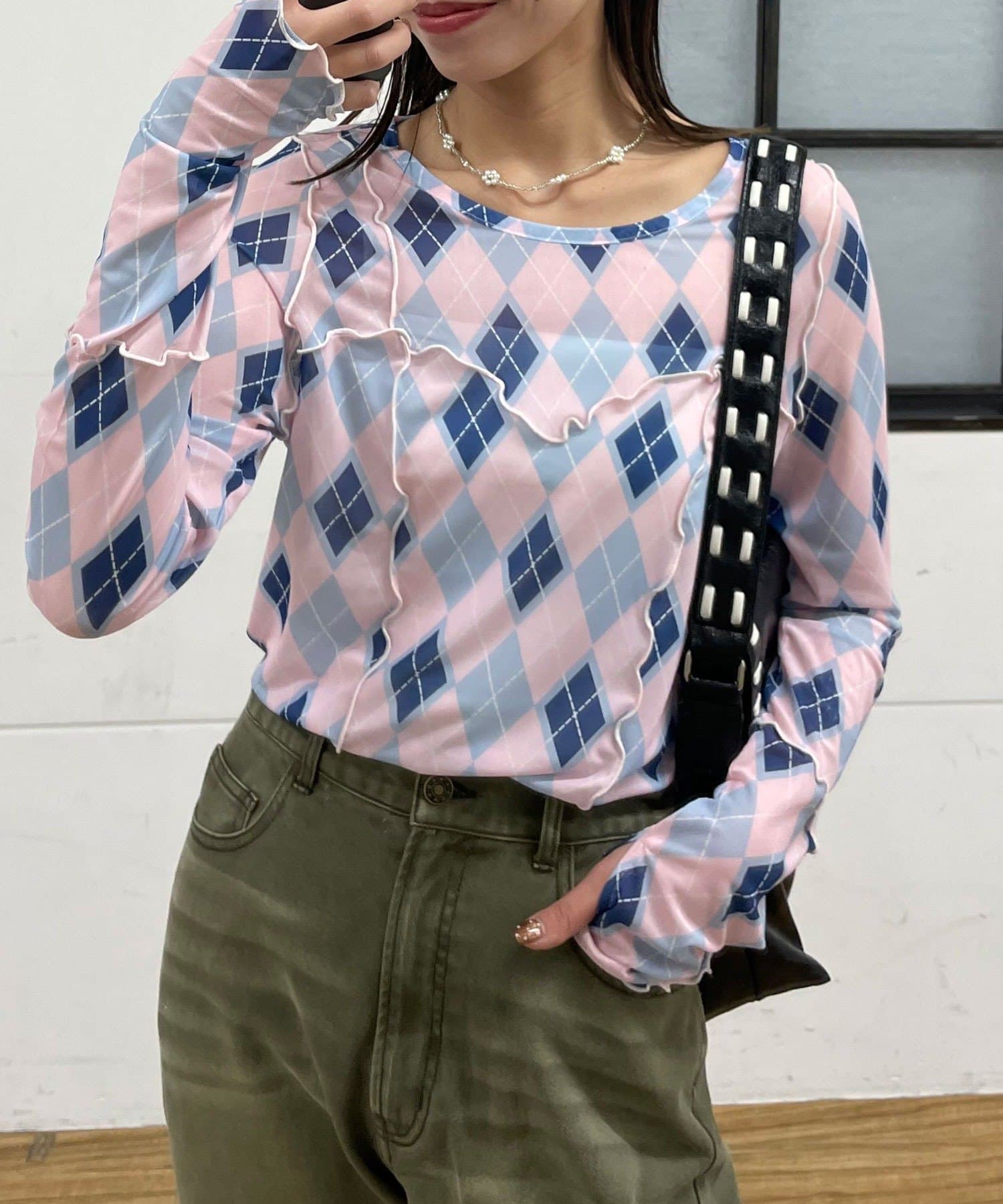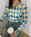 配色が目を引くアーガイル柄を、透け感のある素材で今っぽくアップデート。